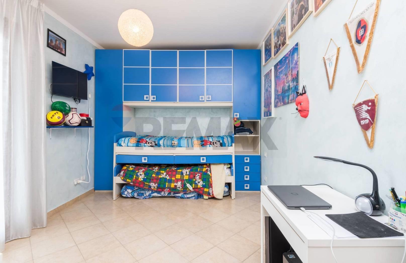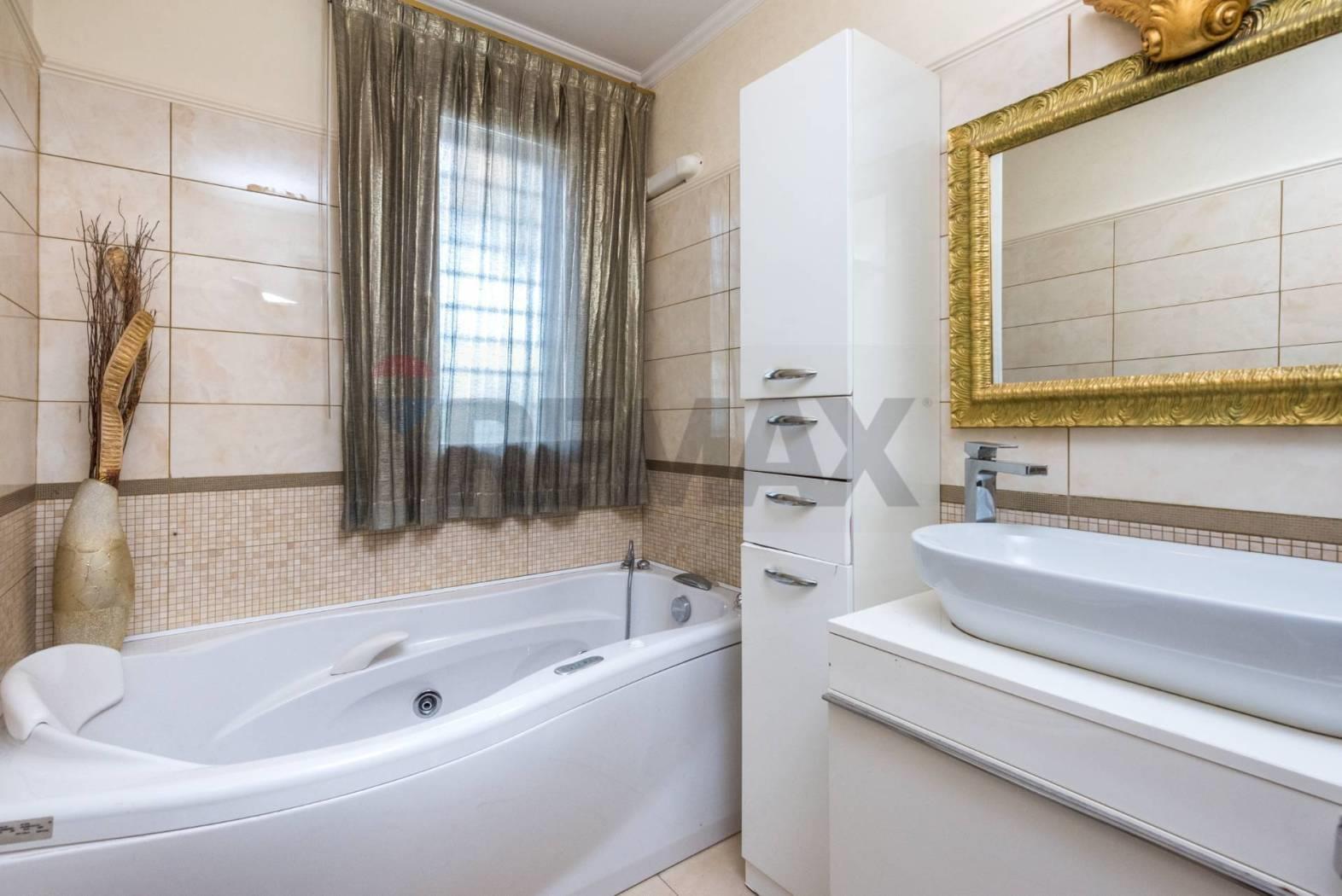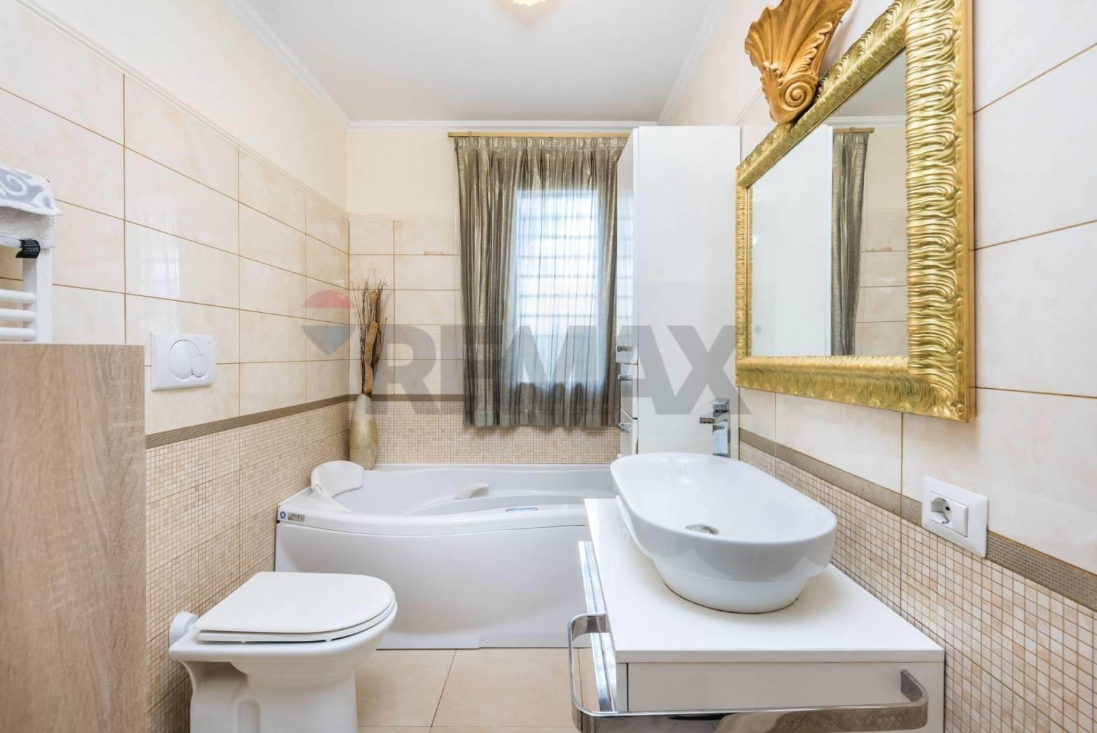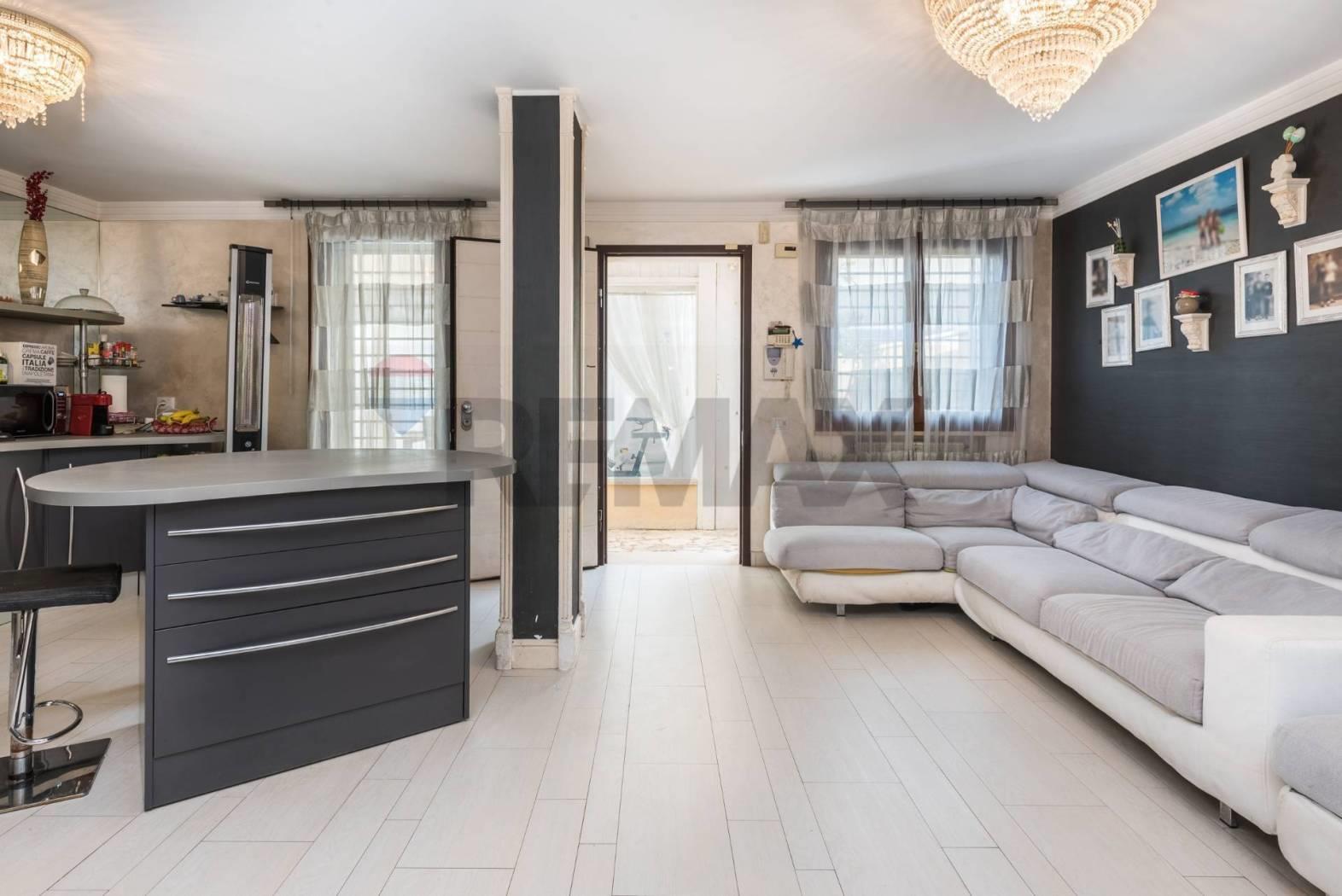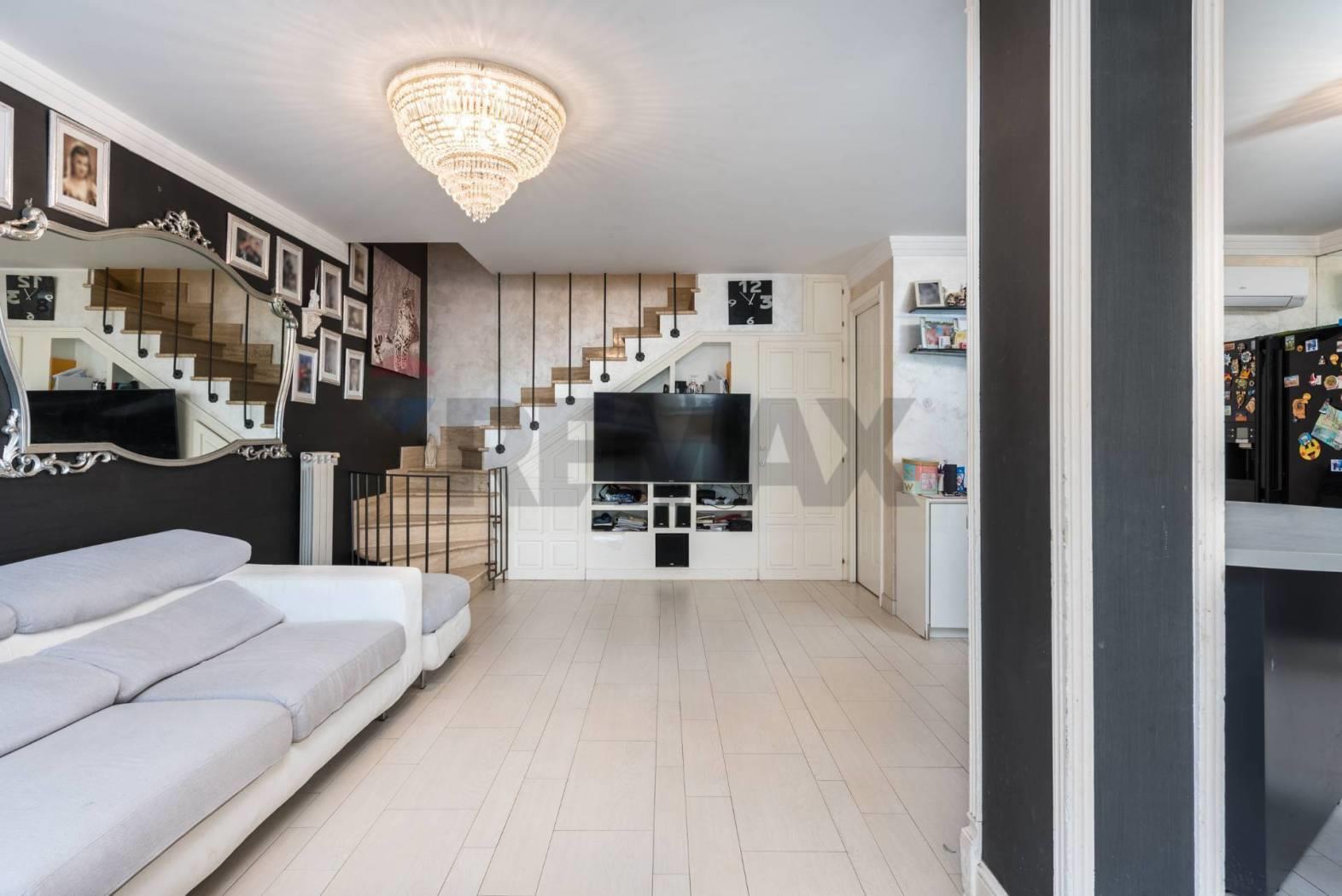 Al piano terra si sviluppa una raffinata zona giorno dal design moderno, con cucina dotata di tavolo/isola centrale, area living con divano angolare e parete TV. Completa il livello un bagno finestrato con vasca idromassaggio, pensato per il massimo benessere.