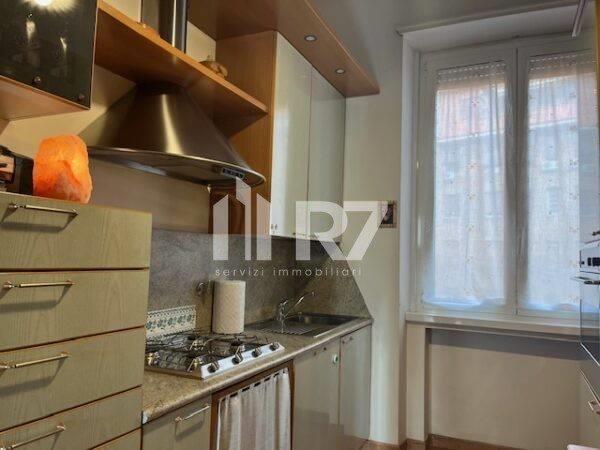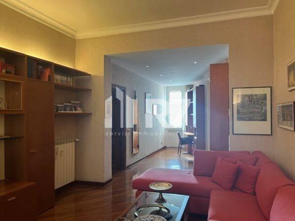 In elegante palazzo anni '30, con servizio di portineria, proponiamo appartamento posto al 5° piano, di 110 mq, luminoso e tranquillo con doppia esposizione, in ottimo stato di manutenzione, composto da: ampio salone, due camere, cucina abitabile, doppi servizi, ripostiglio e un piccolo balcone accessibile da una delle due camere da letto. Ape G.
