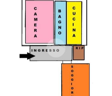 E' composto da un grande soggiorno in cui si entra direttamente con una bella cucina a vista, una zona notte con affaccio angolare e armadi a muro.