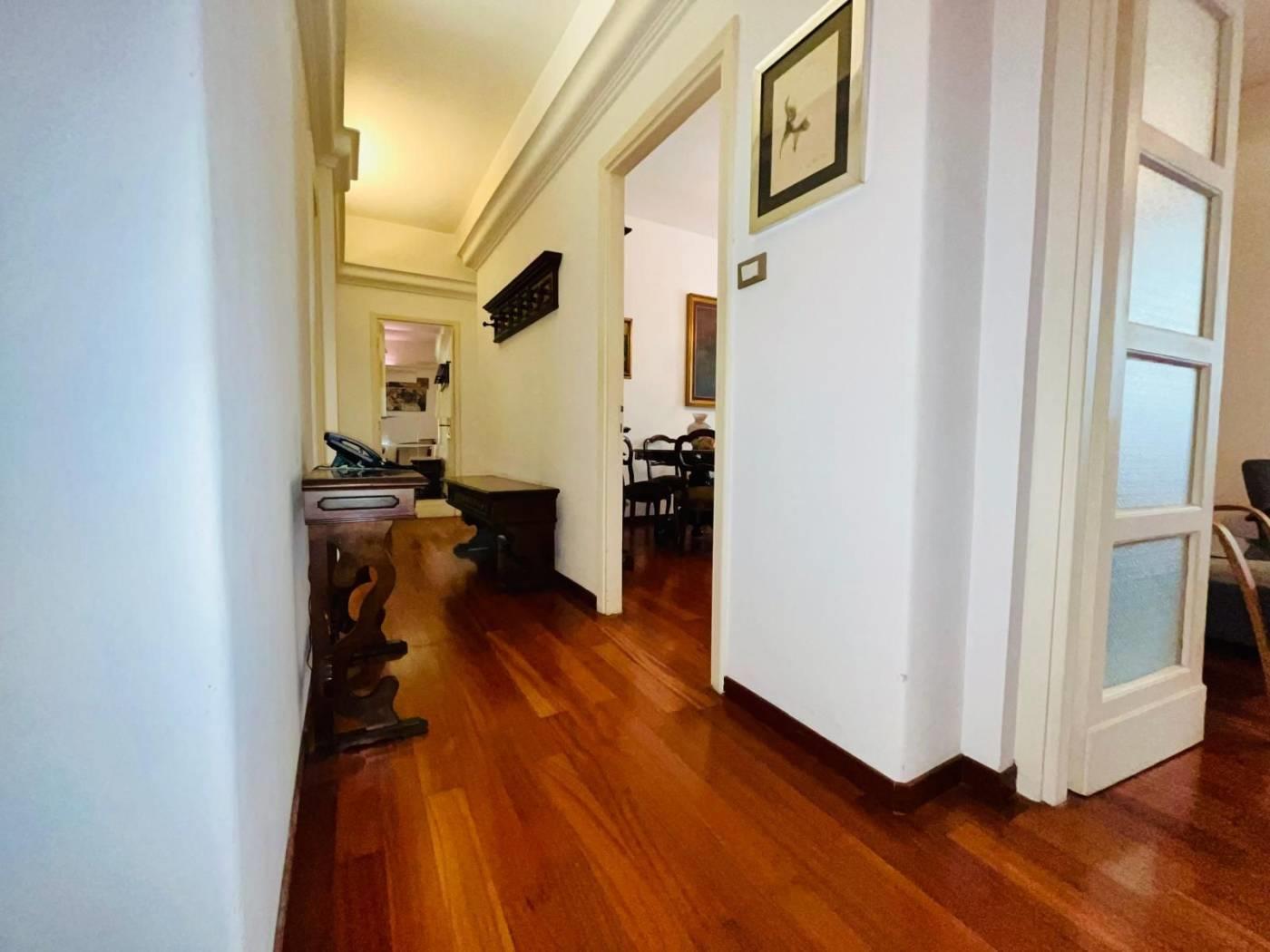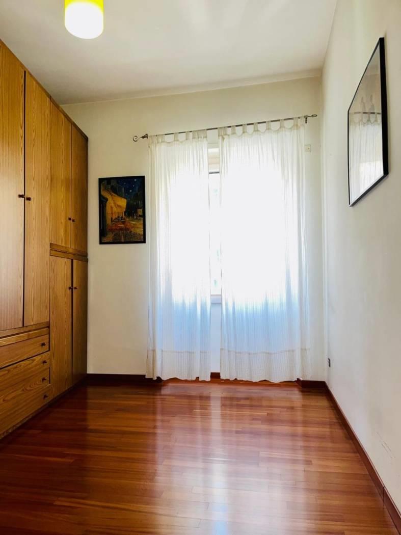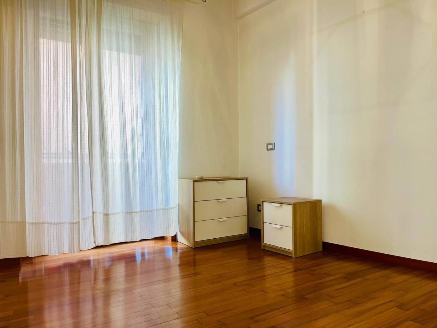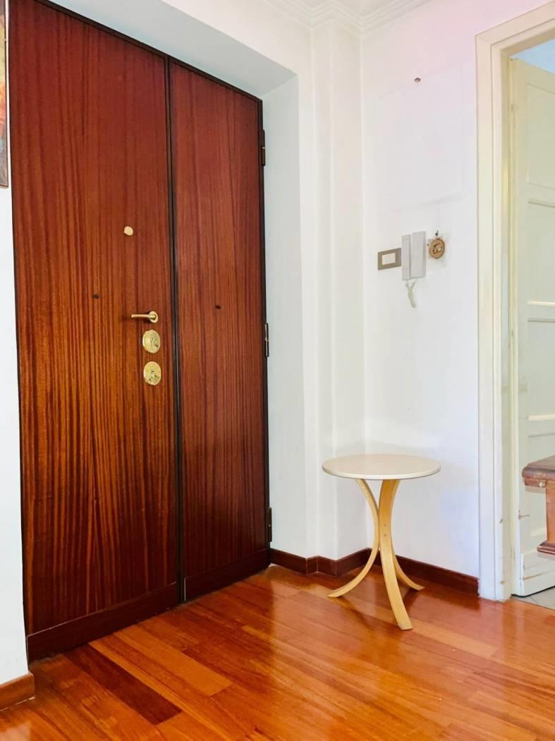 L’appartamento gode di un doppio affaccio ed è composto da un ampio ingresso, salone, tre camere da letto, di cui una con bagno en suite, un secondo bagno, un ripostiglio, una cucina abitabile con relativa dispensa e due balconi. La distribuzione degli spazi è funzionale e gli ambienti risultano luminosi.