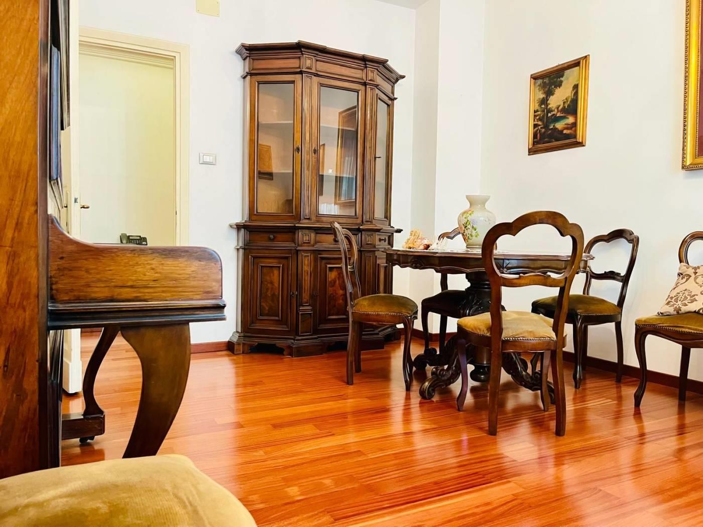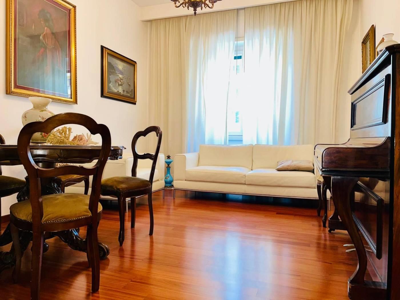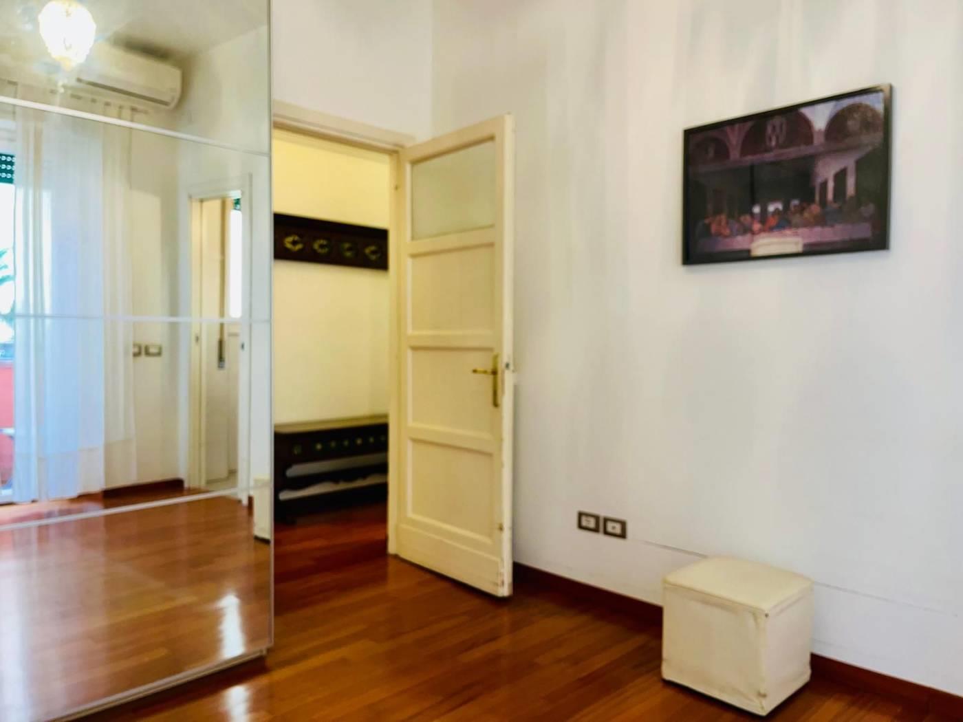 L’appartamento gode di un doppio affaccio ed è composto da un ampio ingresso, salone, tre camere da letto, di cui una con bagno en suite, un secondo bagno, un ripostiglio, una cucina abitabile con relativa dispensa e due balconi. La distribuzione degli spazi è funzionale e gli ambienti risultano luminosi.