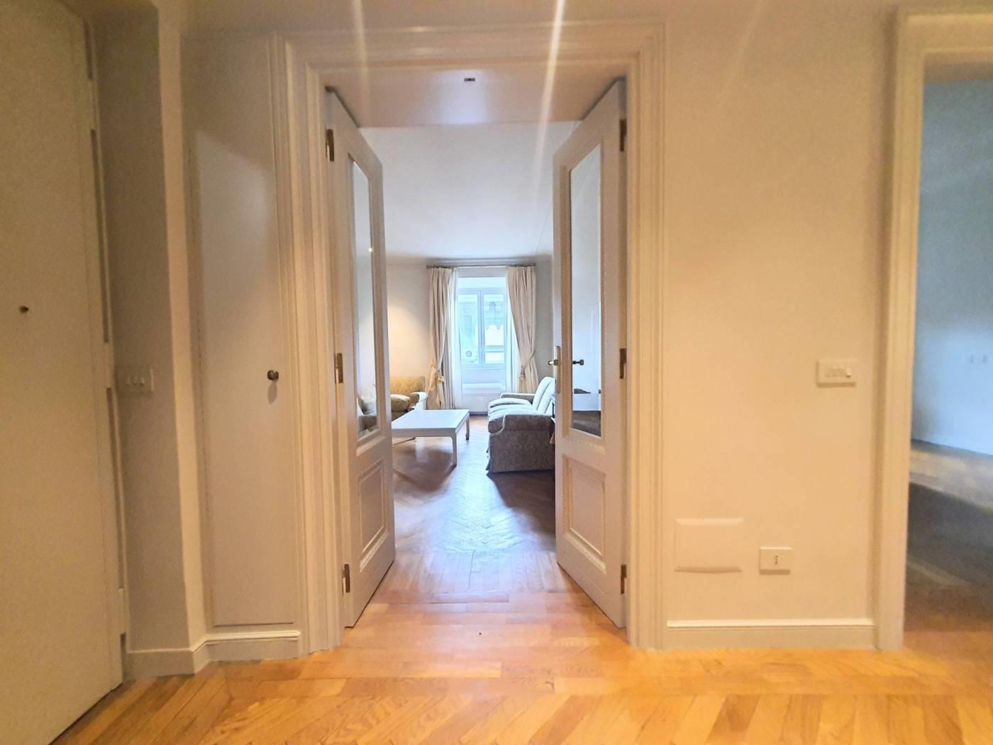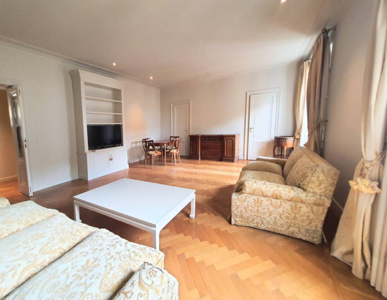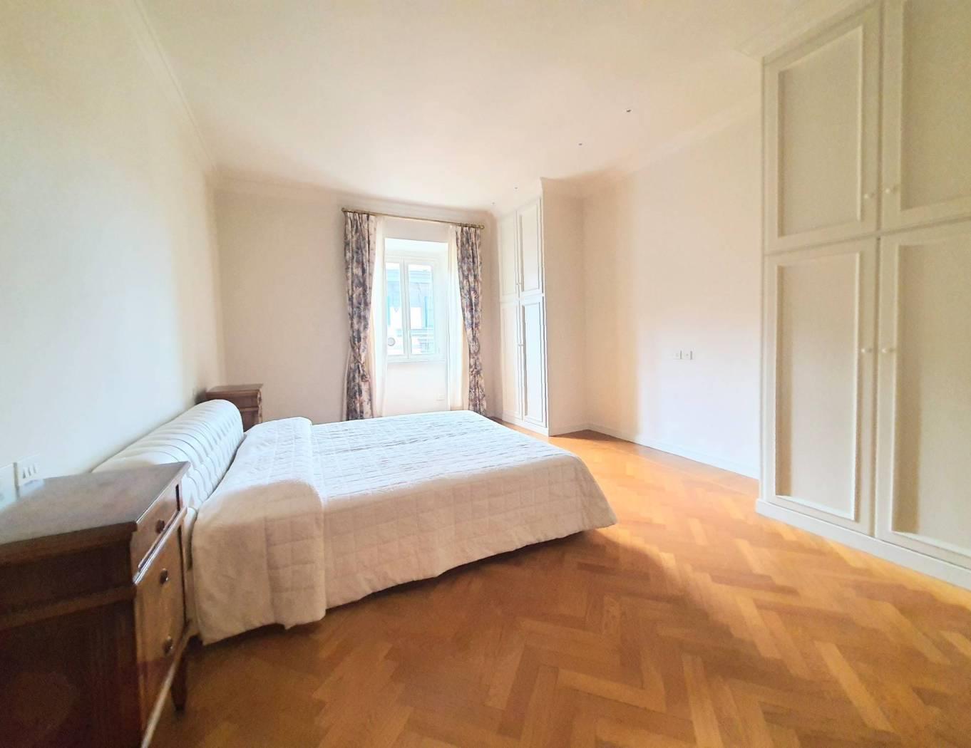 Prati, via Cola di Rienzo, a few steps from piazza del Popolo, elegant apartment, bright and quiet, on the fifth floor in period building with porter service, restored and furnished, consisting of entrance, double living room with two windows with walk-in wardrobe and laundry room, bedroom, live-in kitchen, bathroom with window and shower. The apartment is equipped with A/C and autonomous heating.