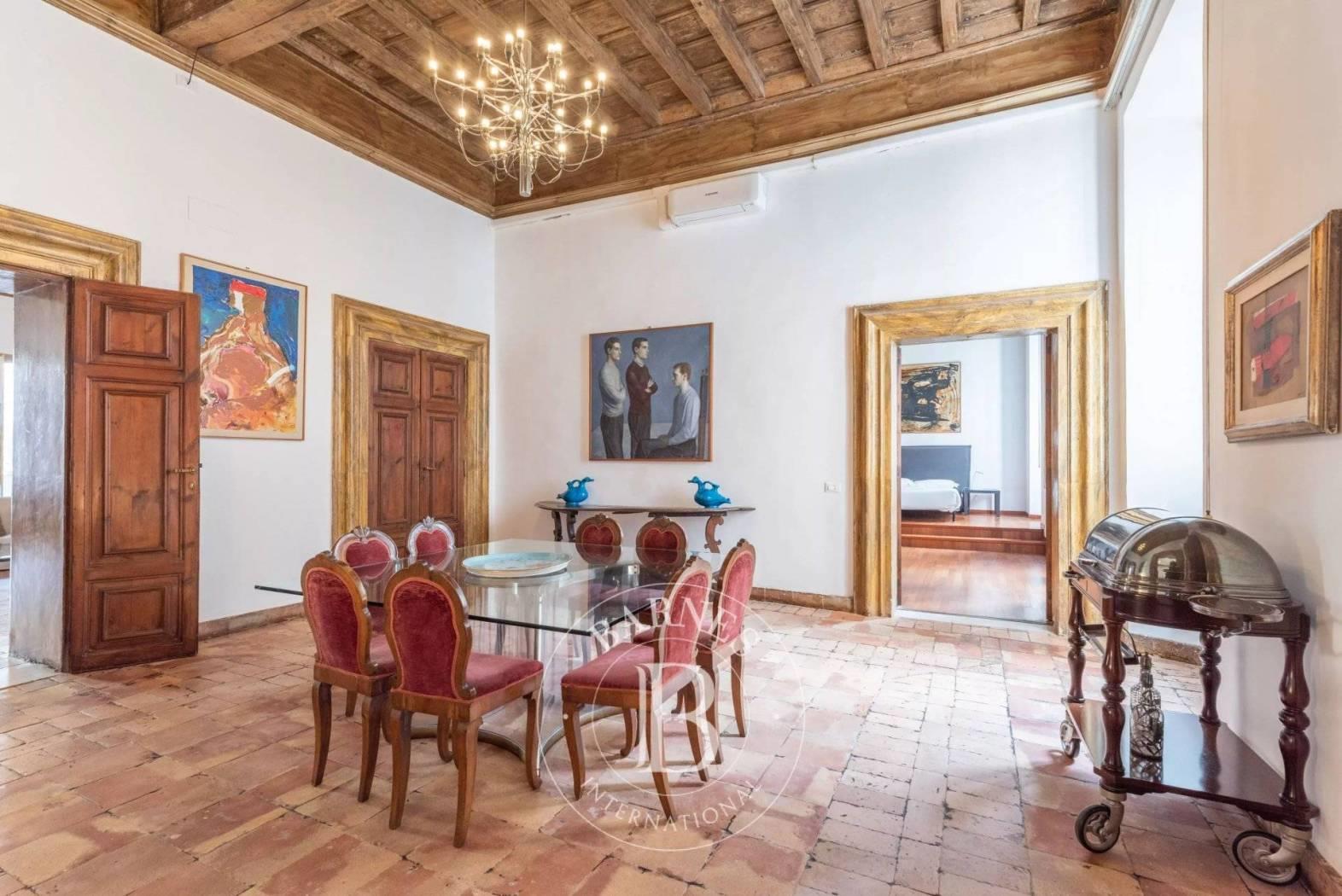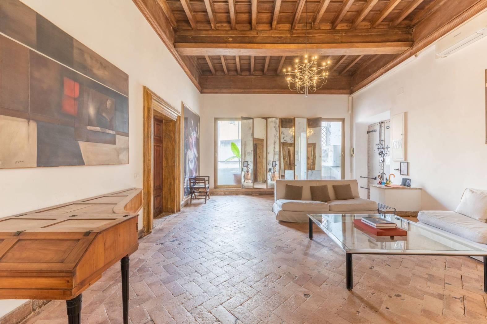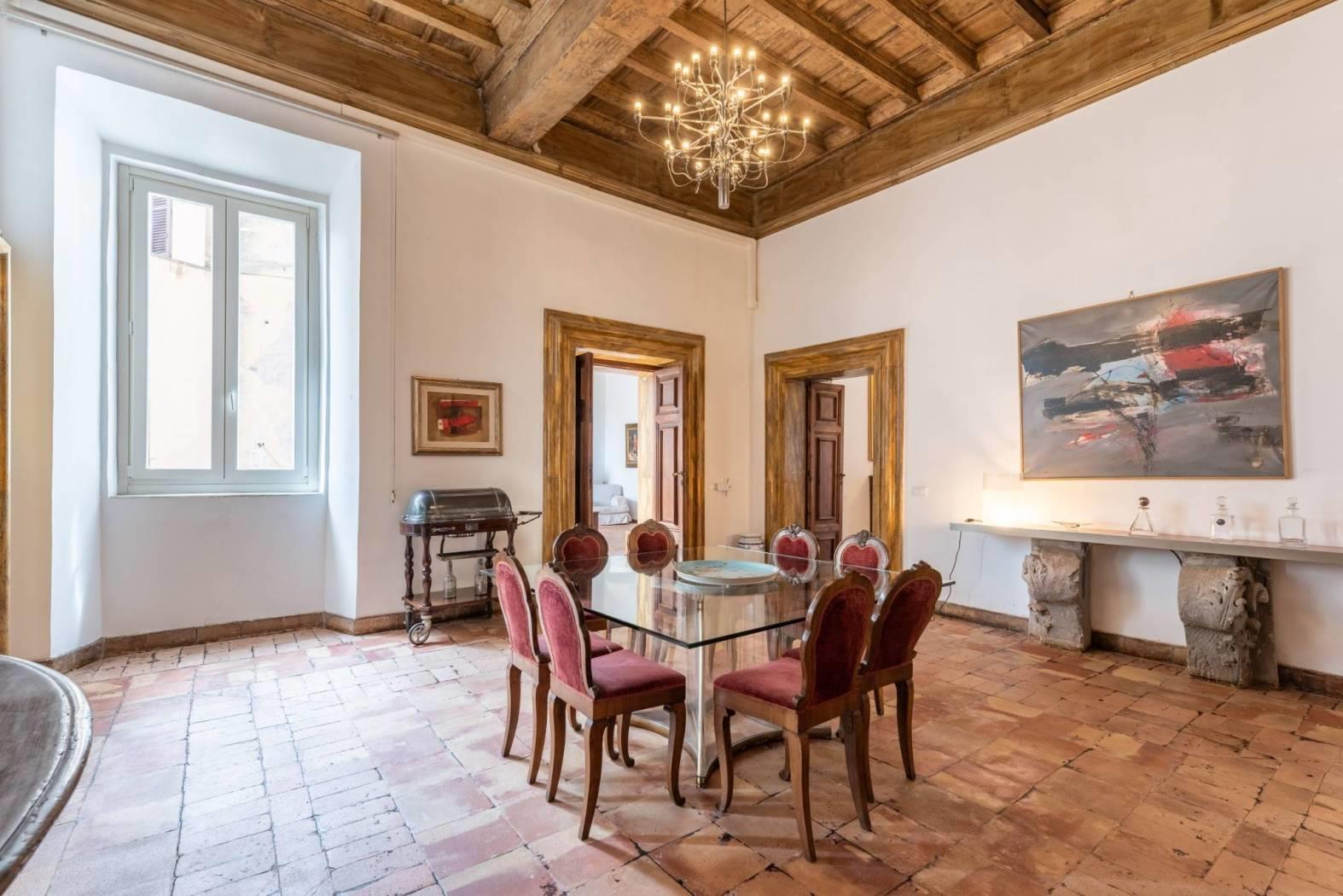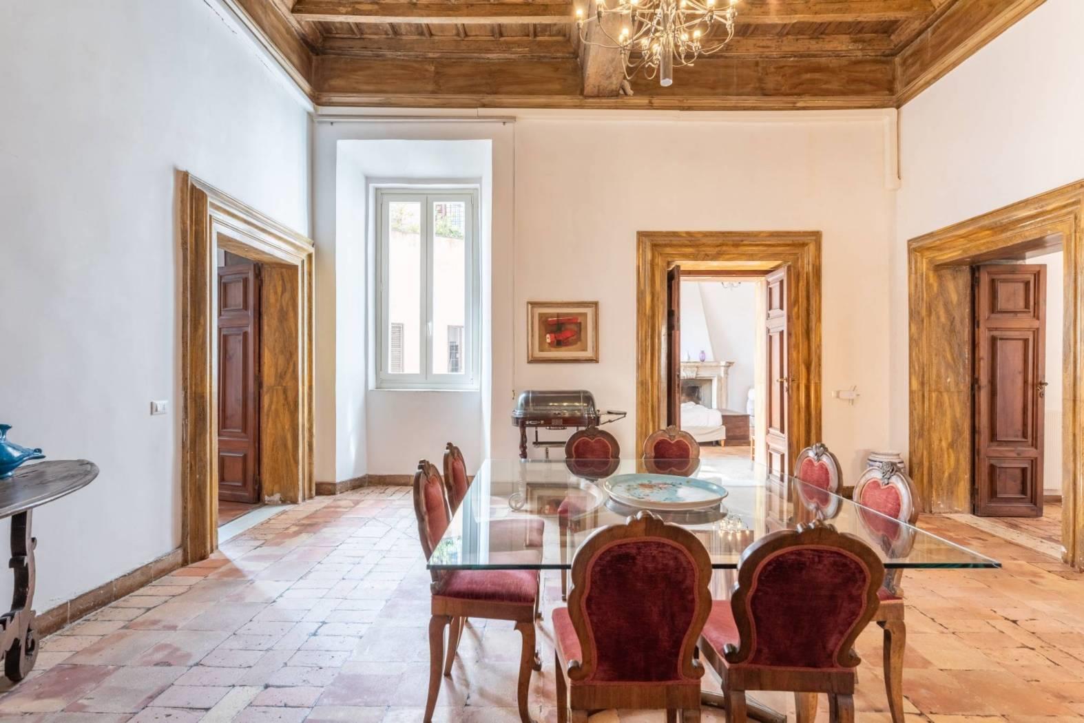 A pochi passi da Piazza Navona, nel cuore pulsante del centro storico di Roma, si trova questa esclusiva proprietà di 360 metri quadri, accatastata come residenziale A/1 e situata al secondo piano di un edificio storico di grande valore.