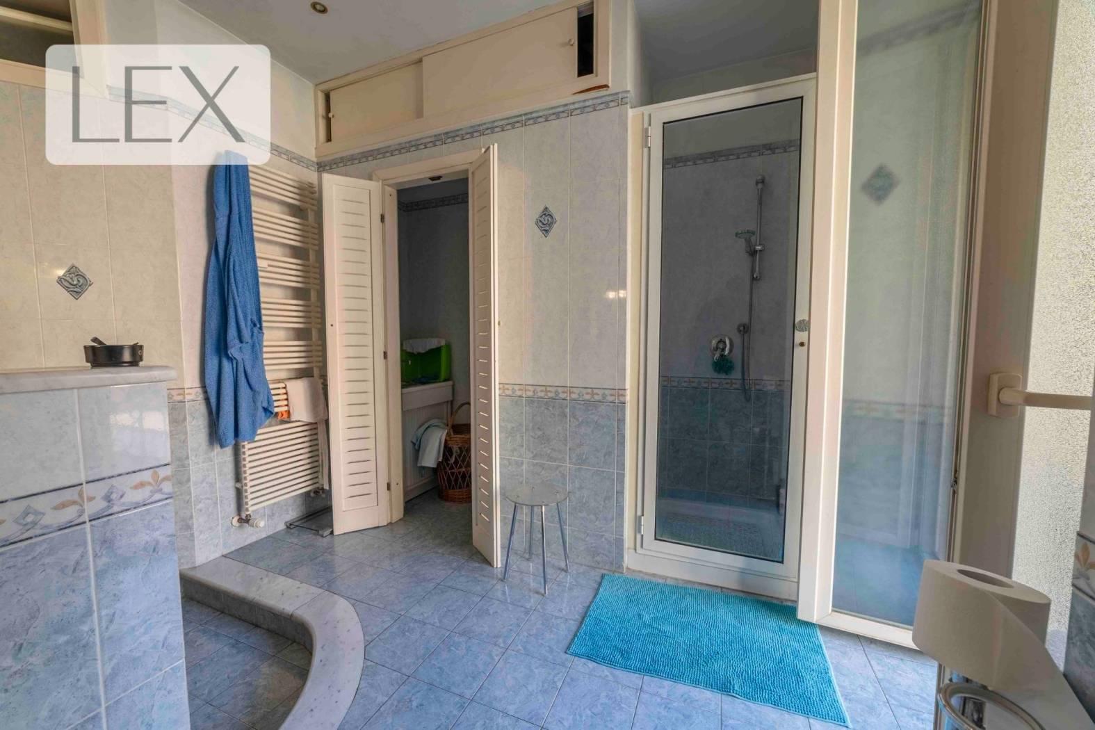 Un disimpegno introduce la zona notte, composta da tre camere matrimoniali, di cui una con bagno en suite e affacci riservati sui curati giardini condominiali, arricchiti da aree verdi e una fontana decorativa. Il secondo bagno è servito da una spaziosa balconata. Completano la proprietà una cantina e una soffitta finestrata.