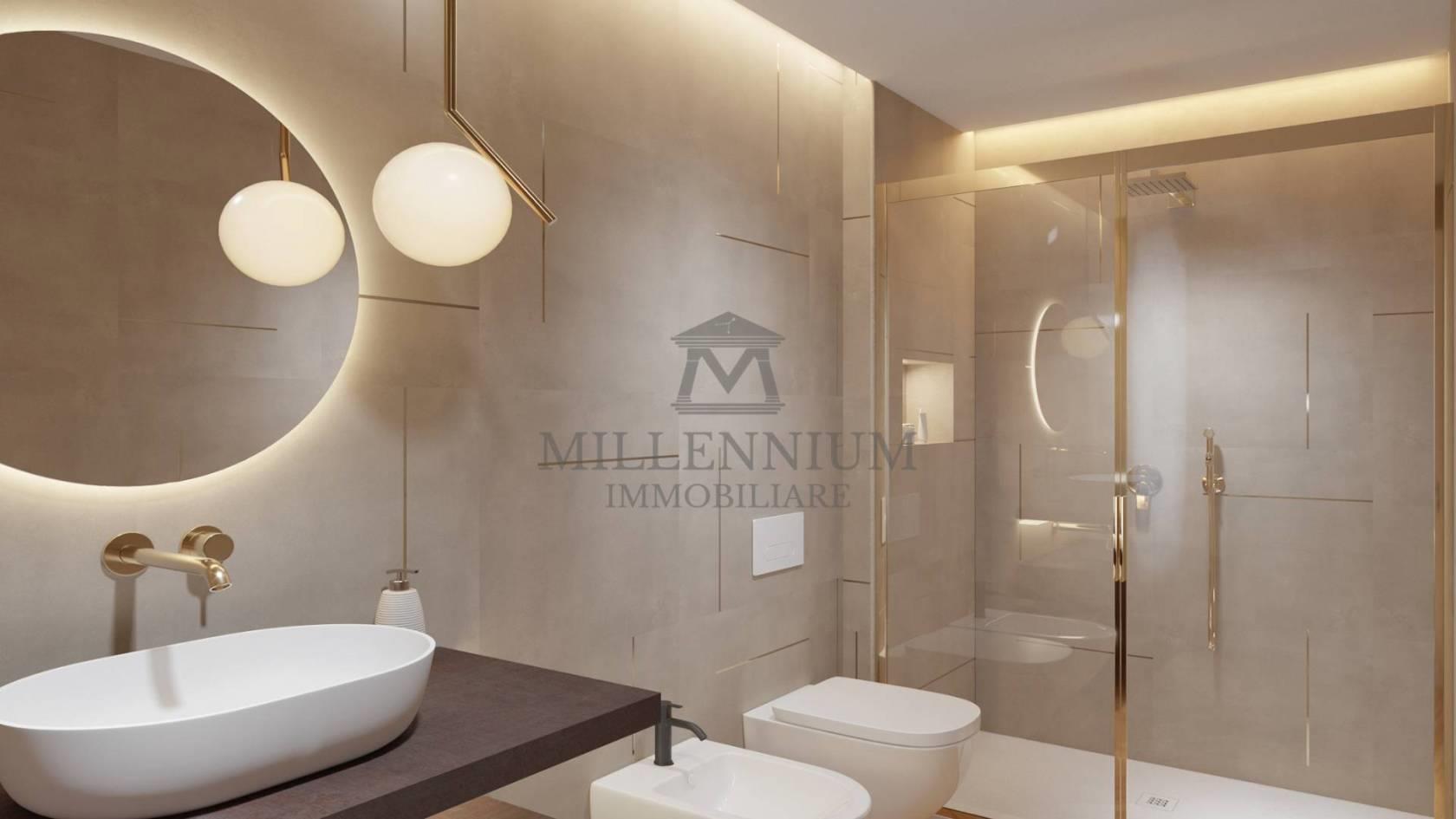 Un bagno completo, rifinito con materiali di alta qualità, a servizio delle altre camere e della zona giorno.