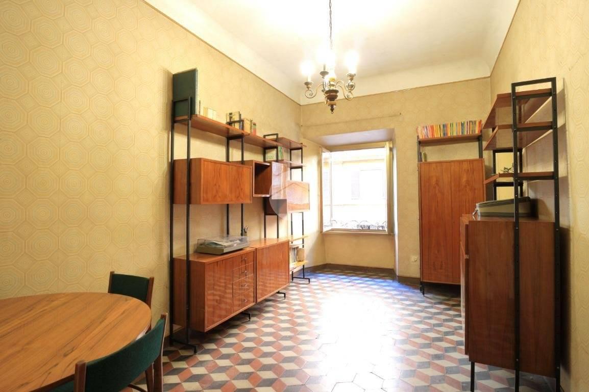 L'immobile, posto al primo piano di un palazzo d'epoca in ottime condizioni servito da ascensore, si estende su una superficie di 121 mq e si compone di grande ingresso, soggiorno, due camere, cucina abitabile con dispensa, bagno e ripostiglio.