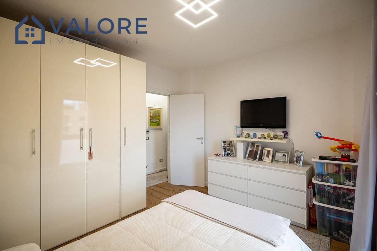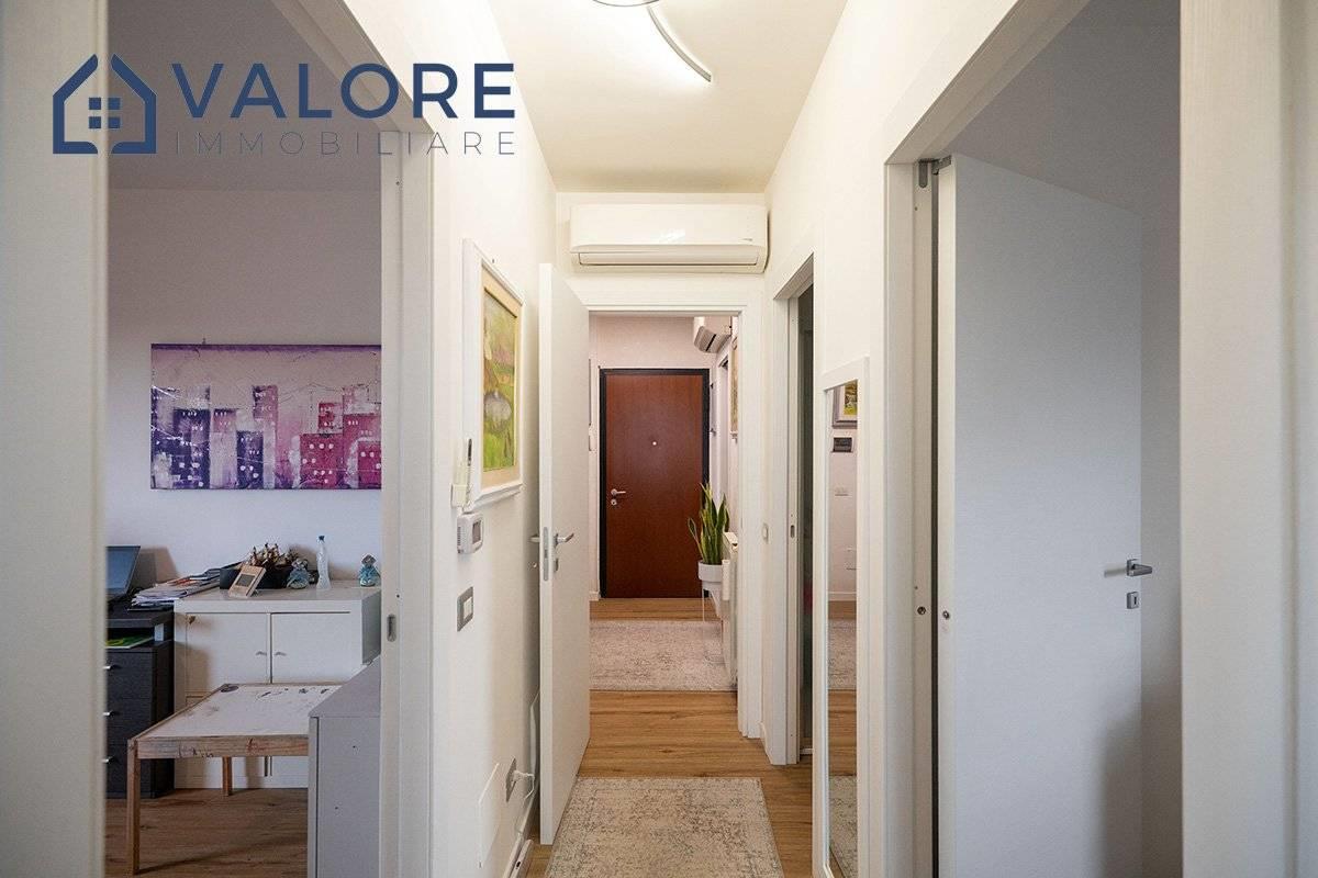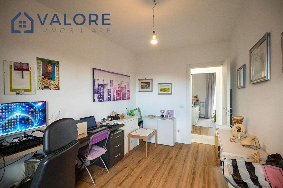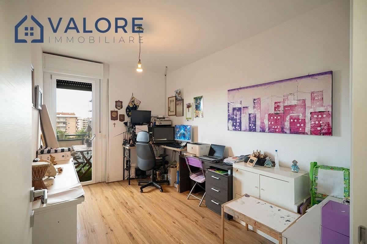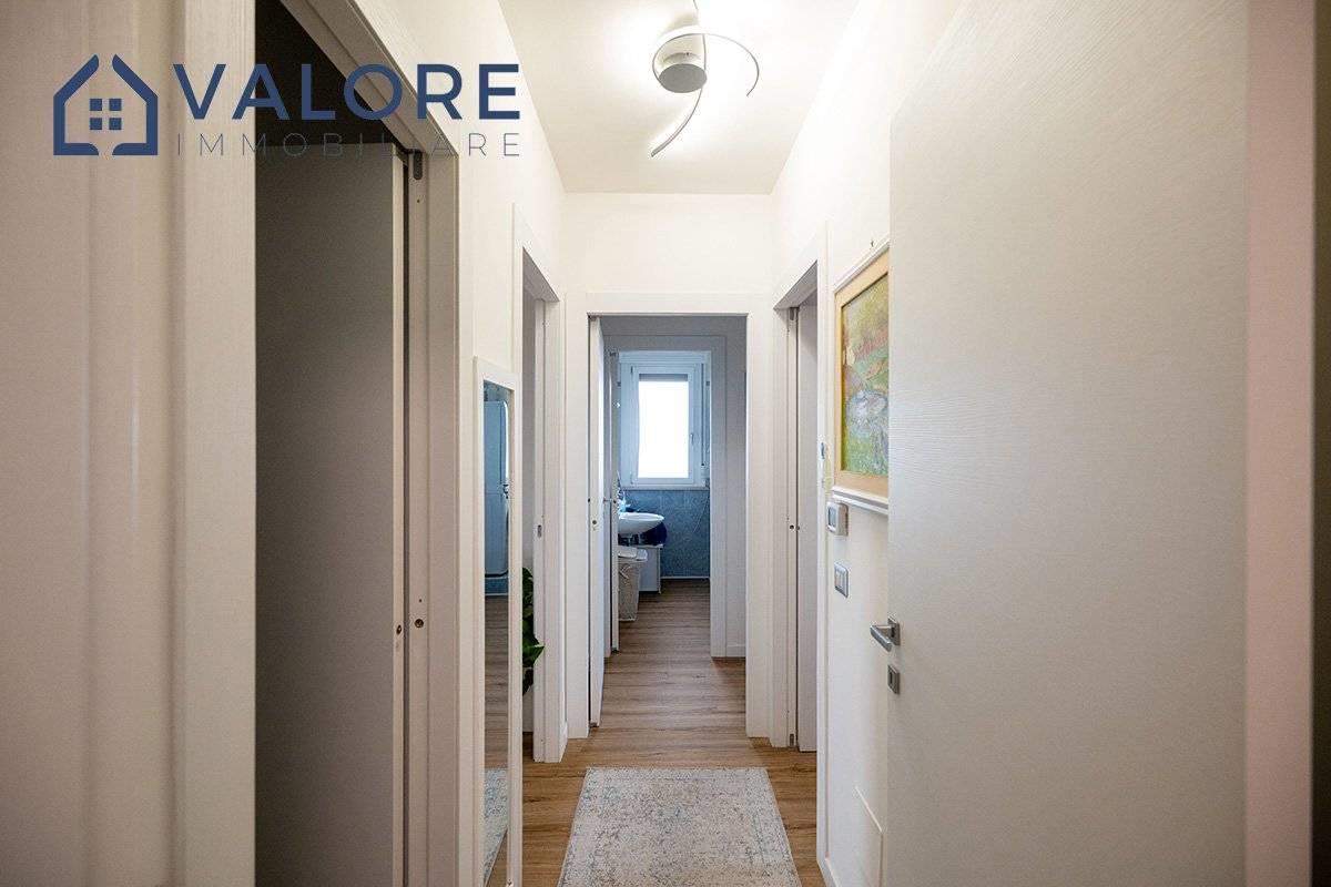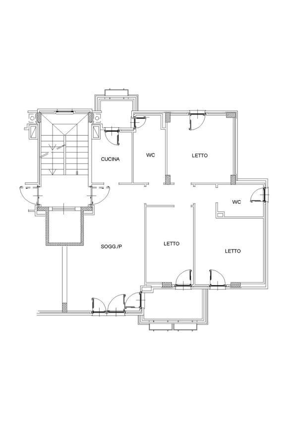L’appartamento è così composto: soggiorno, cucina, tre camere, due bagni entrambi finestrati, due balconi.