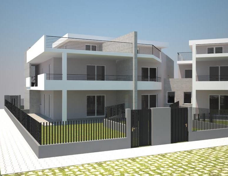 Splendido Appartamento in Villa, con ingresso indipendente, nuovo, rifinitissimo, angolare con tripla esposizione, personalizzabile internamente, di circa 80 mq. interni, composto da salone con angolo cottura, 2 camere da letto, 2 bagni finestrati, portico e giardino di circa 89 mq. Completa la proprietà un comodo posto auto.