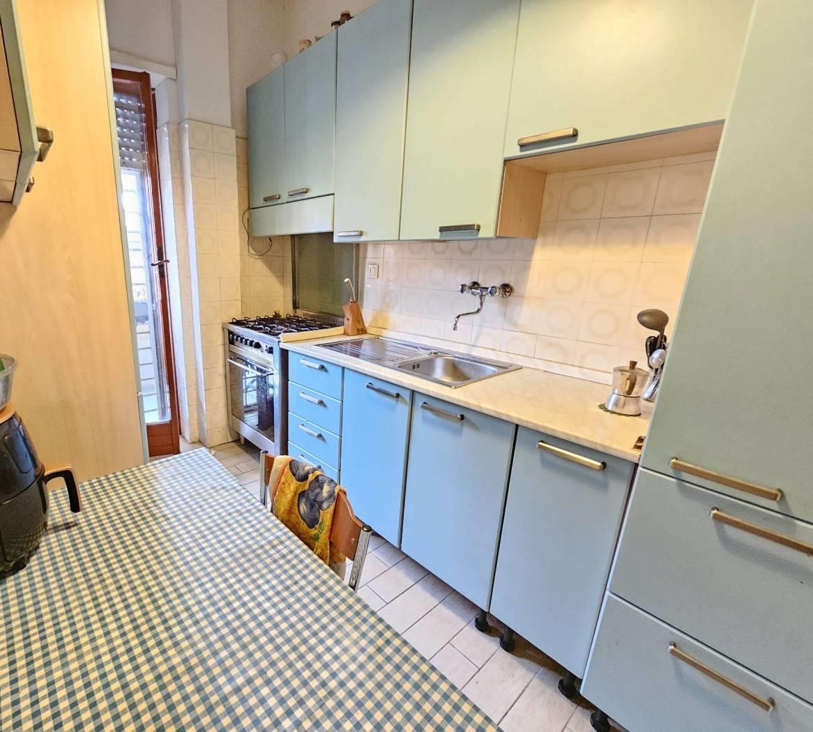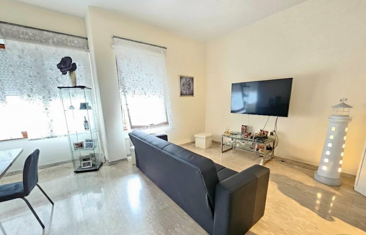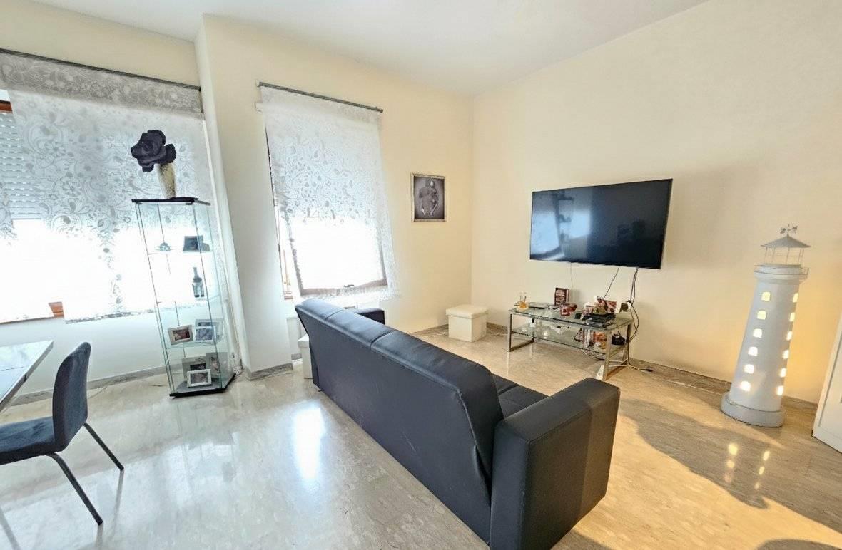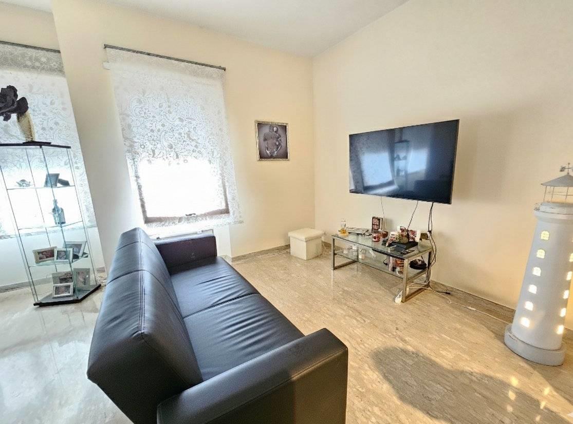 Internamente, l'ampio ingresso definisce bene i volumi dell'abitazione, permettendo una separazione funzionale tra gli ambienti dedicati alla convivialità e quelli della zona notte. La parte giorno si compone di un salone doppio e di un cucinotto separato: entrambi i vani godono di un'uscita diretta sul grande giardino pavimentato di circa 250 mq. Questa superficie esterna rappresenta una rarità per una posizione così centrale, offrendo un’area privata ideale per il relax o per ospitare pranzi e cene all’aperto in totale riservatezza. La zona notte è composta da due camere matrimoniali e una camera media. I servizi sono due, entrambi finestrati: il principale è servito da doccia, mentre il secondo è adibito a bagno di servizio. Per quanto riguarda la climatizzazione, l'immobile è dotato di condizionatori caldo/freddo in sostituzione del riscaldamento autonomo. La posizione è estremamente funzionale: il mare, il centro città e i principali servizi sono tutti raggiungibili a piedi con una breve passeggiata di circa 200 metri. Una soluzione solida e dagli spazi generosi, ideale per chi desidera vivere vicino al mare senza rinunciare alla comodità dei servizi del centro.