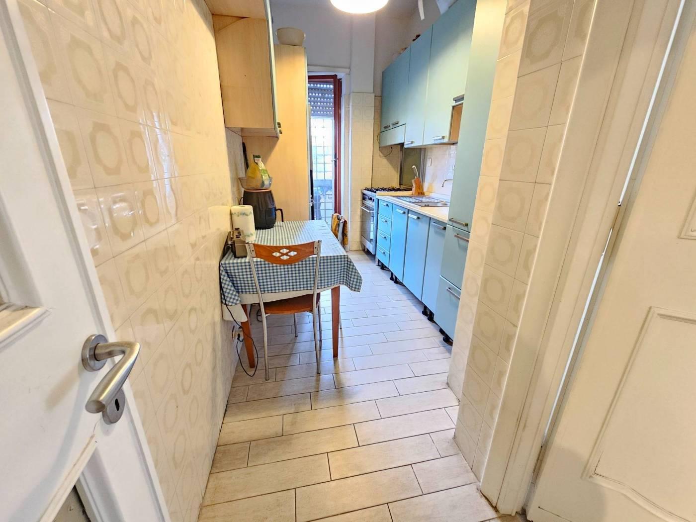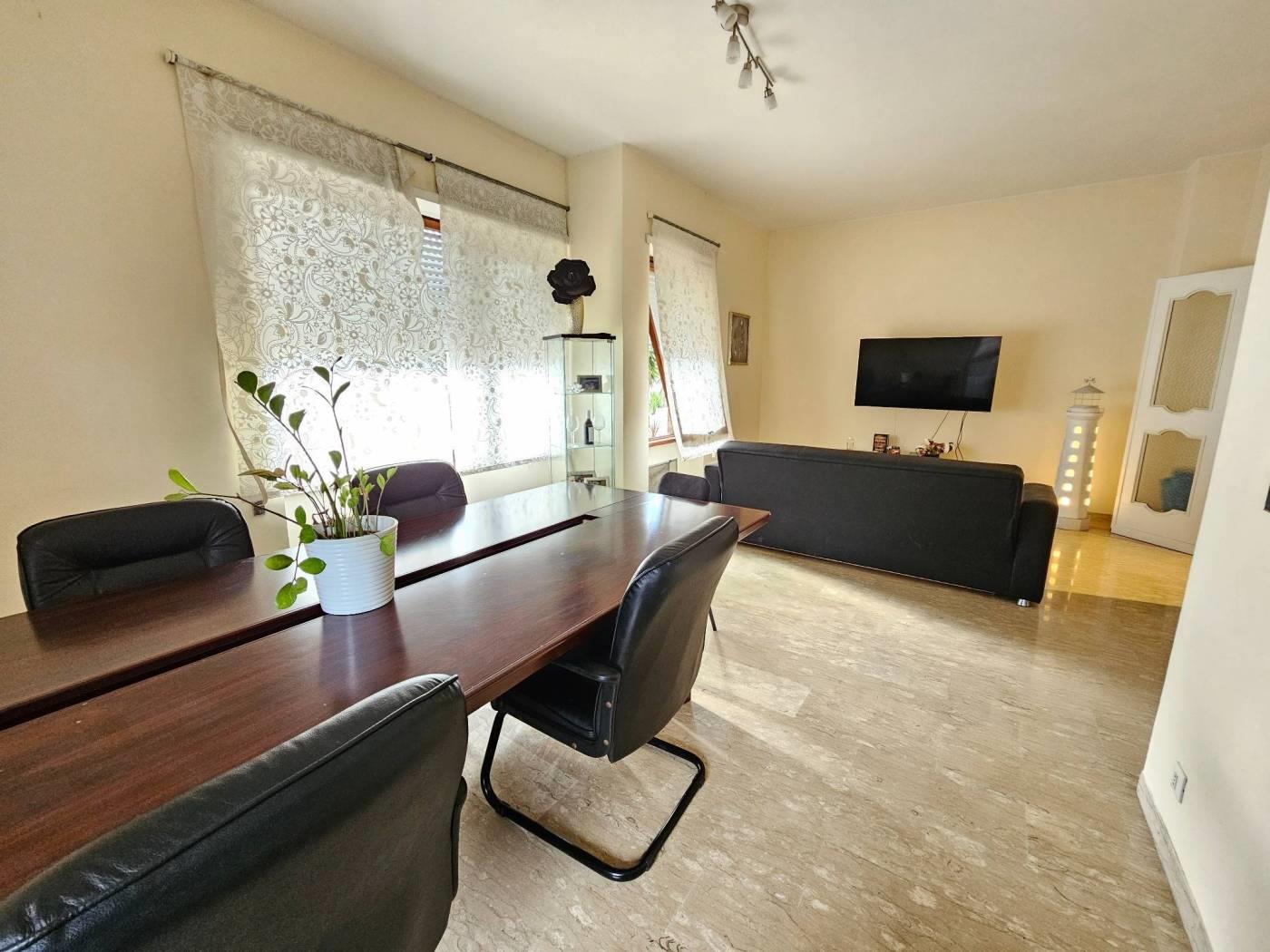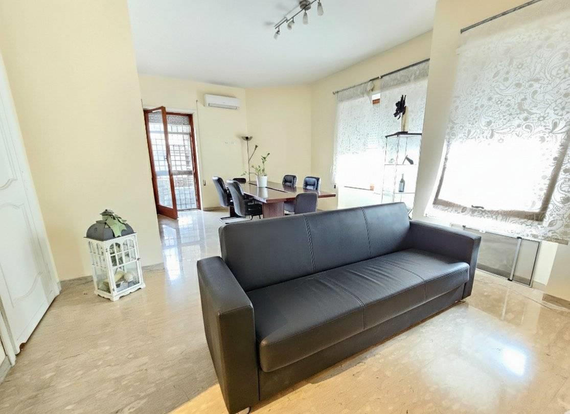 Internamente, l'ampio ingresso definisce bene i volumi dell'abitazione, permettendo una separazione funzionale tra gli ambienti dedicati alla convivialità e quelli della zona notte. La parte giorno si compone di un salone doppio e di un cucinotto separato: entrambi i vani godono di un'uscita diretta sul grande giardino pavimentato di circa 250 mq. Questa superficie esterna rappresenta una rarità per una posizione così centrale, offrendo un’area privata ideale per il relax o per ospitare pranzi e cene all’aperto in totale riservatezza. La zona notte è composta da due camere matrimoniali e una camera media. I servizi sono due, entrambi finestrati: il principale è servito da doccia, mentre il secondo è adibito a bagno di servizio. Per quanto riguarda la climatizzazione, l'immobile è dotato di condizionatori caldo/freddo in sostituzione del riscaldamento autonomo. La posizione è estremamente funzionale: il mare, il centro città e i principali servizi sono tutti raggiungibili a piedi con una breve passeggiata di circa 200 metri. Una soluzione solida e dagli spazi generosi, ideale per chi desidera vivere vicino al mare senza rinunciare alla comodità dei servizi del centro.