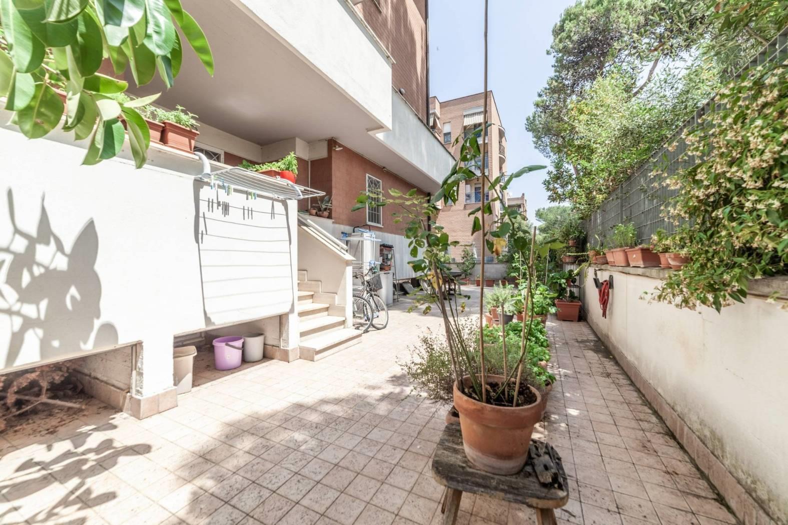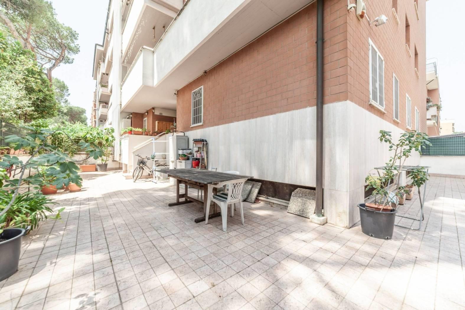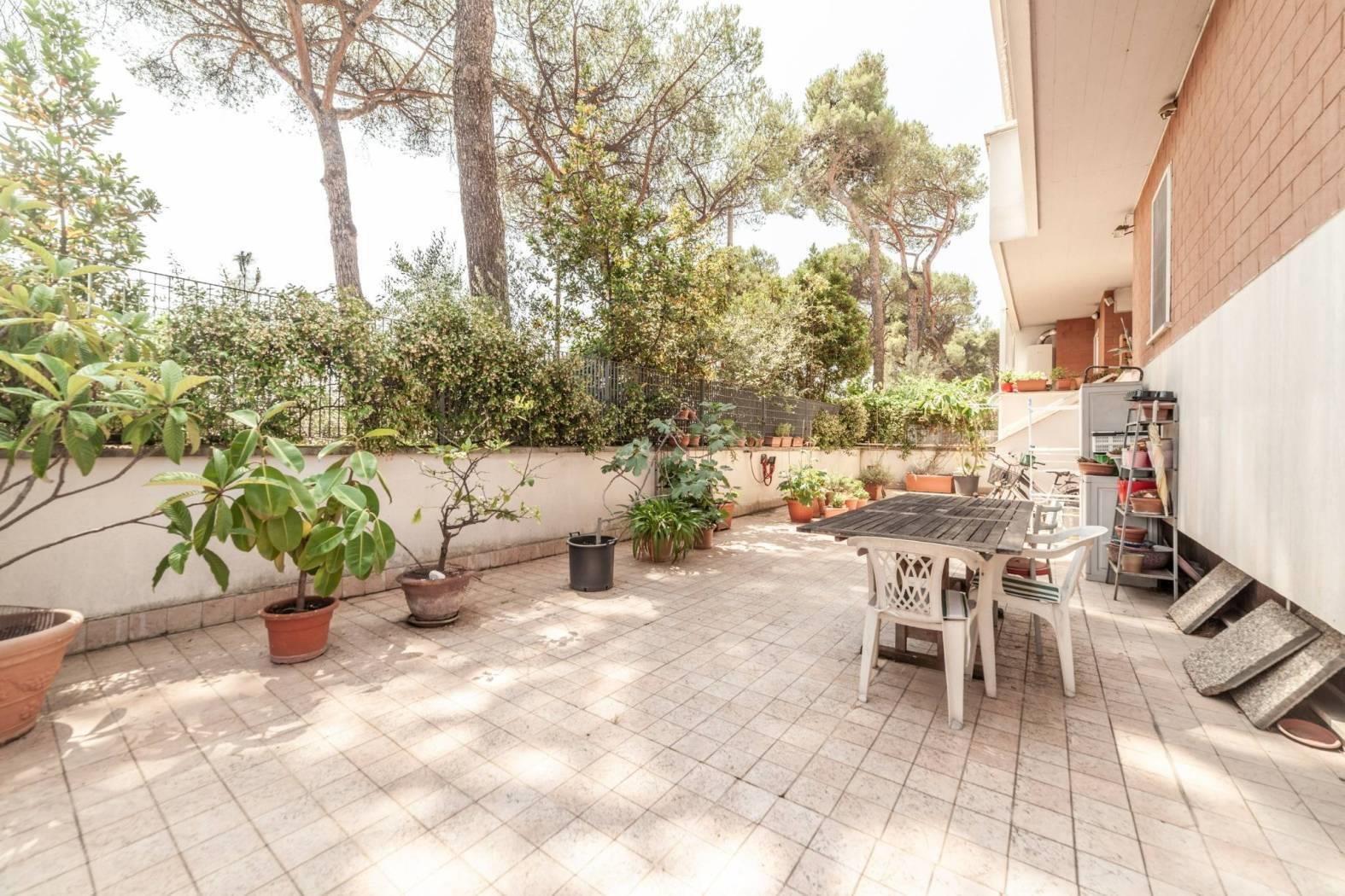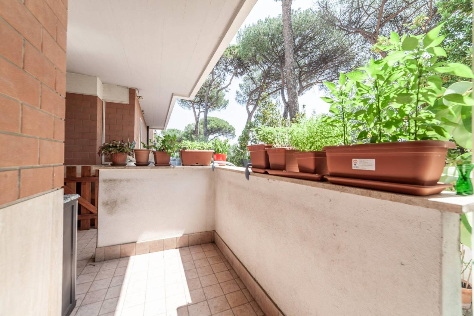 Direzione Casa propone in vendita esclusiva un appartamento situato al piano terra di un raffinato comprensorio composto da 5 palazzine in cortina di 4 piani, dotato di ascensore. L’immobile, che si estende su una superficie di 116 mq, si presenta con un ingresso che apre su una funzionale cucina, dal quale si accede all’importante terrazzo. Dal salone si raggiunge la zona notte, composta da tre camere da letto e i due servizi. L'appartamento gode di una doppia esposizione Est/SudEst, che garantisce luminosità durante tutta la mattinata e affacci su un contesto tranquillo e verdeggiante. Gli spazi interni sono in buono stato, con pavimenti in gres porcellanato, mentre gli infissi in legno con doppio vetro contribuiscono a un elevato isolamento termico e acustico. A completare il comfort, il riscaldamento autonomo con pannelli solari di proprietà per la produzione di acqua calda.