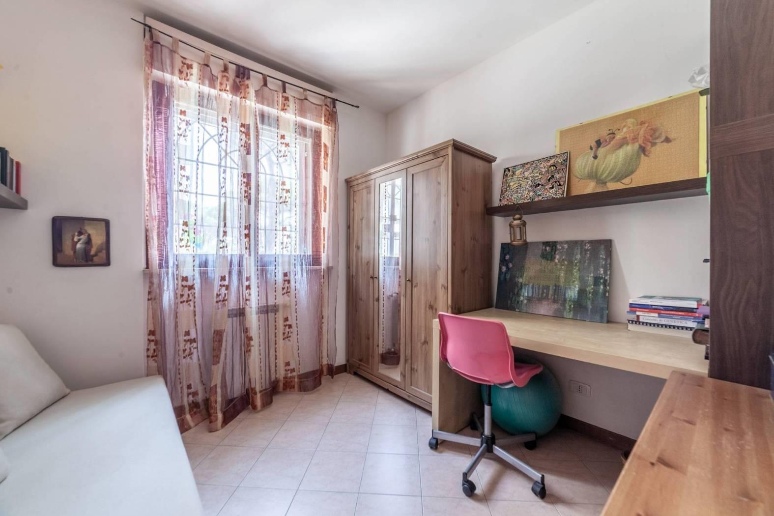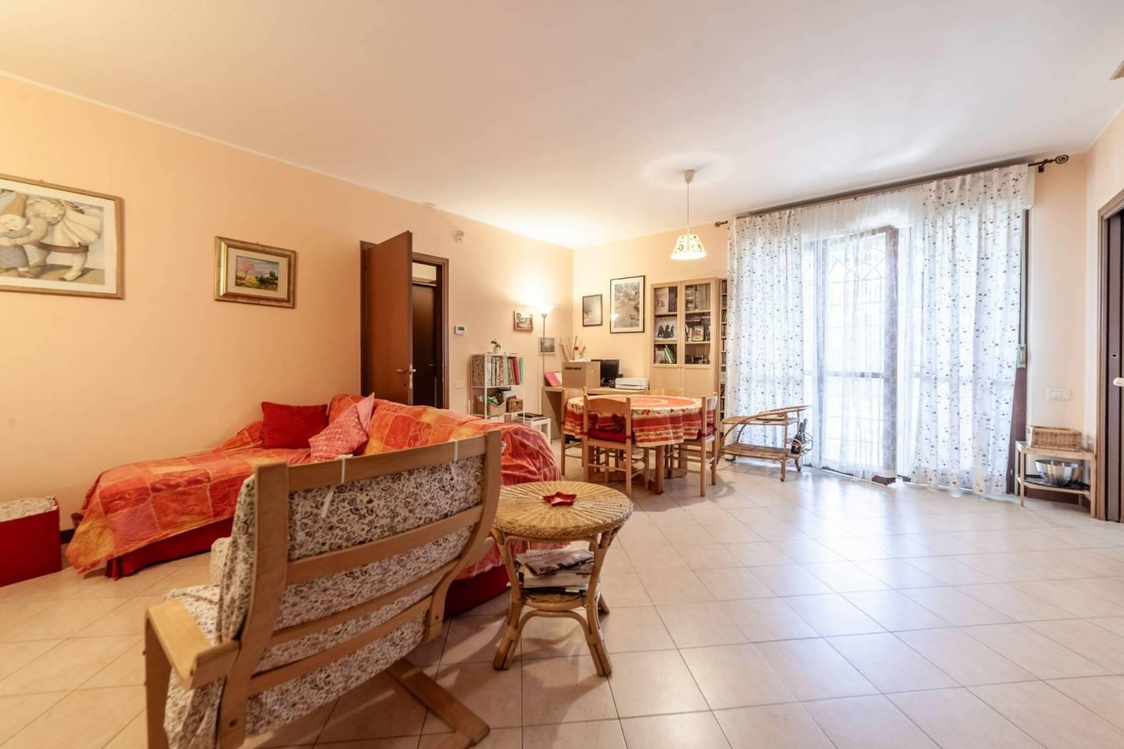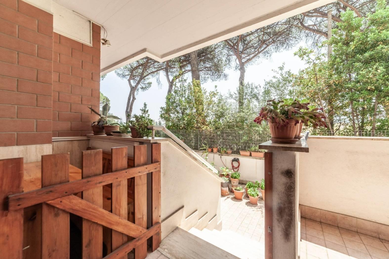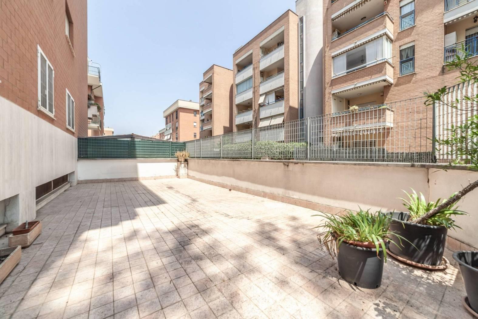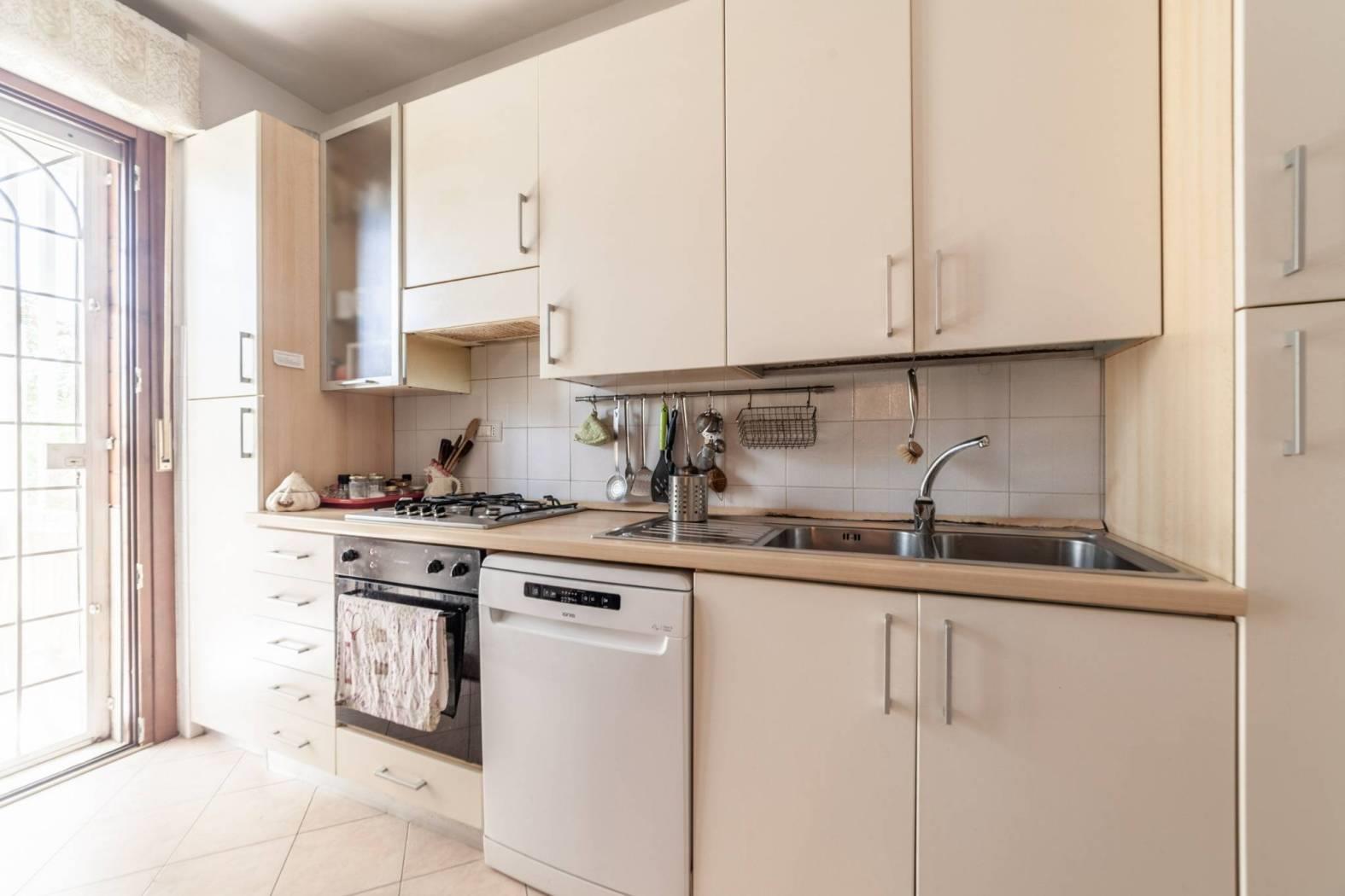 Direzione Casa propone in vendita esclusiva un appartamento situato al piano terra di un raffinato comprensorio composto da 5 palazzine in cortina di 4 piani, dotato di ascensore. L’immobile, che si estende su una superficie di 116 mq, si presenta con un ingresso che apre su una funzionale cucina, dal quale si accede all’importante terrazzo. Dal salone si raggiunge la zona notte, composta da tre camere da letto e i due servizi. L'appartamento gode di una doppia esposizione Est/SudEst, che garantisce luminosità durante tutta la mattinata e affacci su un contesto tranquillo e verdeggiante. Gli spazi interni sono in buono stato, con pavimenti in gres porcellanato, mentre gli infissi in legno con doppio vetro contribuiscono a un elevato isolamento termico e acustico. A completare il comfort, il riscaldamento autonomo con pannelli solari di proprietà per la produzione di acqua calda.