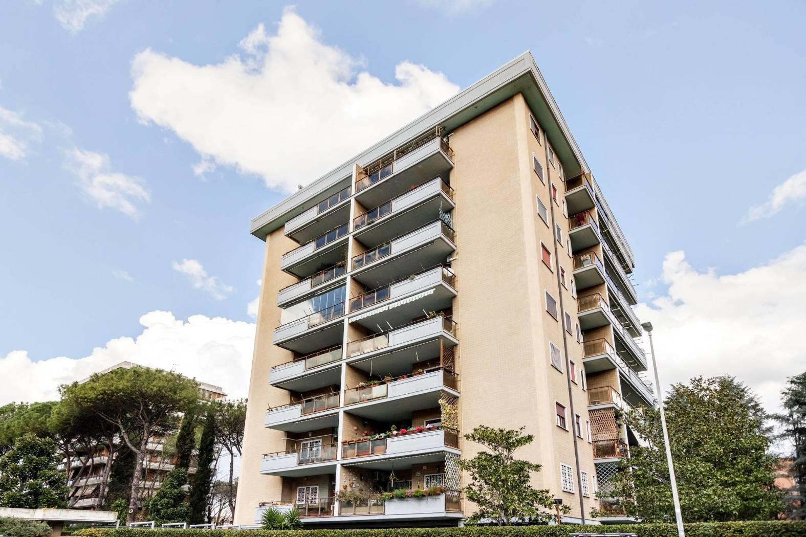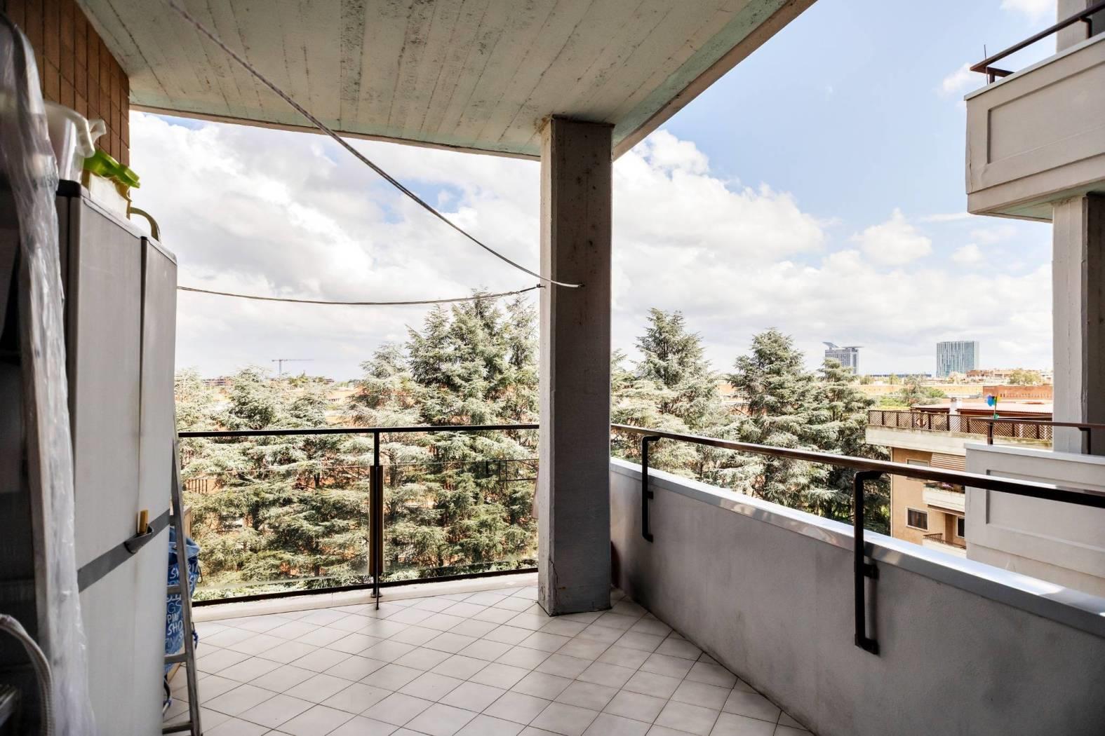 All'interno di uno stabile in cortina, con servizio di portierato, la nostra società immobiliare EUREKA REAL ESTATE propone la vendita di un appartamento, posto al piano sesto, di mq 117 commerciali, composto di: ingresso, salone doppio, cucina abitabile, tre camere da letto, doppi servizi (entrambi finestrati), due terrazzi vivibili per un totale di mq 40; l'immobile gode di una doppia esposizione e di un gradevole affaccio sul verde.
