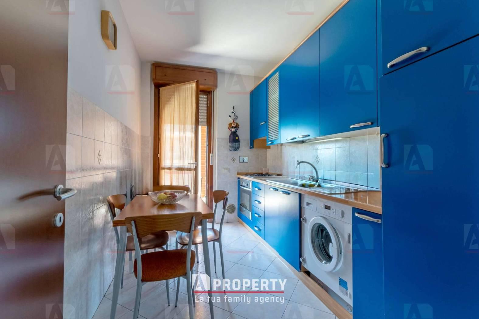 Accanto, una cucina abitabile con un secondo balcone: perfetta per chi ama cucinare e godersi la casa nei suoi momenti più intimi.