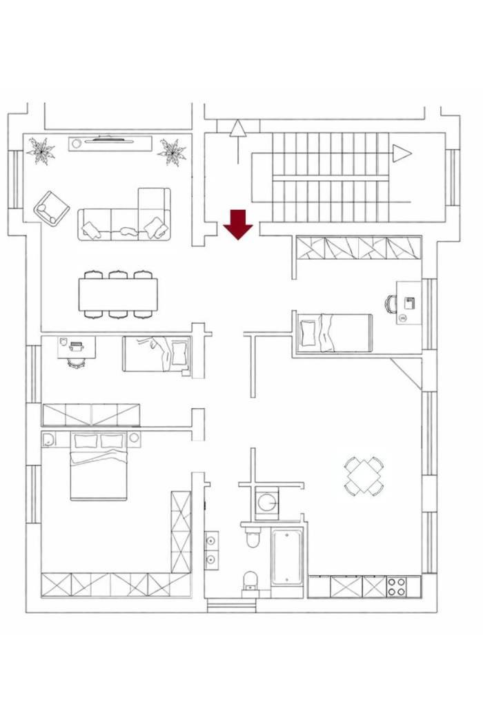 L'appartamento, di circa 120 mq, si sviluppa su un unico livello al secondo e ultimo piano di uno stabile in tinta e cortina non servito da ascensore.