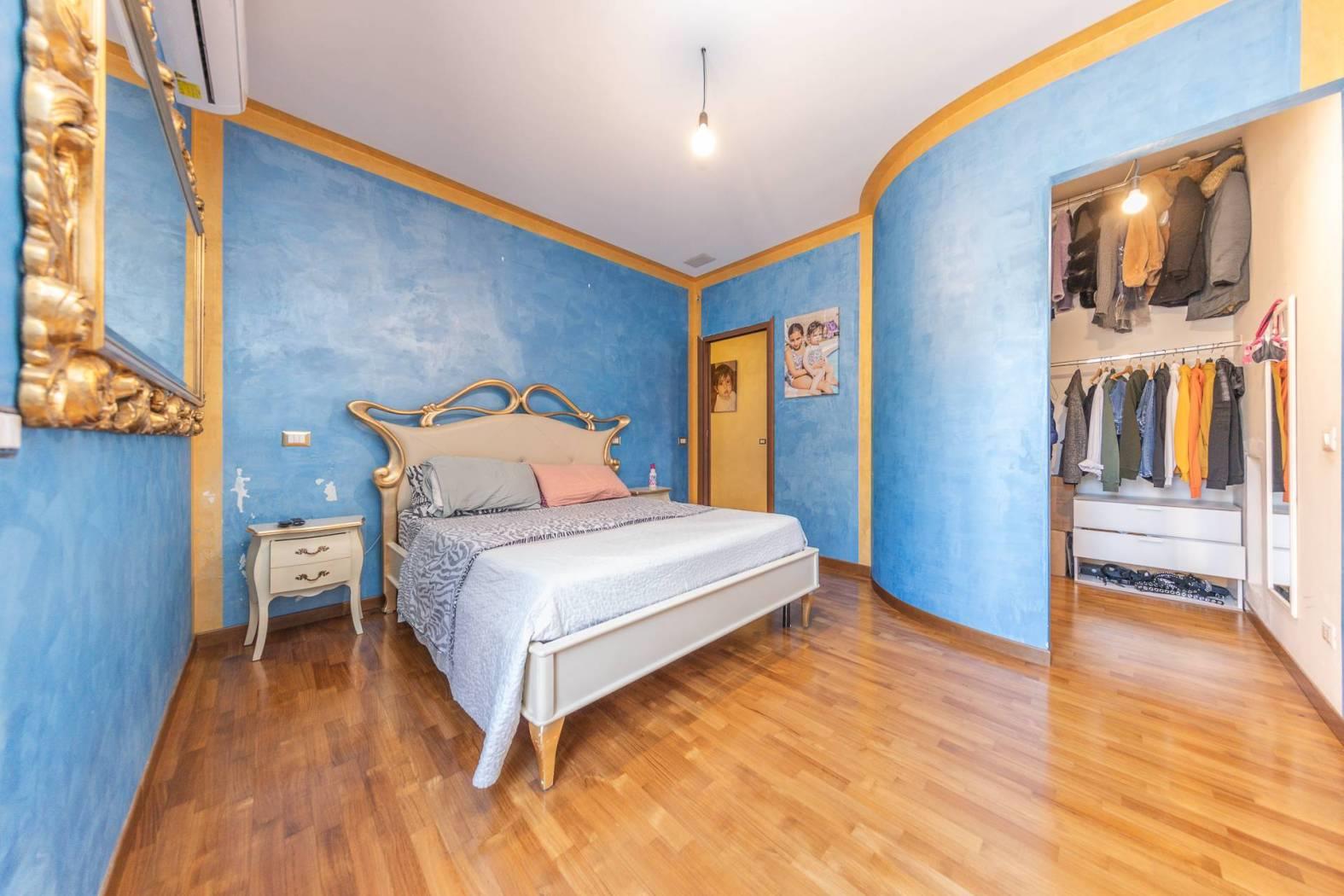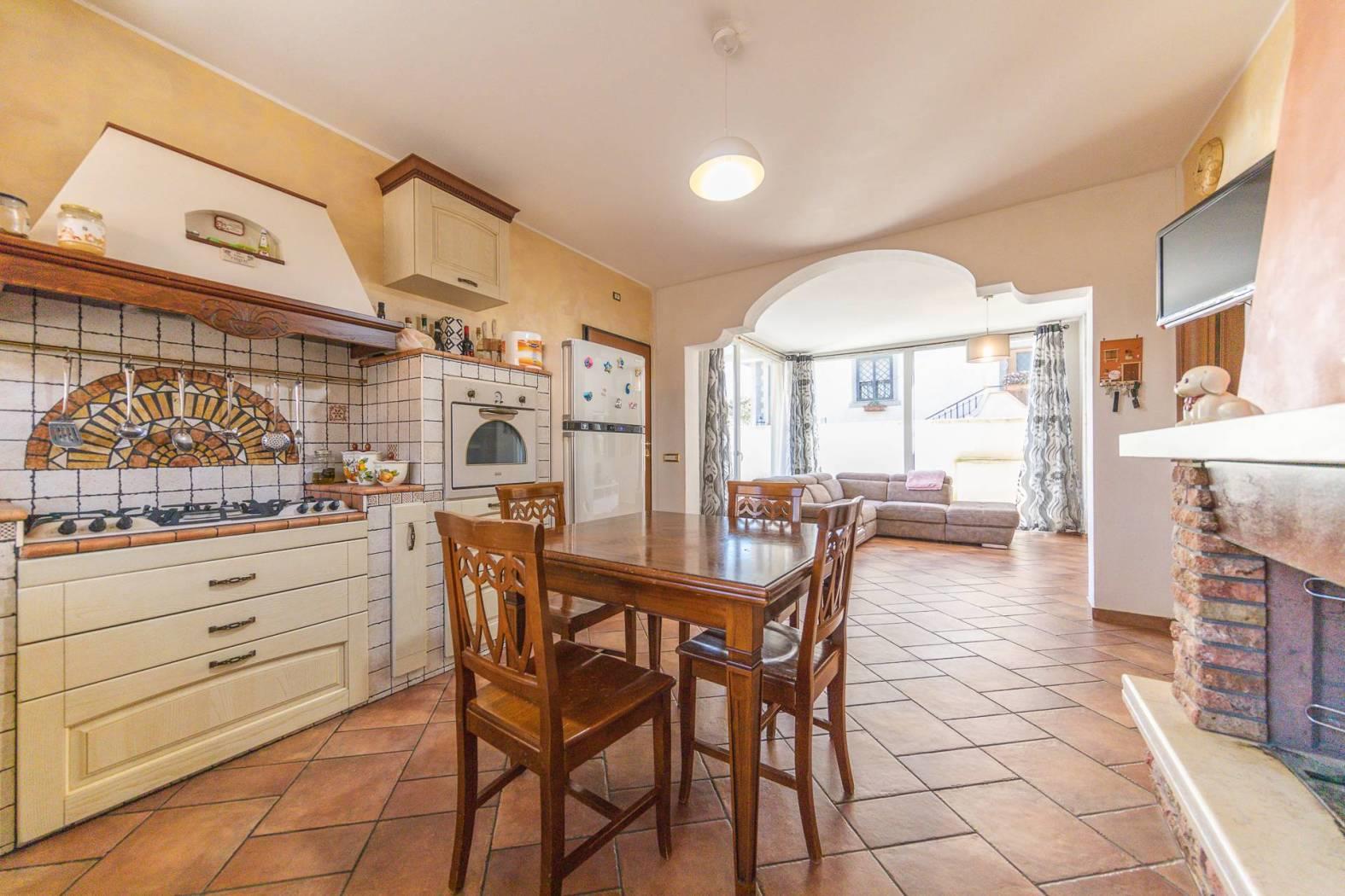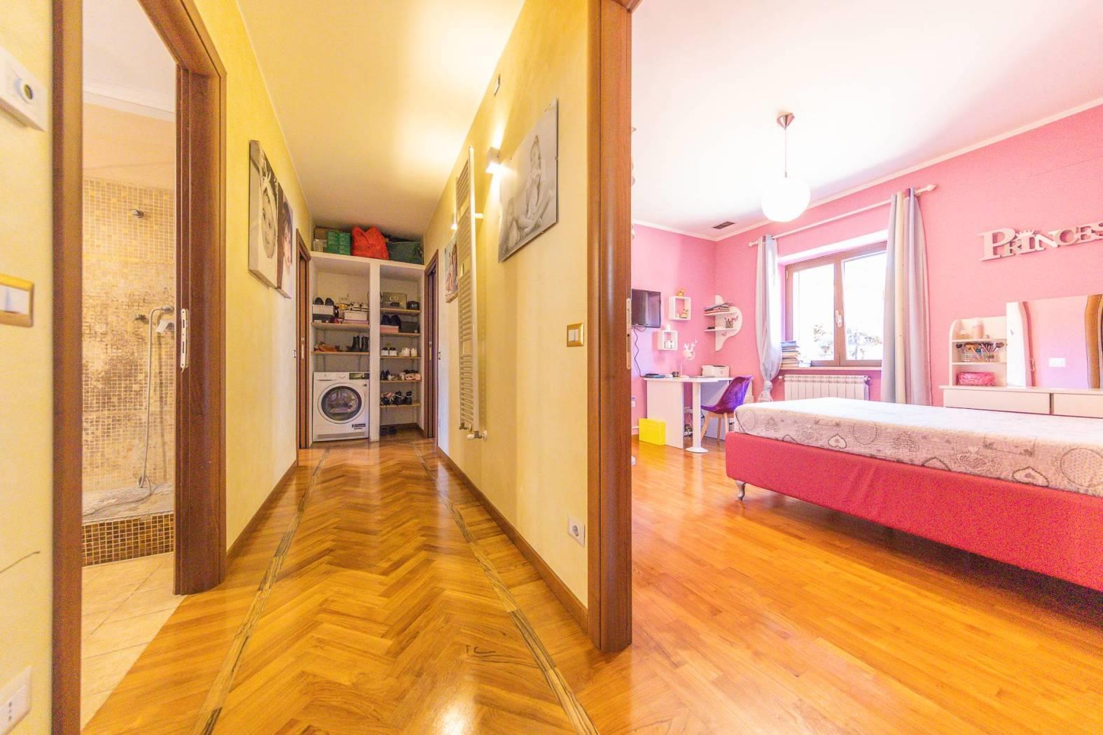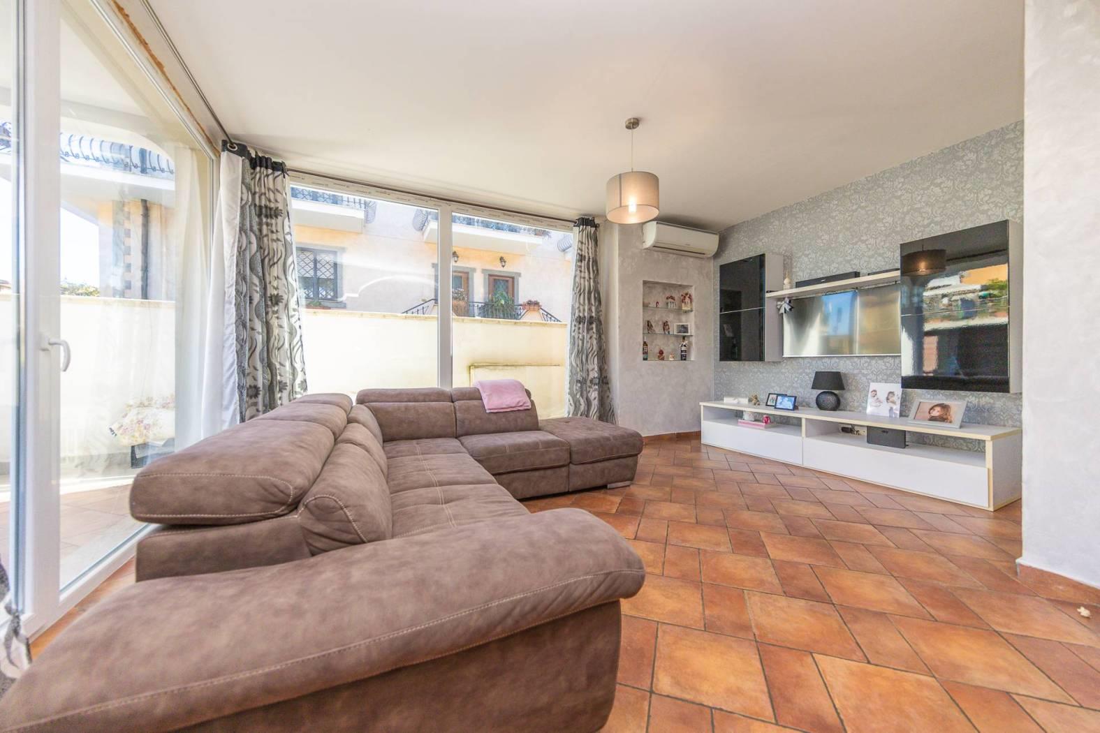 Impreziosito dalla presenza di un ampio spazio esterno mattonato l'appartamento gode di un entrata indipendente e la possibilità di parcheggiare varie auto all'interno del proprio spazio privato. Internamente troviamo una spaziosa zona living con cucina a vista e serra solare che dona un'immensa luminosità e un ottimo spazio di zona giorno. Il disimpegno ci conduce alla zona notte dove sono presenti ben tre camere da letto, tutte matrimoniali, e di cui una con cabina armadio, ed un grandissimo bagno di quasi 10 mq, facilmente divisibile in due distinti bagni oppure per il secondo bagno può essere ottenuto ripristinandolo all'interno della zona attualmente adibita a cabina armadio. L'appartamento in perfette condizioni non necessita di interventi è bensì pronto per essere abitato.