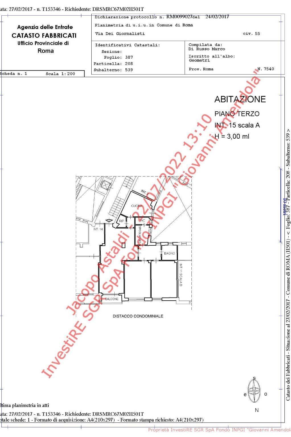In via dei Giornalisti, zona Camilluccia, proponiamo in vendita un appartamento OCCUPATO (scadenza locazione 2030) di 116 mq + balcone, posto al 3 piano di una palazzina di 5 livelli.