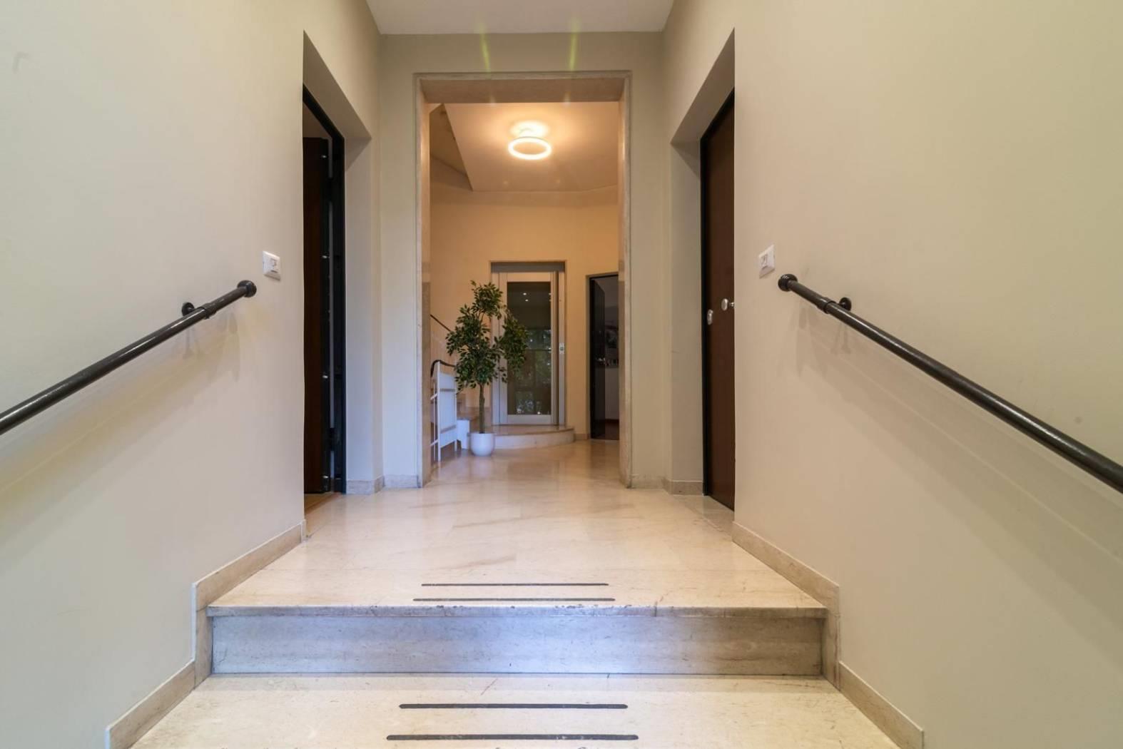 L’appartamento è consegnato nuovo, completamente finito con pregiato pavimento in graniti italiani, porte laccate bianche, bagni completamente ultimati con pregiati pavimenti, sanitari, box doccia e rubinetteria made in Italy, portoncino blindato classe 3, videocitofono Urmet e cassette postali smart con apertura da remoto.