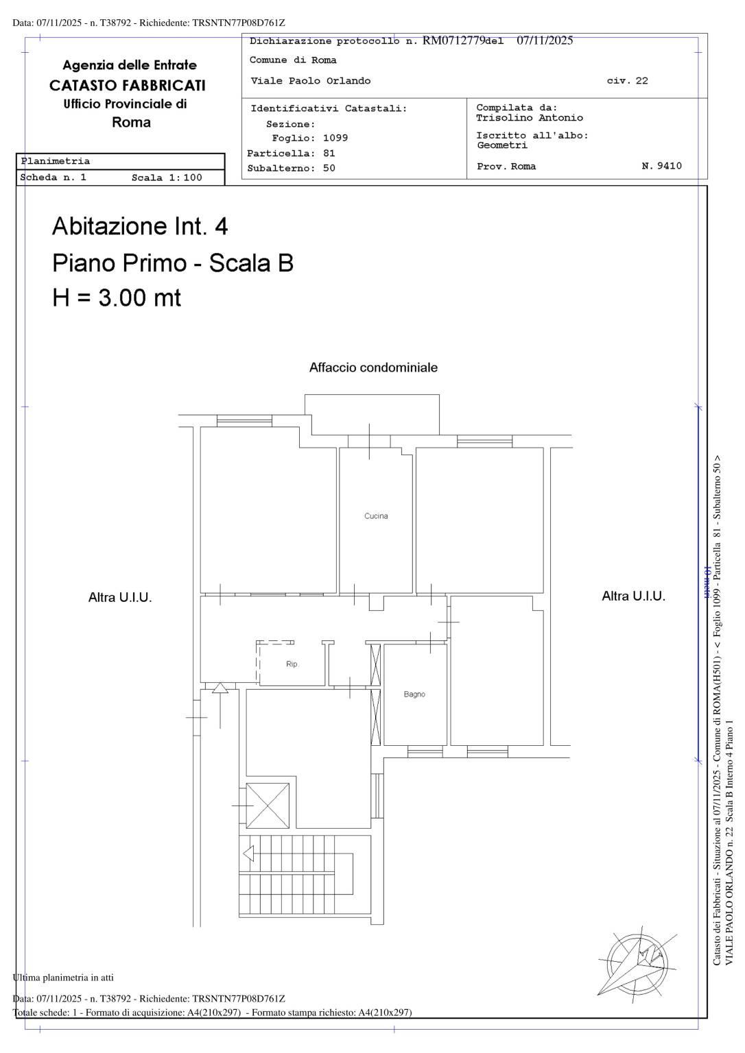 In Viale Paolo Orlando 22, a 250 mt dalla stazione Lido Centro e meno di 400 mt dal mare, la RomaDomus presenta un immobile di circa 100 mq commerciali, posto al piano primo, composto da ingresso, salone, cucina abitabile con balcone, 3 camere ed un bagno. L'immobile è stato per lungo tempo utilizzato come studio professionale; gli ultimi lavori di ristrutturazione risalgono a circa 10 anni fa. Riscaldamento autonomo; grate artistiche a tutte le finestre; porta blindata. L'immobile è dotato di certificazione di agibilità e per esso è già stata redatta una dichiarazione di conformità urbanistica e catastale asseverata. Classe energetica G.