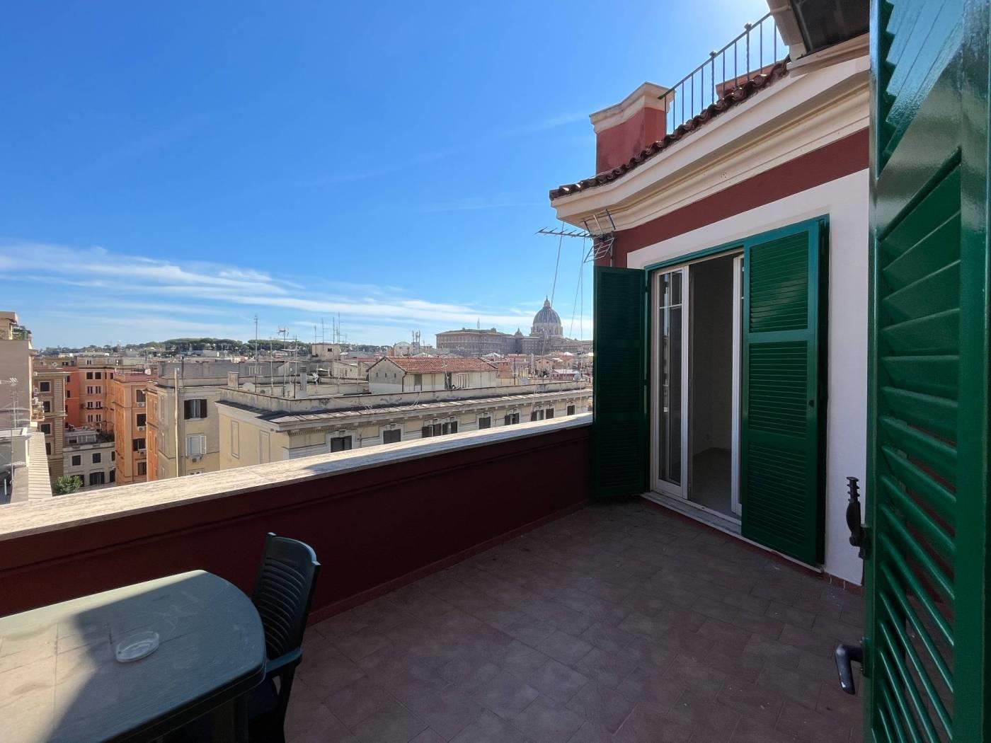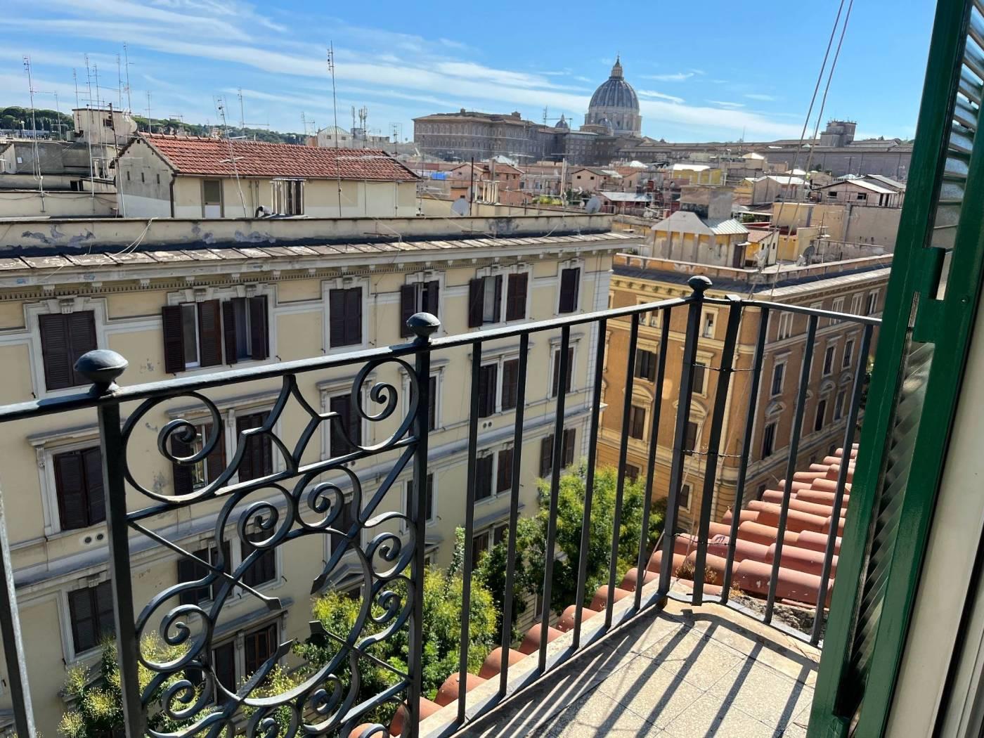 Prati VIA GERMANICO in palazzo d'epoca con ascensore, vicino San Pietro. Bellissimo appartamento piano alto con vista su San Pietro composto da ingresso, salone-pranzo, due camere da letto, cucina, doppi servizi, ripostiglio. L'appartamento ha un comodo terrazzo e due balconi. Parzialmente arredato. Riscaldamento autonomo. Appartamento disponibile da marzo 2026