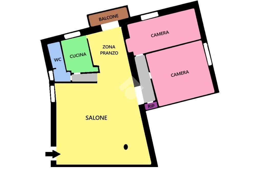 L’appartamento gode di una buona luminosità grazie al piano alto e presenta una distribuzione degli spazi funzionale e ben equilibrata. Internamente è composto da un ampio salone a vista, due camere da letto spaziose, cucinotto, servizio, ripostiglio e balcone.