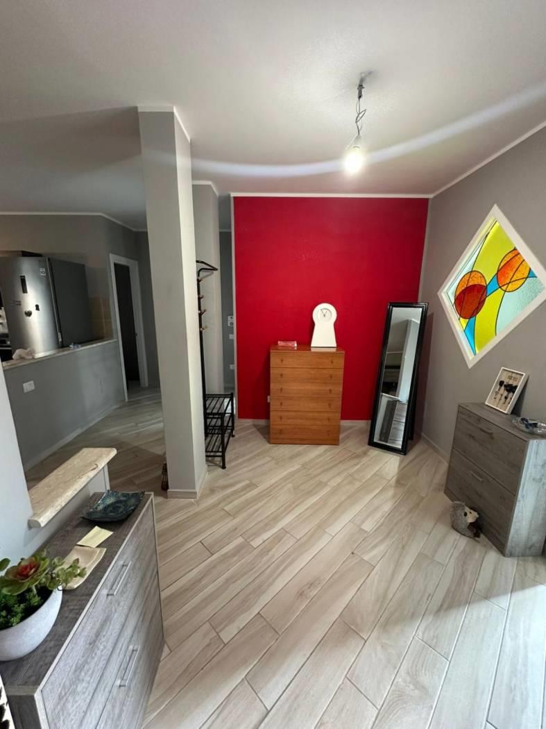 L'immobile si apre con un ampio e accogliente ingresso che conduce a un luminoso salone con cucina a vista, dotato di accesso diretto a un pratico balcone verandato. La zona notte comprende tre camere da letto, di cui una attualmente trasformata in sala hobby, un bagno e un posto auto semicoperto. Tra i comfort inclusi figurano il riscaldamento autonomo e infissi in doppio vetro, che garantiscono efficienza energetica e isolamento acustico.