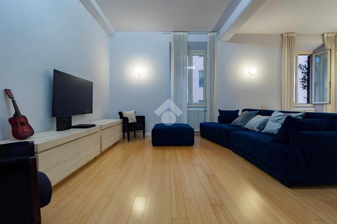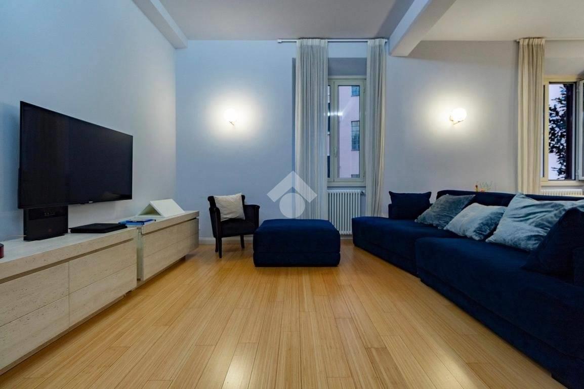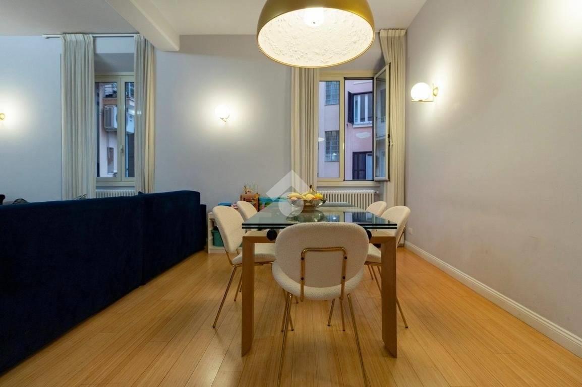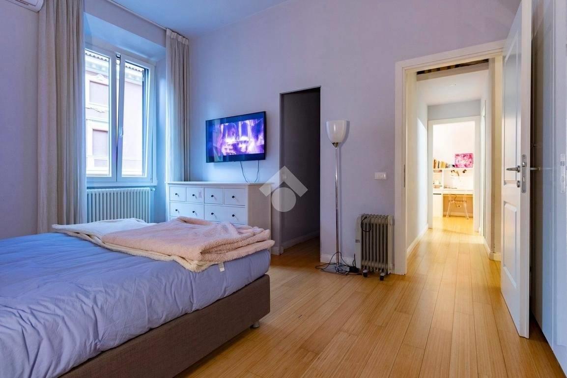 Internamente l'appartamento è composto da un ampio ingresso di rappresentanza che introduce ad un salone doppio di generose dimensioni, luminoso e allo stesso tempo molto silenzioso grazie ai suoi affacci su distacchi interni. La cucina abitabile, accessibile dal salone, è funzionale e ben organizzata ed è dotata di un comodo ripostiglio/lavanderia perfettamente integrato. La zona notte comprende due camere da letto, di cui una padronale con cabina armadio e bagno en-suite, affiancata da una seconda camera luminosa con balcone, ed un ulteriore bagno con doccia. Il riscaldamento è autonomo.