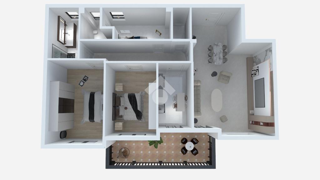 La zona notte offre due camere matrimoniali di ottime dimensioni, oltre a una terza stanza con bagno privato, perfetta come camera aggiuntiva o studio. Completano la proprietà un secondo bagno e un comodo ripostiglio, utilissimo per l’organizzazione della casa.