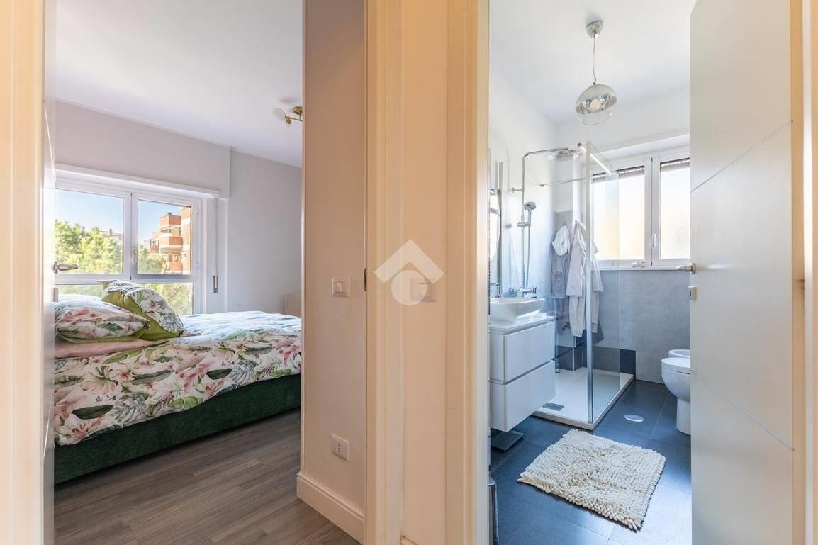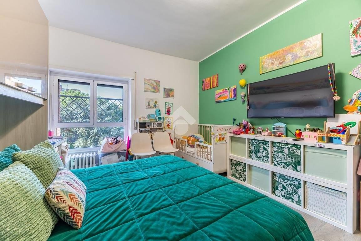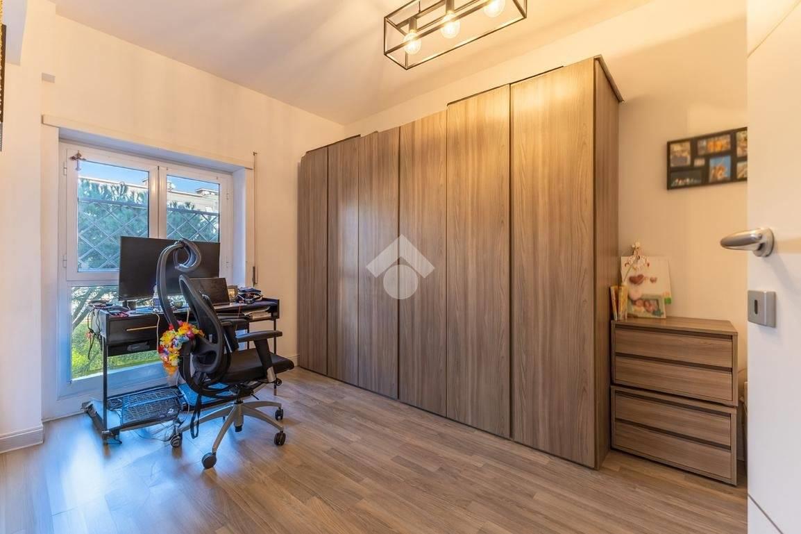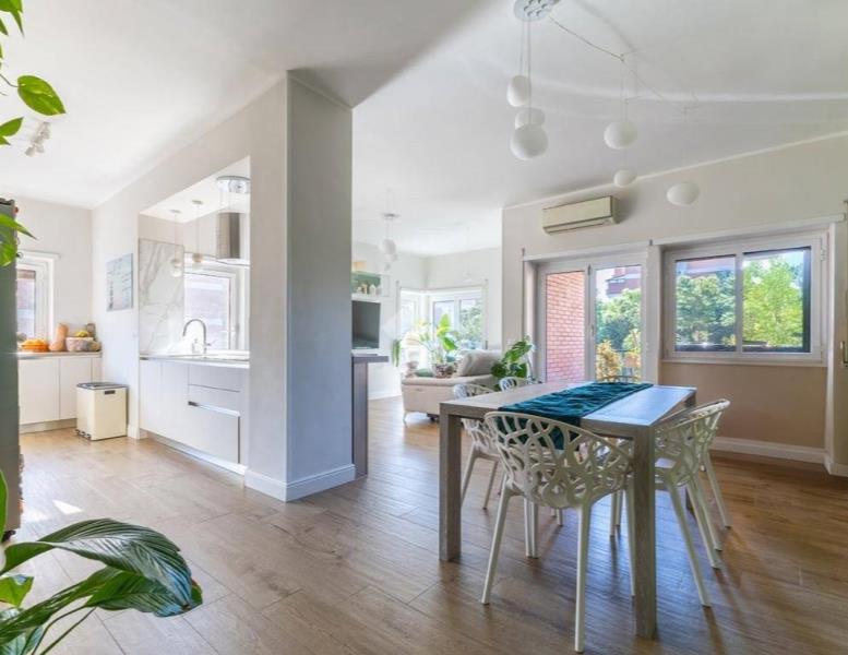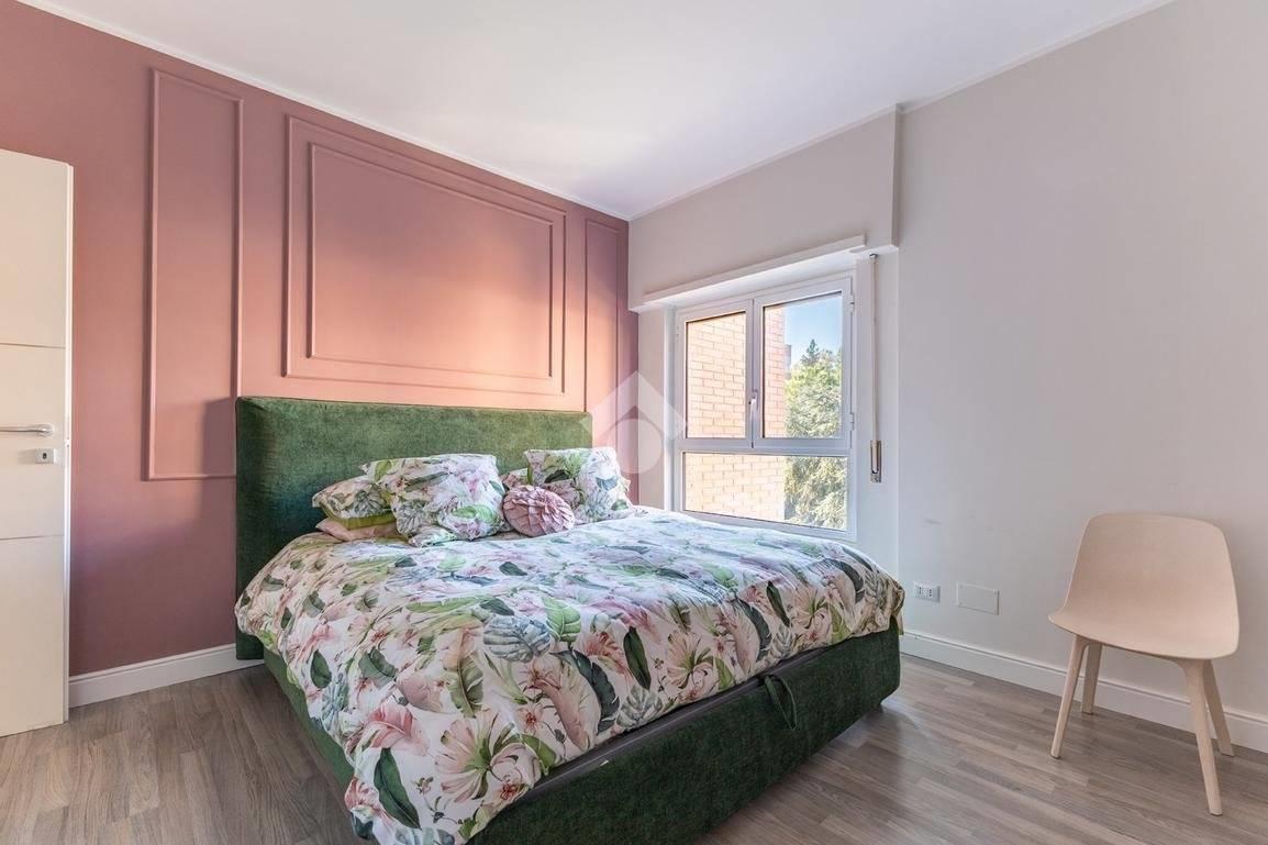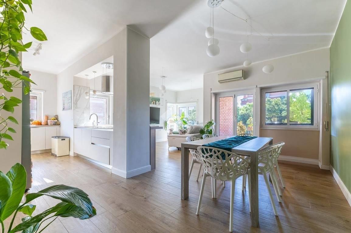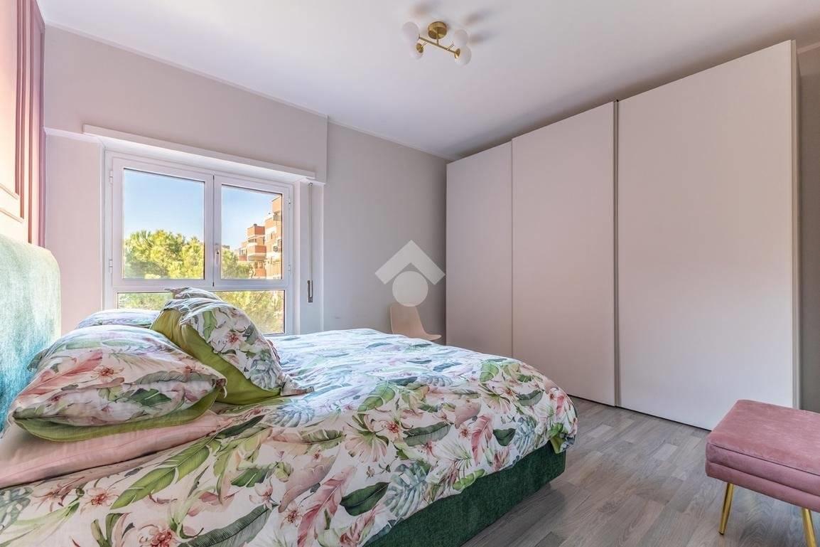 Eur Tintoretto. In viale del Tintoretto, all'interno di un condominio dotato di servizio di portineria ed ampi giardini, proponiamo in vendita un appartamento quadrilocale posto al 5° piano. L'immobile è composto da ingresso, salone, cucina, tre camere, due bagni, studio, lavanderia e due balconi. Completano la proprietà una cantina e due posti auto coperti.