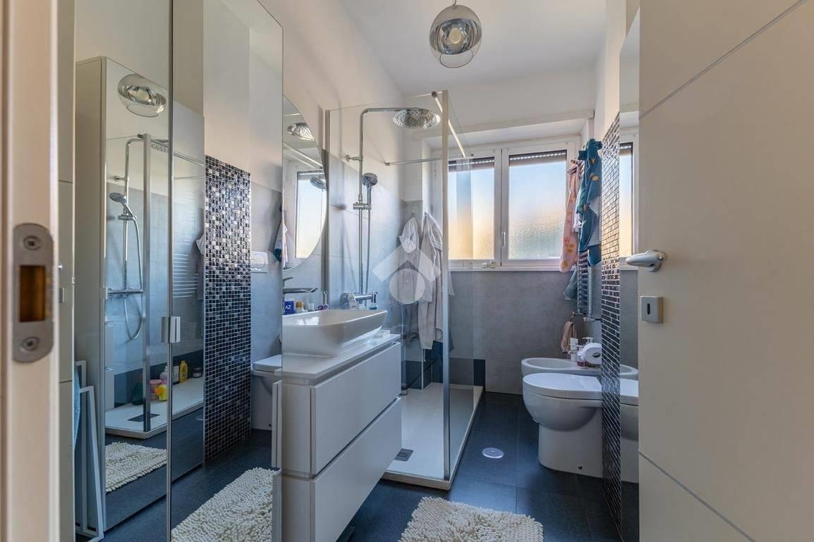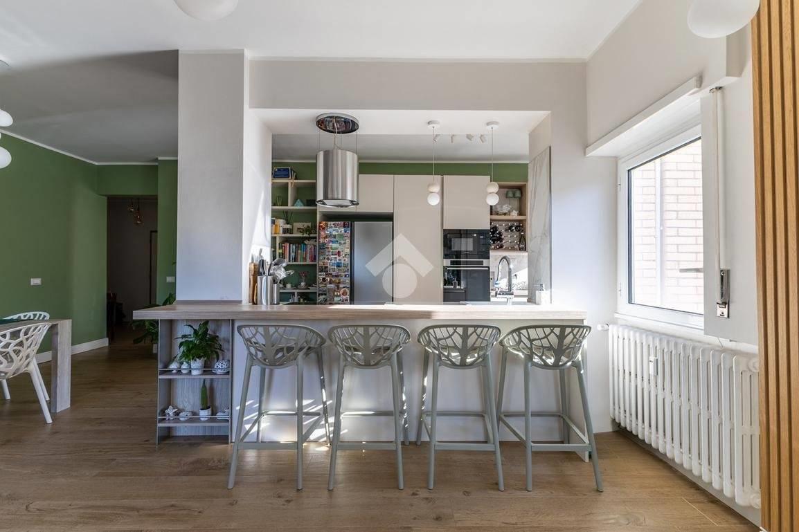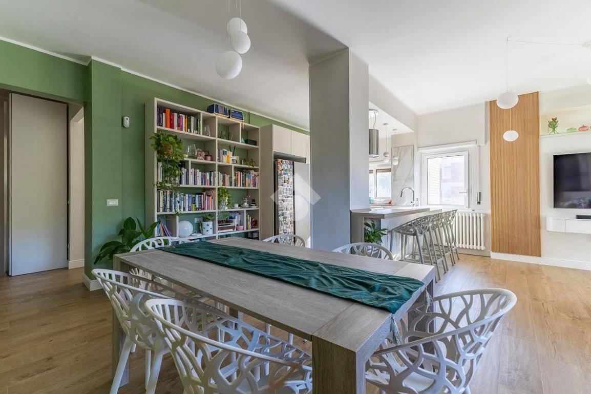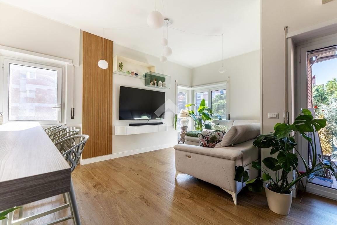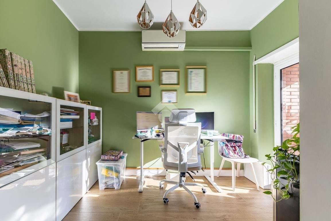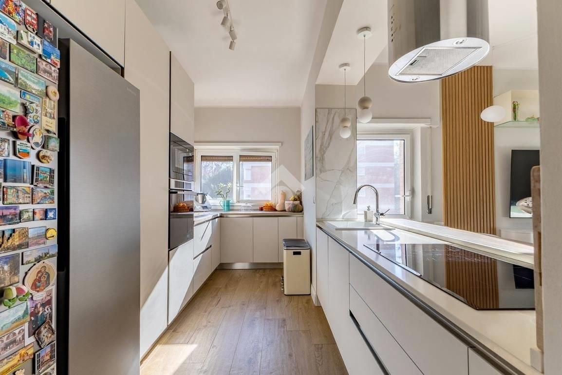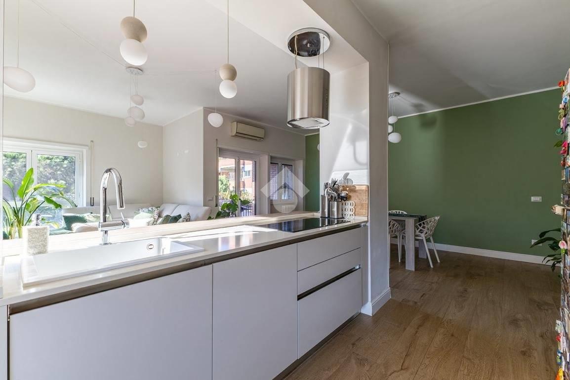 Eur Tintoretto. In viale del Tintoretto, all'interno di un condominio dotato di servizio di portineria ed ampi giardini, proponiamo in vendita un appartamento quadrilocale posto al 5° piano. L'immobile è composto da ingresso, salone, cucina, tre camere, due bagni, studio, lavanderia e due balconi. Completano la proprietà una cantina e due posti auto coperti.
