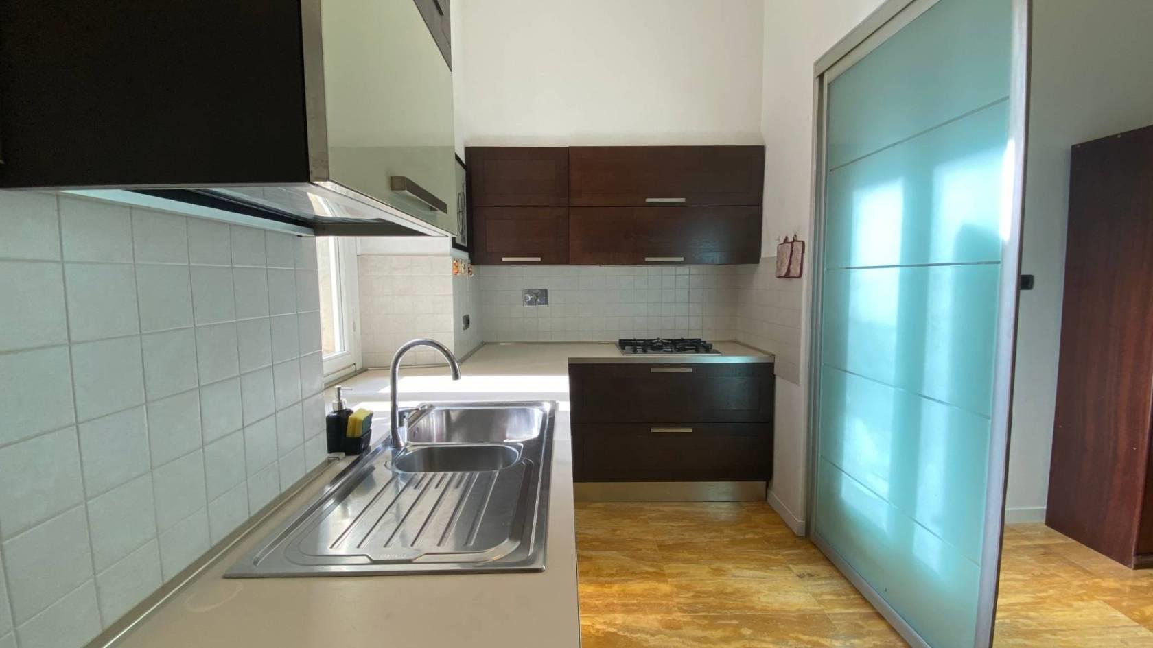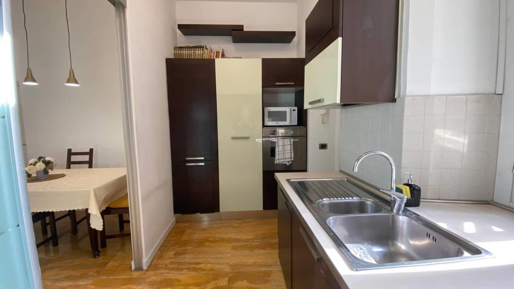La cucina è completa di tutti gli elettrodomestici, inclusa la lavastoviglie; sono inoltre presenti un ripostiglio e una pratica zona lavanderia dotata di lavatrice e asciugatrice.