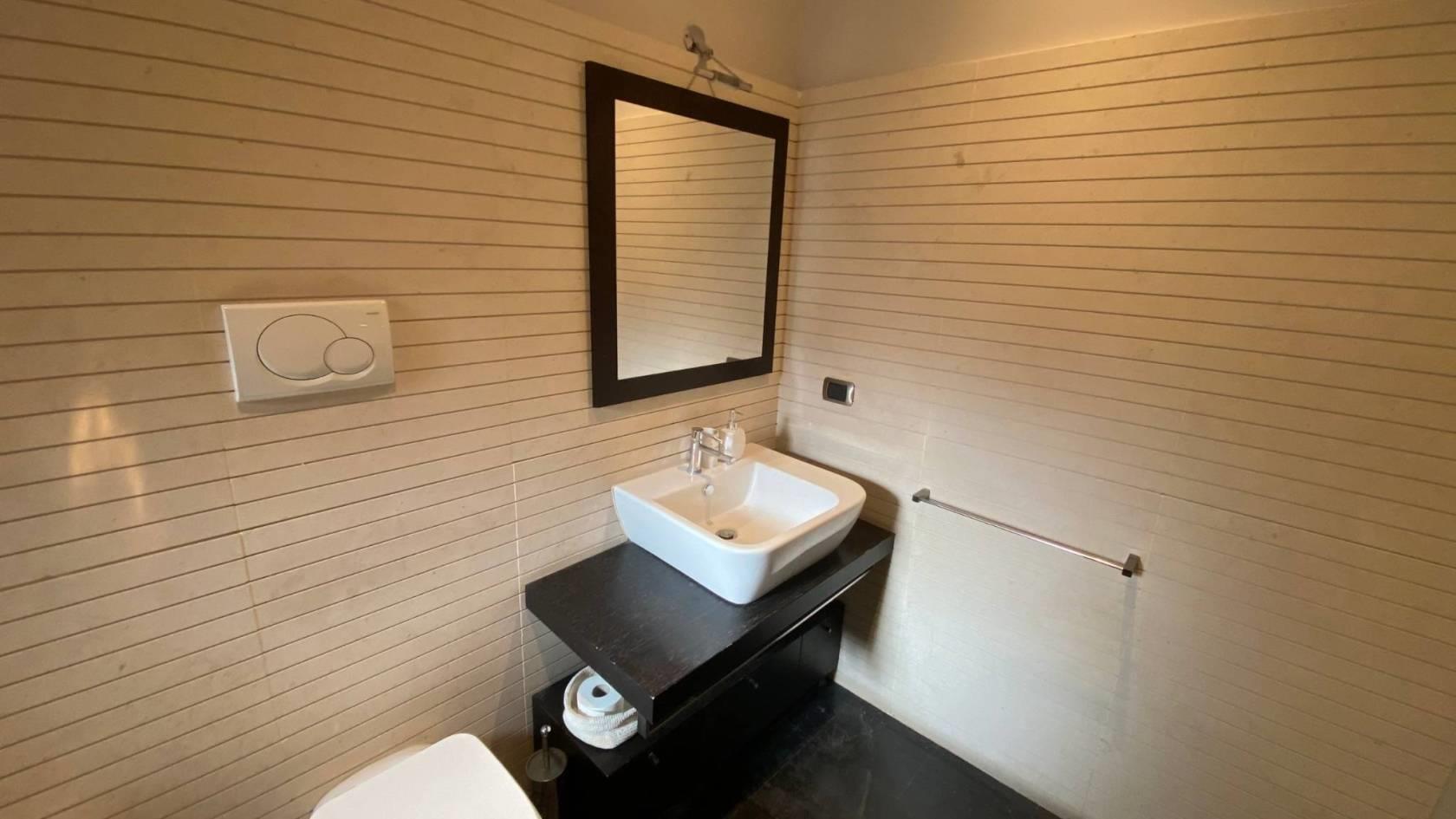 La disposizione interna prevede un ampio ingresso, soggiorno, camera padronale con bagno privato en-suite (con doccia), due camere da letto (di cui una ideale come studio), cameretta di servizio con bagno dedicato, spaziosa zona cucina-pranzo e un terzo bagno con doccia.