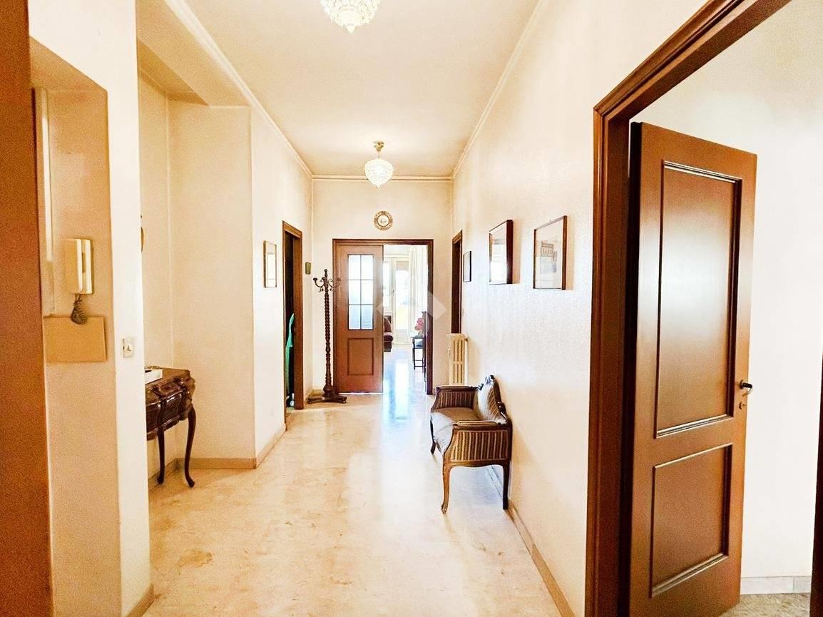 L'appartamento si presenta con un ampio ingresso che ben suddivide gli ambienti della zona giorno con quelli della zona notte, salone doppio con balcone vivibile, cucina con tinello e ulteriore balcone, disimpegno, ampio ripostiglio, tre camere da letto matrimoniali di cui una con bagno finestrato al suo interno, e due con ampi balconi e bagno padronale finestrato con vasca.