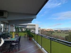 Appartamento mq 125 (superficie coperta mq 108 / scoperta mq 66,50) con panorama mozzafiato, vista su PINETA SACCHETTI e SAN PIETRO, tripla esposizione. Luminoso.