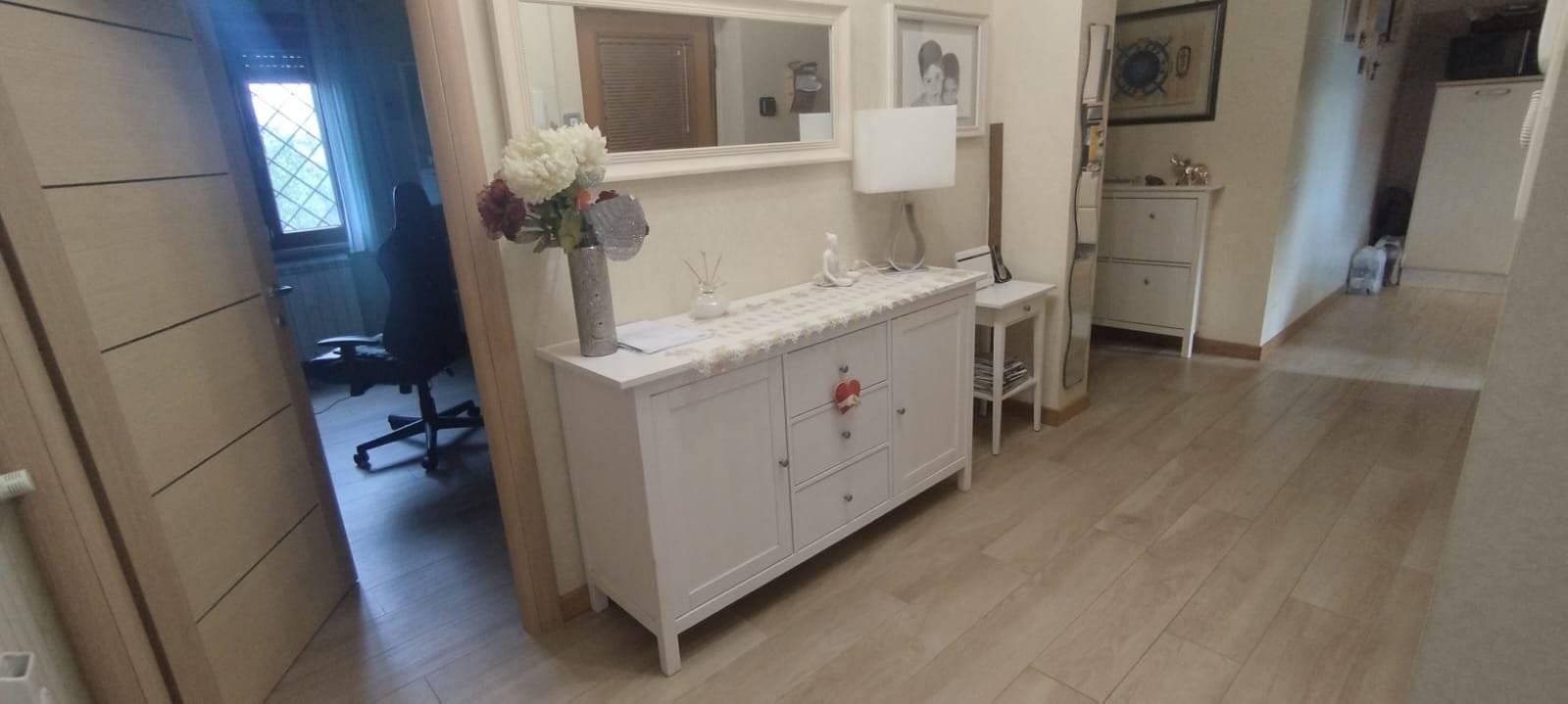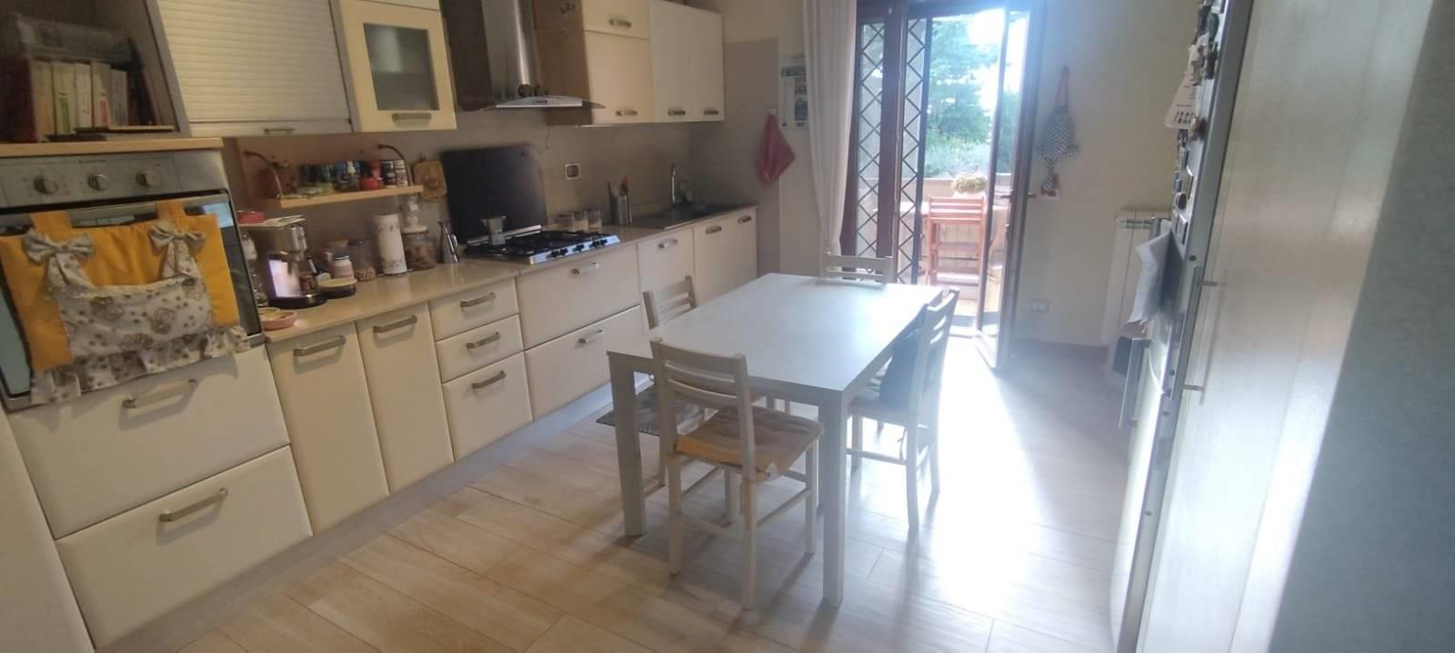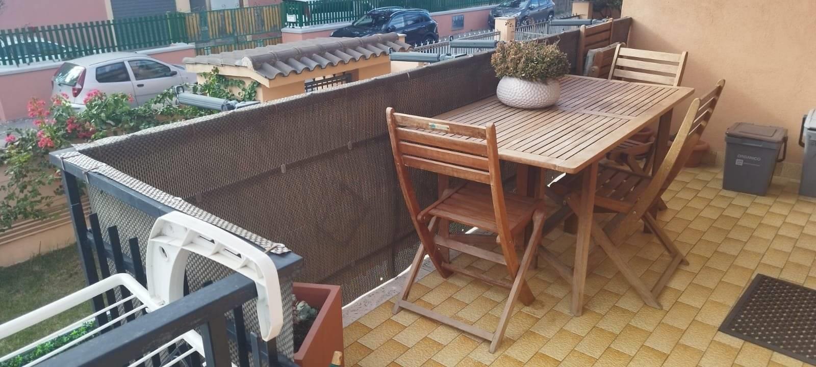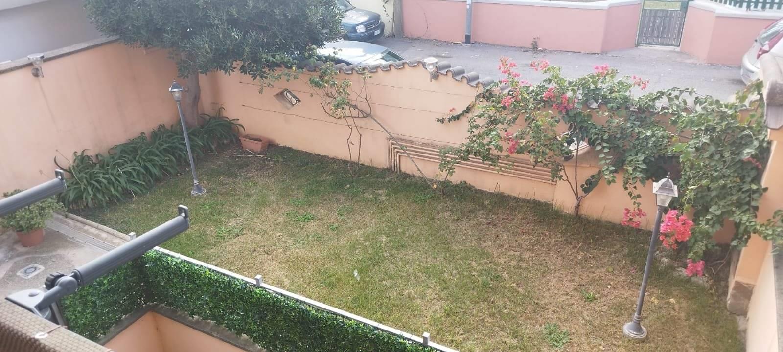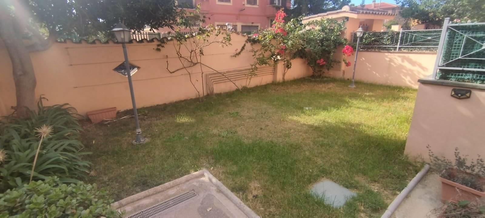 Macchia Palocco appartamento completamente ristrutturato con materiali di prima qualità, ampia metratura su unico livello e tripla esposizione, Est-Sud-Ovest molto luminoso posizionato in contesto residenziale silenzioso palazzina in tinta composta da cinque condomini con ingresso da strada pubblica senza uscita. Composizione: piano rialzato, ingresso, disimpegno, salone doppio con uscita su balcone con esposizione ovest, cucina tinello arredata con uscita su balcone vivibile che mediante una scala esterna consente l'accesso all'ampia corte pavimentata di circa 230 metri quadri che circonda i tre lati della proprietà, una camera matrimoniale con uscita su balcone, una seconda camera matrimoniale e una terza camera con servizio privato cieco più un secondo grande servizio con finestra, indipendente con ampia doccia. Al piano seminterrato raggiungibile anche tramite la scala interna condominiale troviamo un grande e comodo garage di circa 51 metri quadrati più rampa carrabile privata di accesso di ca 29 mq, assolutamente asciutto con accesso indipendente dalla strada pubblica. L'immobile è stato totalmente ristrutturato a nuovo nel 2018 con l'installazione di pavimenti in gres porcellanato effetto legno, infissi in alluminio con vetro camera, grate in ferro, zanzariere, climatizzatori Daikin in tutti gli ambienti, cucina compresa, impianto di allarme, caldaia di ultima generazione a condensazione.