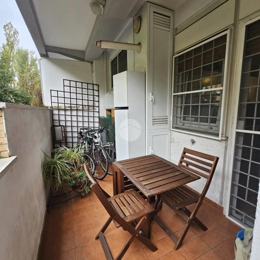 La soluzione gode di una doppia esposizione, la zona notte affaccia su Viale XVII Olimpiade mentra la zona giorno affaccia sul Parco di Via Danimarca.
