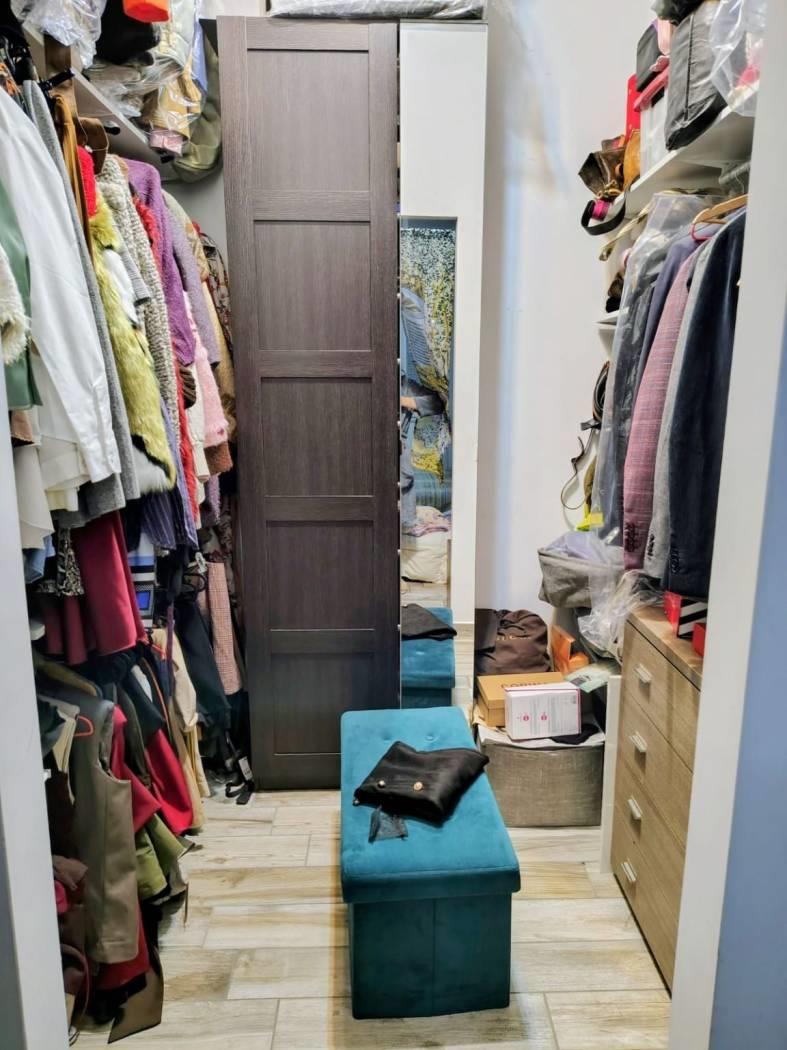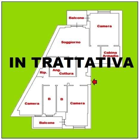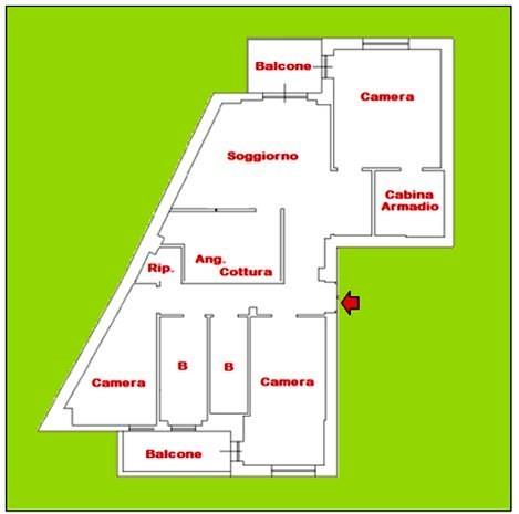 soggiorno con angolo cottura,tre camere da letto, di cui una matrimoniale con cabina armadio interna,doppi servizi,ripostiglio e due balconi