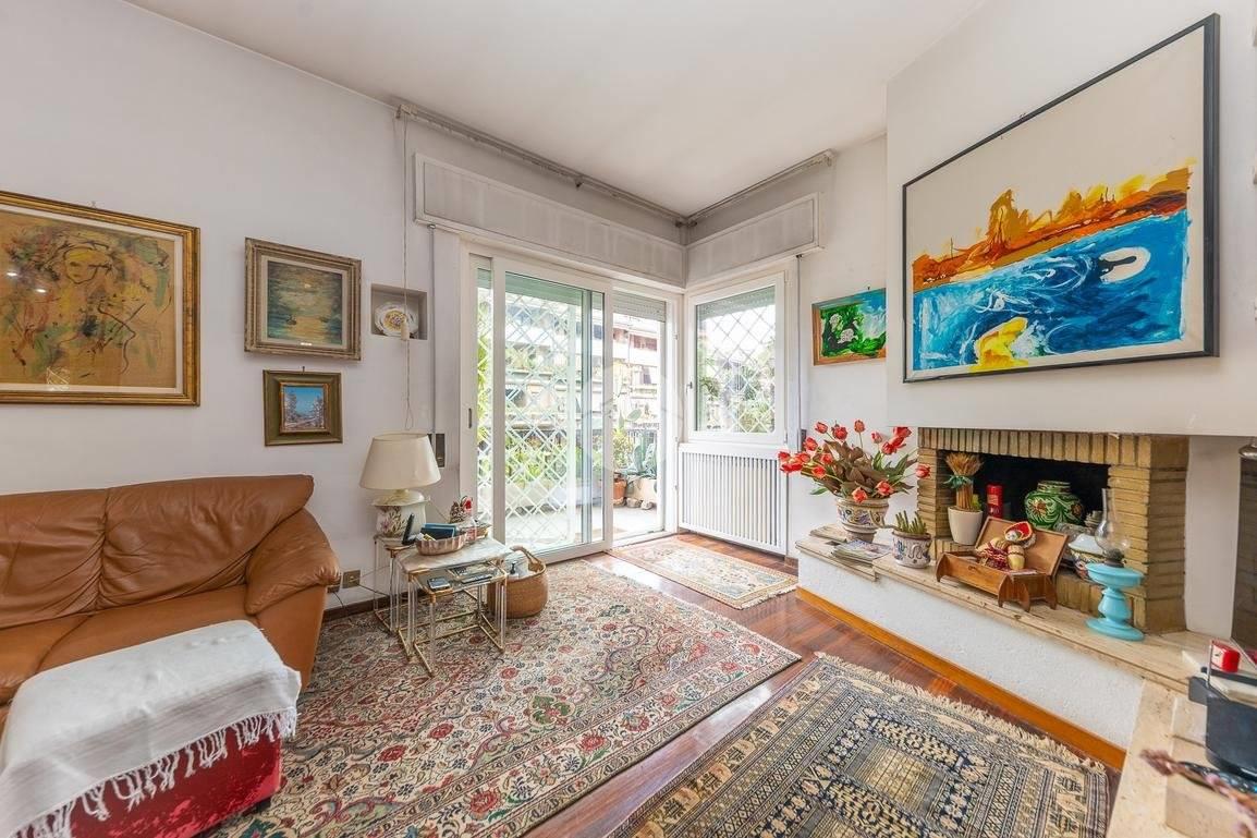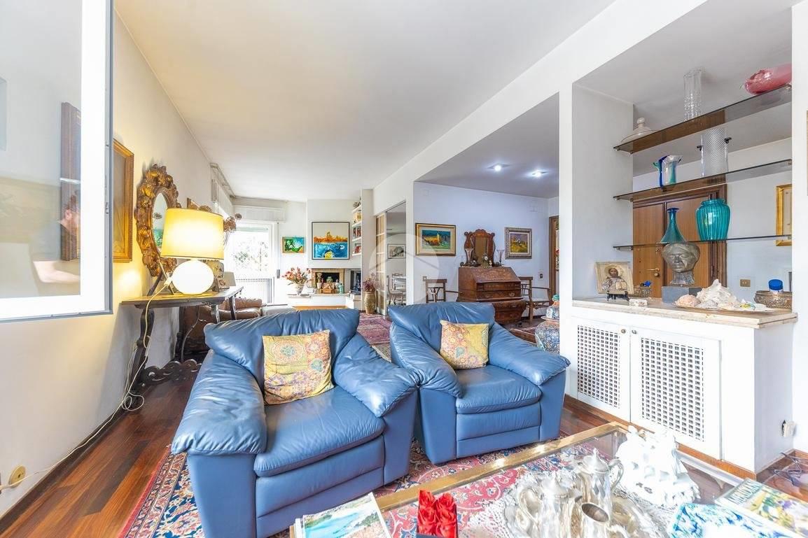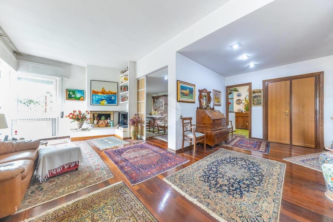 L'ingresso principale si apre su un elegante salone doppio con camino e accesso diretto a un terrazzino, perfetto per momenti di relax all'aria aperta. Adiacente al salone si trova una comoda sala da pranzo, anch'essa con affaccio sullo stesso terrazzino, ideale per intrattenere ospiti o godere di cene conviviali. La zona giorno si completa con una cucina abitabile dotata di tinello, ripostiglio, un bagno di servizio e un pratico balcone di servizio, oltre a un secondo ingresso indipendente.