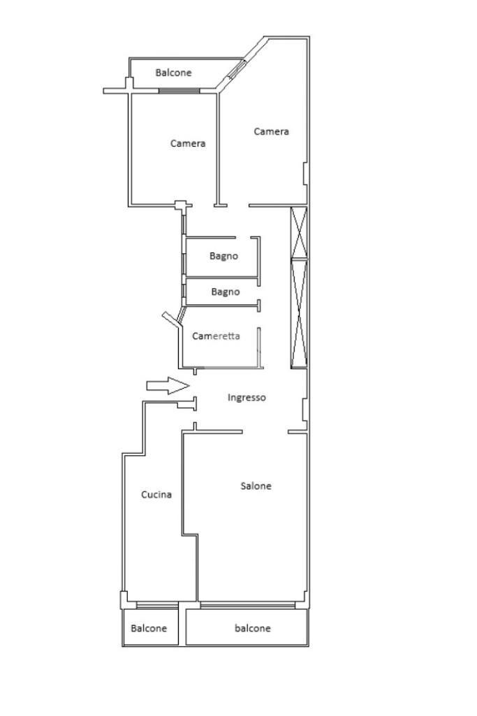 Internamente è composto da: Ampio ingresso, Ampio Salone , Cucina abitabile, Due camere, Cameretta, Due bagni e Tre balconi