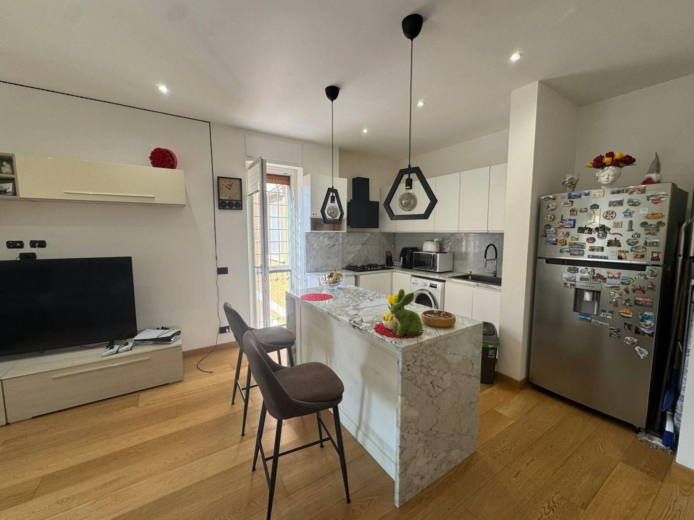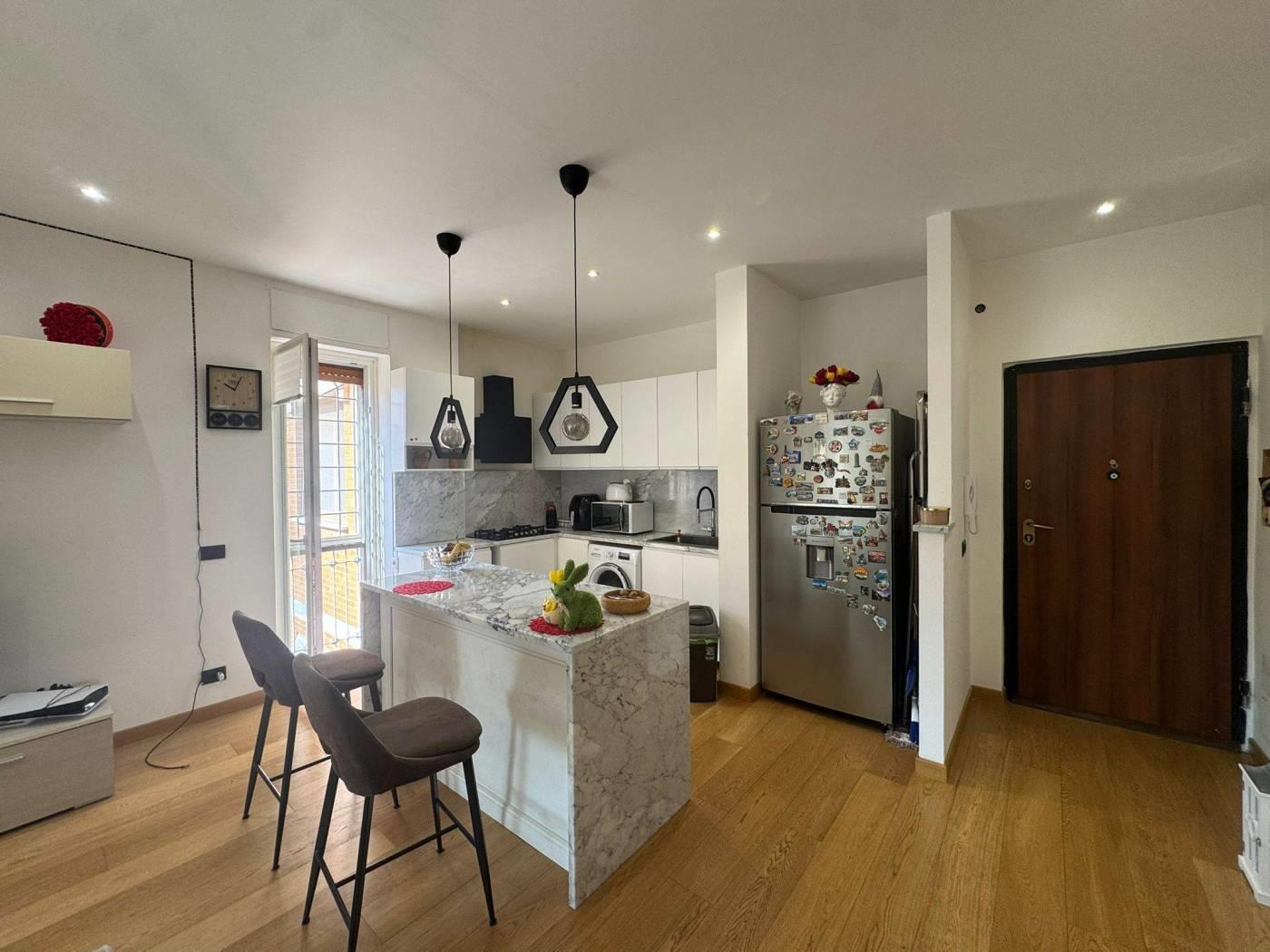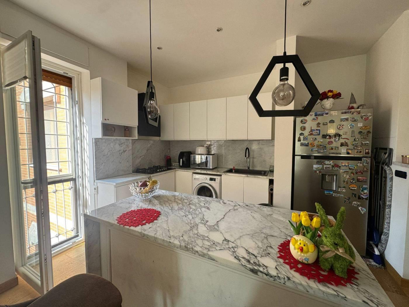L'appartamento è ubicato all'interno di un complesso residenziale costituito da diverse palazzine con giardini condominiali. La soluzione abitativa si compone di ingresso, ampio salone con cucina a vista, tre camere da letto matrimoniali, un bagno ed un terrazzino. La proprietà include inoltre una cantina e un posto auto scoperto. La posizione è particolarmente vantaggiosa, in una zona ricca di attività commerciali e scuole, ben servita dai trasporti pubblici grazie alla prossimità della stazione Lido Nord.