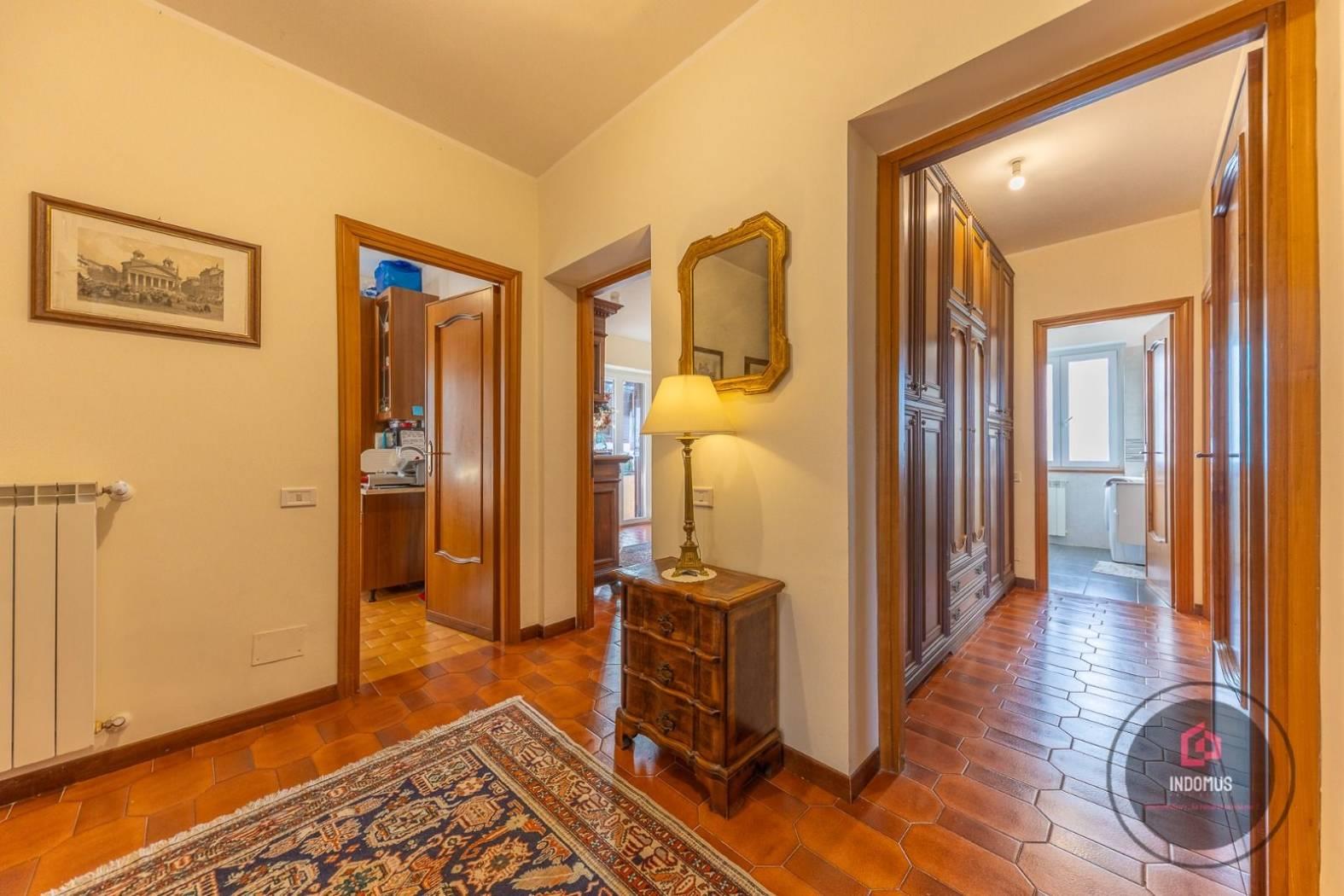 L’ingresso accompagna in un disimpegno con grande armadio a muro a 6 ante, ideale per mantenere ordine ed eleganza.
