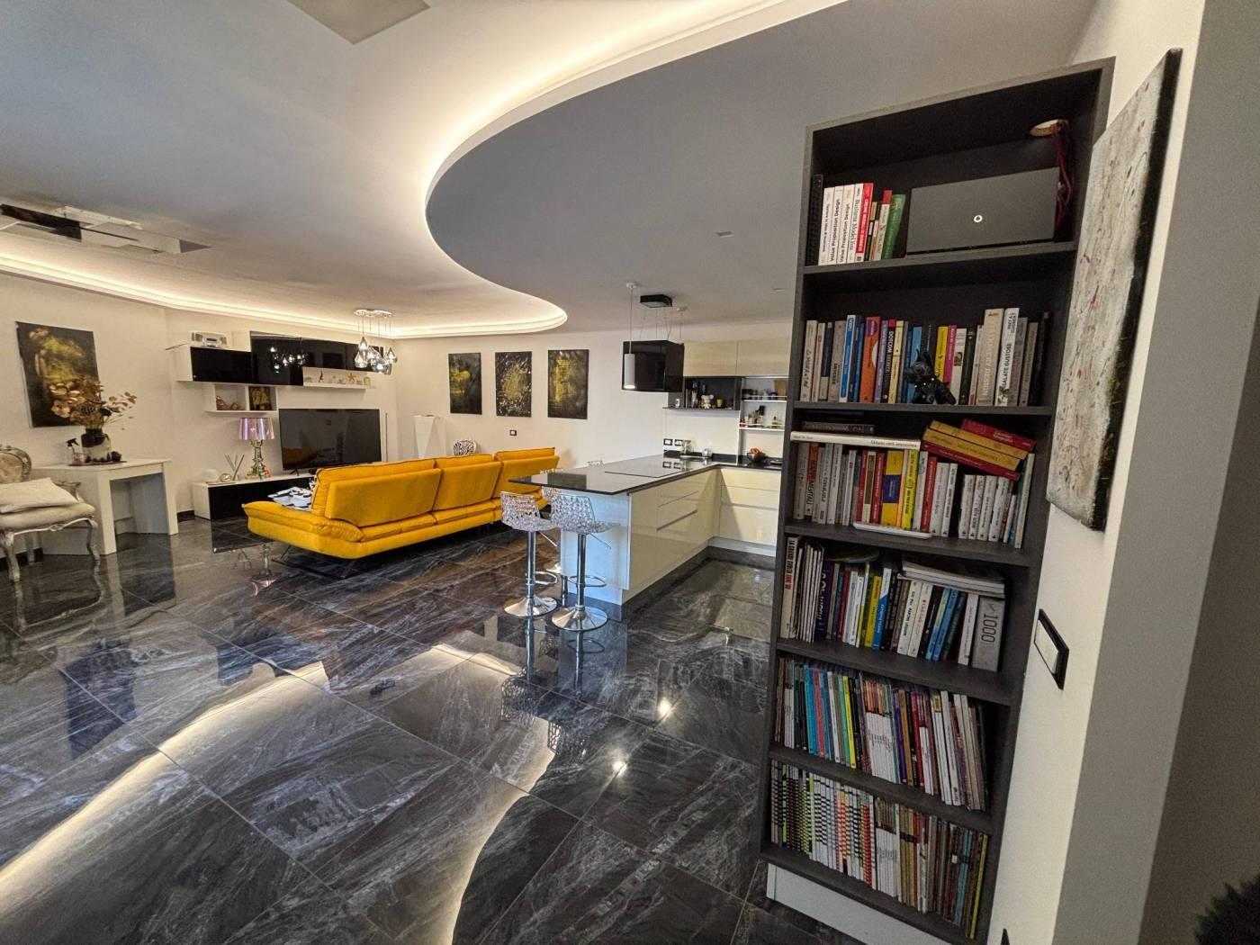 I posti auto interni, adiacenti all'appartamento, offrono una comodità unica e possono essere facilmente trasformati in un giardino privato. Le rifiniture sono di altissimo livello, con materiali e dettagli che lo rendono un appartamento unico nel suo genere.