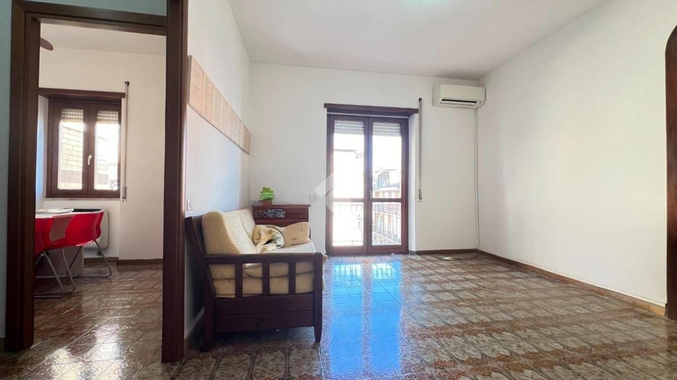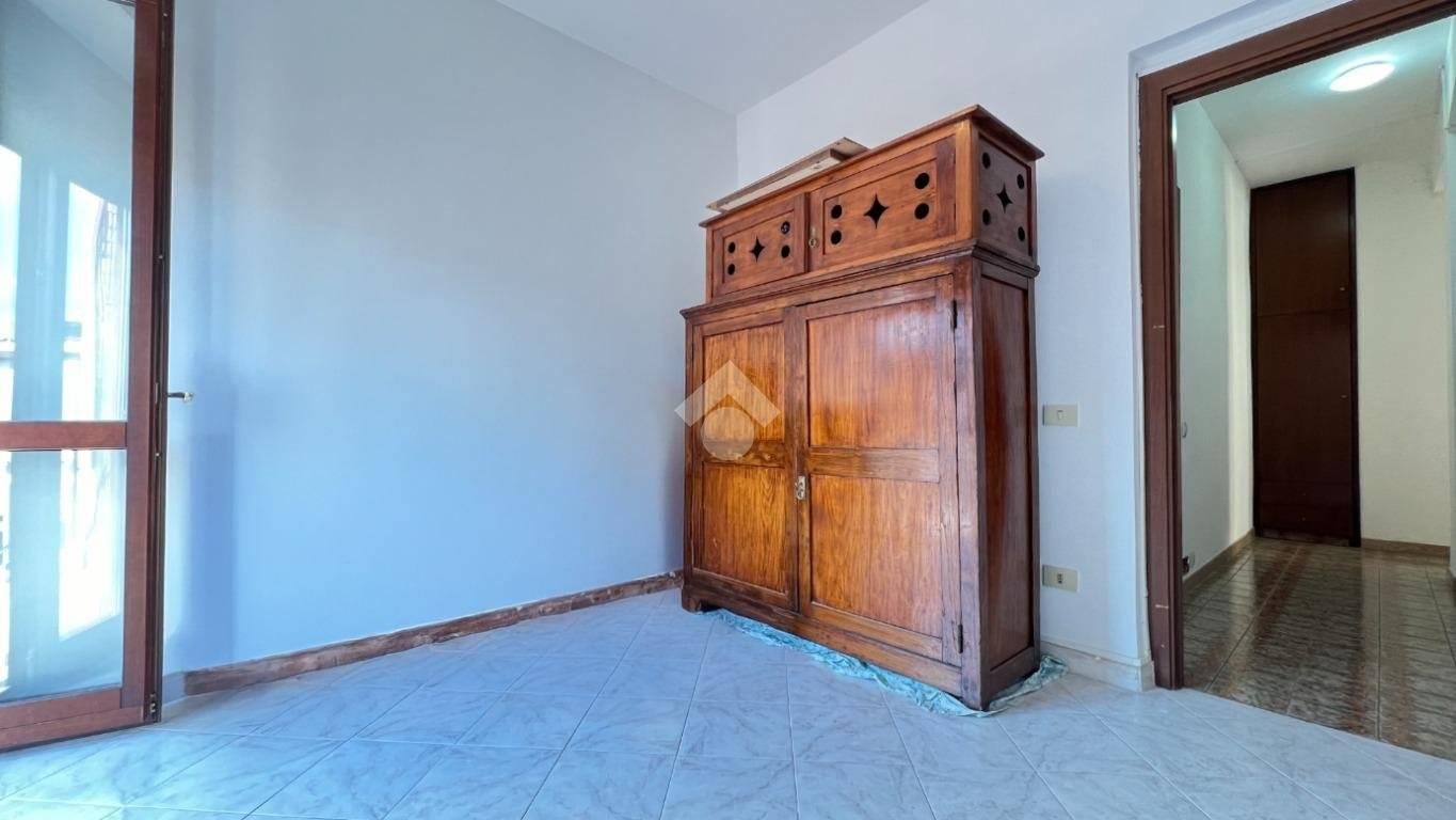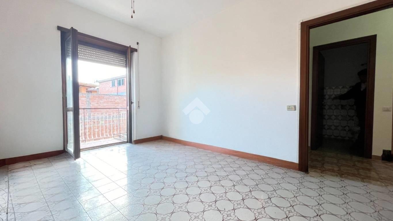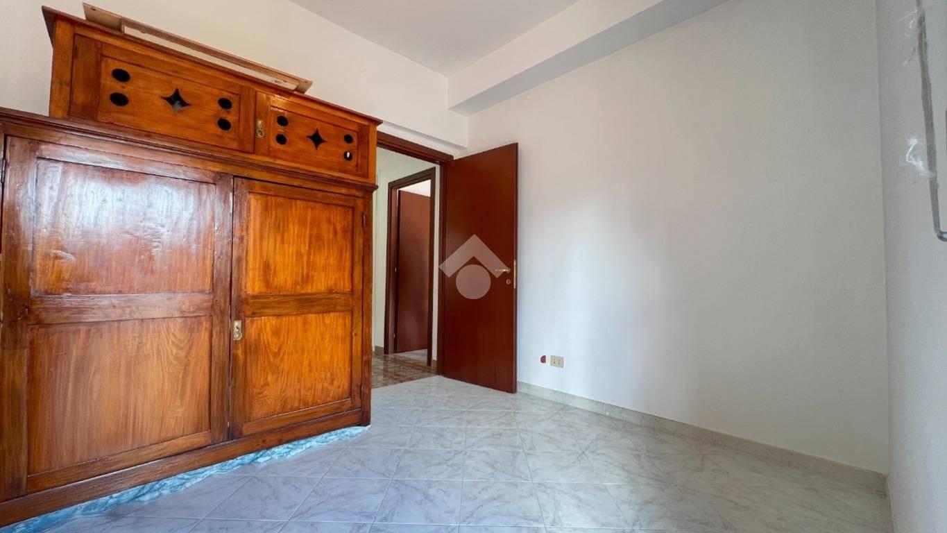 -Ingresso, cucina abitabile con tinello, soggiorno con canna fumaria e predisposto per l’installazione di un camino, disimpegno con armadi a muro, camera matrimoniale con bagno finestrato e doccia, una camera, una cameretta, un secondo bagno finestrato con vasca e tre balconi.
