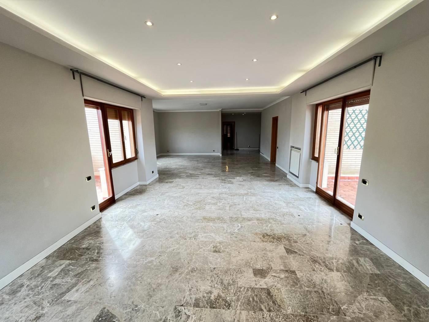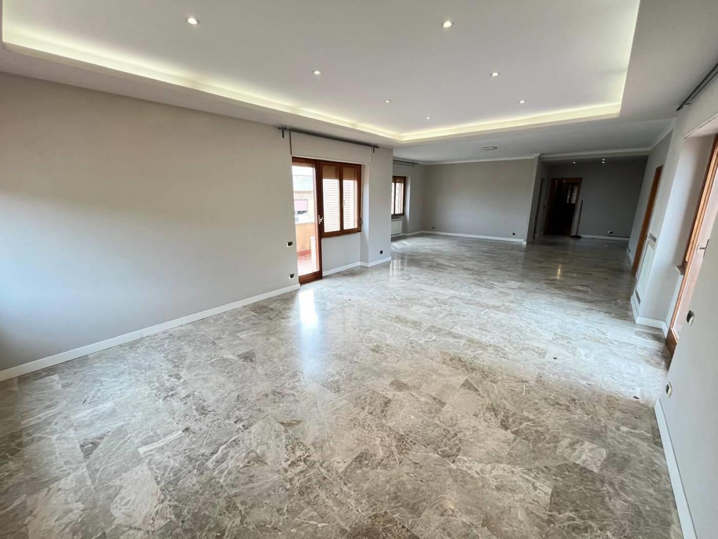 L'unità immobiliare è composto di un salone triplo, 3 ampie camere da letto, una cameretta di servizio, una cucina con un comodo tinello, tripli servizi, lavanderia, un balcone di mq 8 circa e due ampie terrazze panoramiche di mq 140 circa.