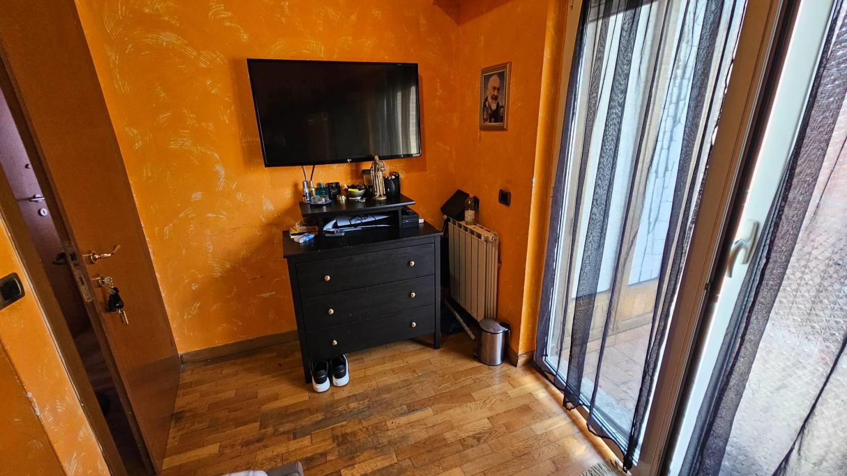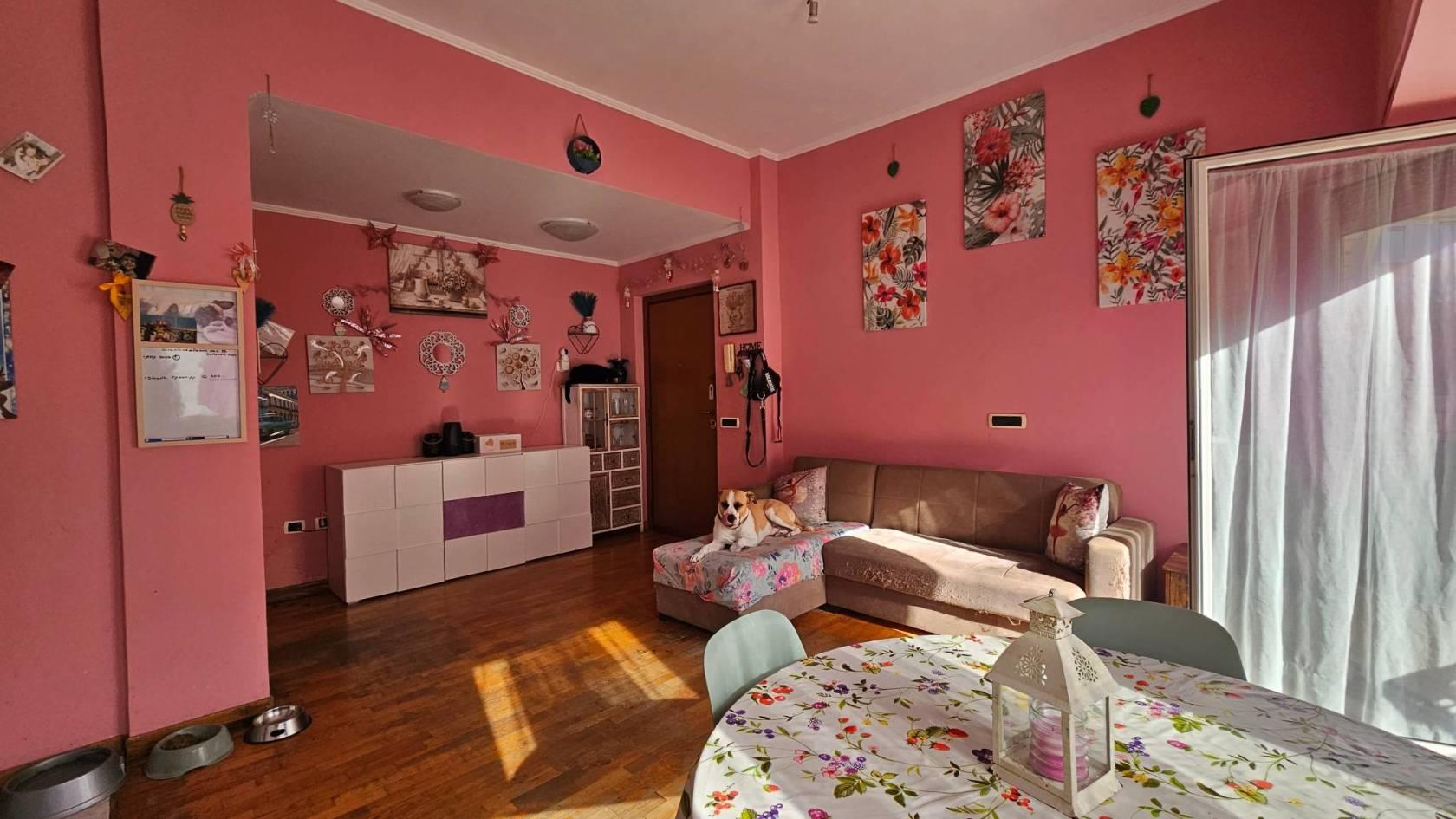 L'immobile si apre su un ingresso che conduce a un ampio salone con cucina a vista, esposto a sud e particolarmente luminoso grazie alle grandi vetrate e all'accesso al primo balcone con suggestiva vista mare.