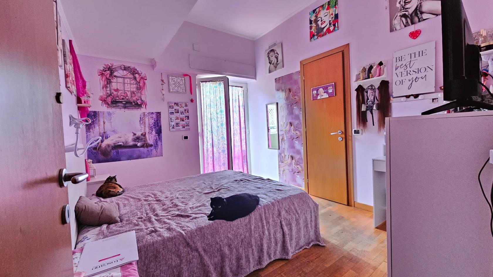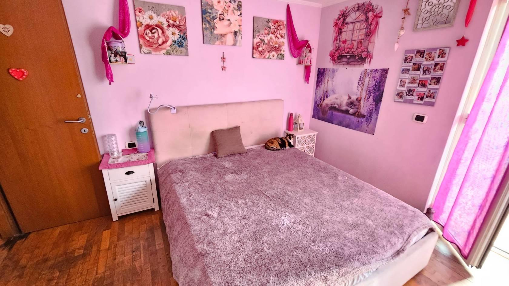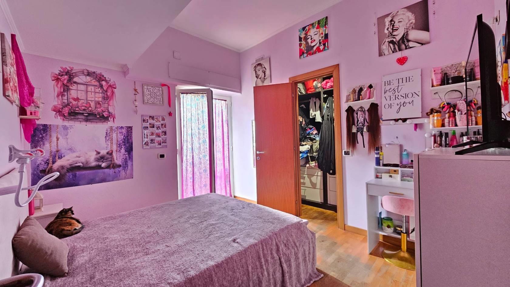 La zona notte è composta da una spaziosa camera matrimoniale con cabina armadio e da una cameretta con balcone privato.
