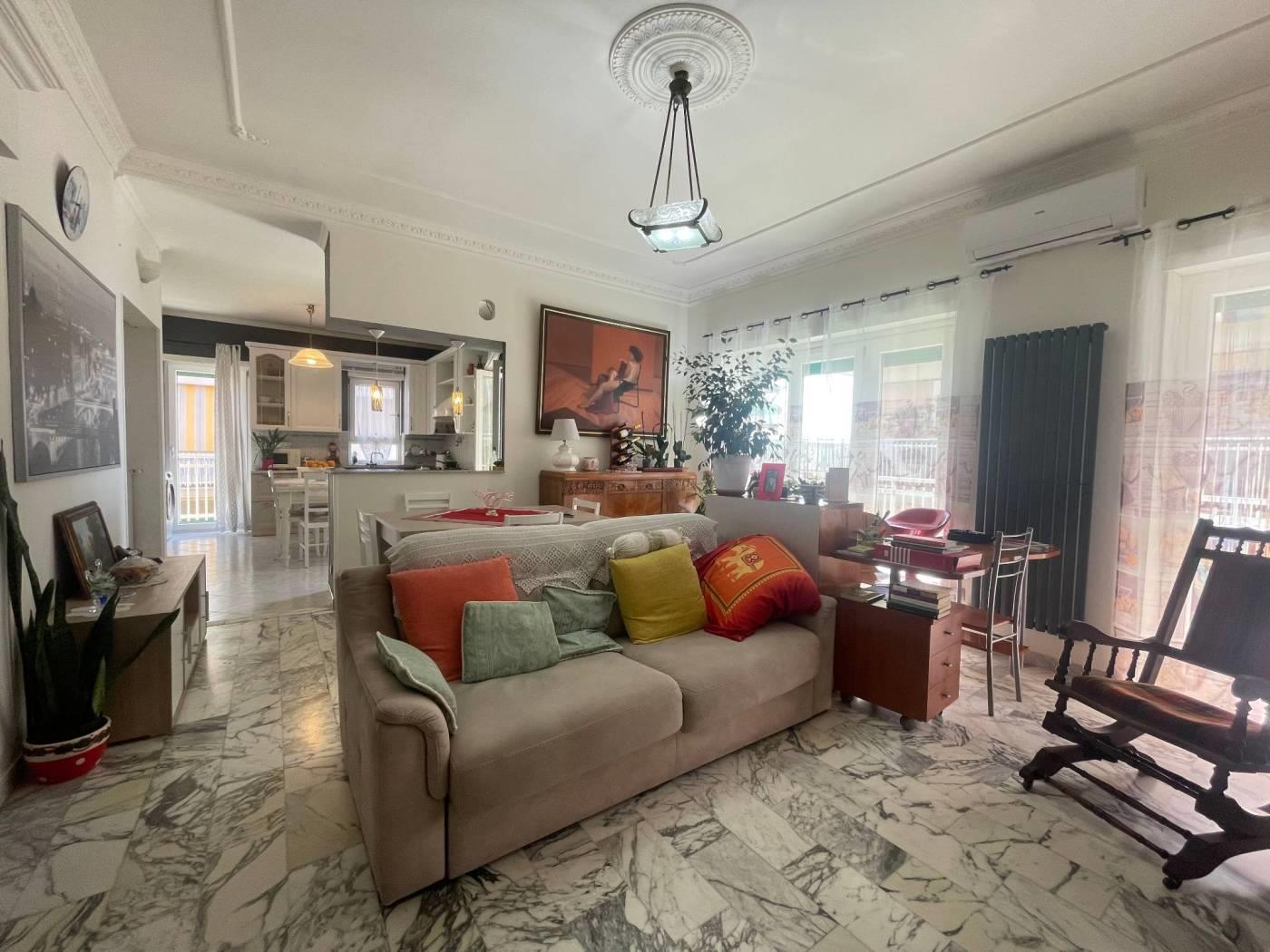 L'immobile è situato lungo il lungomare Duca degli Abruzzi e gode di una splendida vista sul mare. Si trova al terzo piano ed è stato completamente ristrutturato. L'appartamento è composto da un ampio salone doppio con cucina a vista, due camere da letto, bagno, un ripostiglio, due balconi e un terrazzo perimetrale.