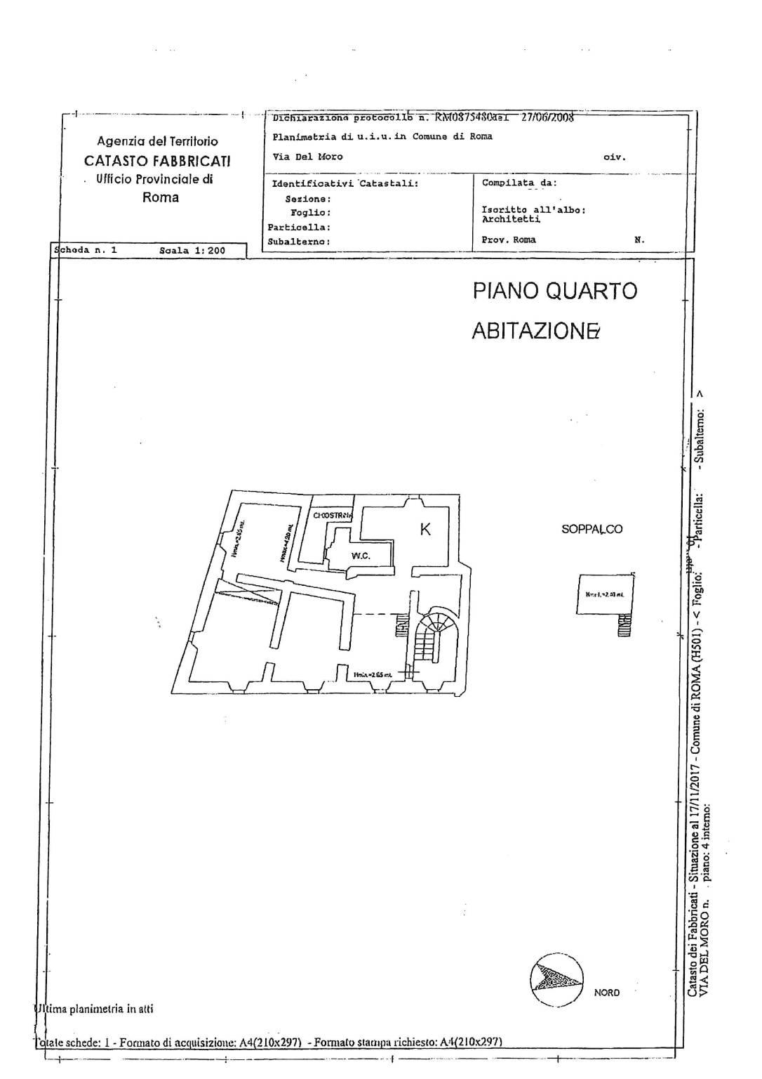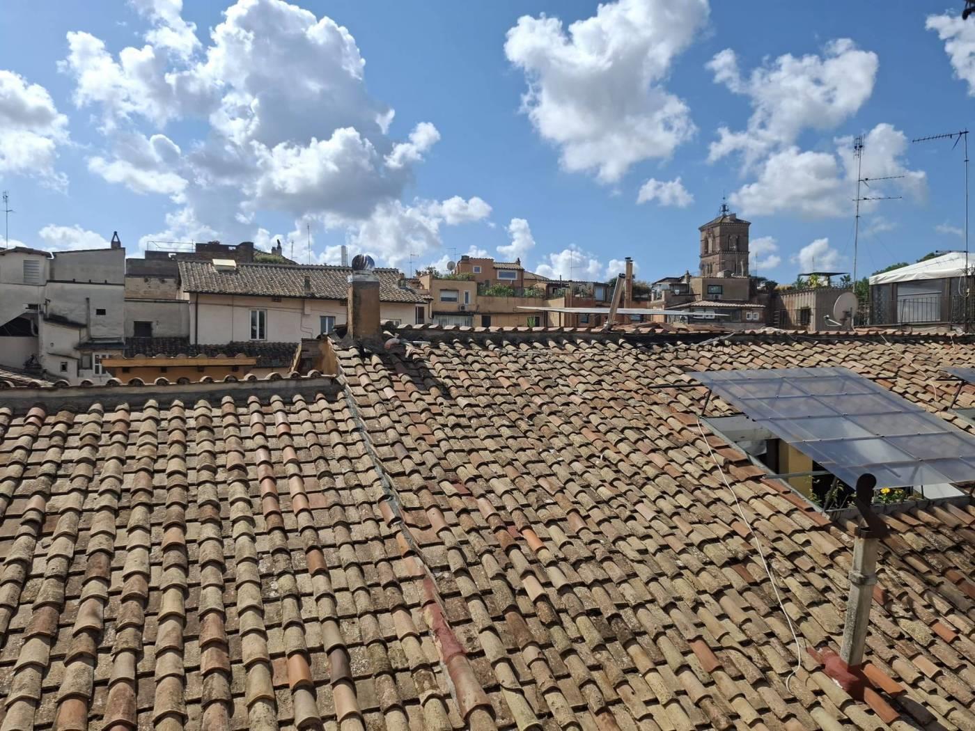 Nel cuore del suggestivo Rione di Trastevere in via del Moro, proponiamo in vendita, un bellissimo appartamento di 156 metri quadrati, unico nel suo genere, situato al quarto ed ultimo piano di una palazzina d'epoca del 1700 senza ascensore. Ha una triplice e piacevole esposizione a sud/est/ovest, gode di una ottima illuminazione naturale durante tutto il giorno, ed ha gradevoli affacci sui tetti del Rione, Santa Maria in Trastevere ed il Fontanone.