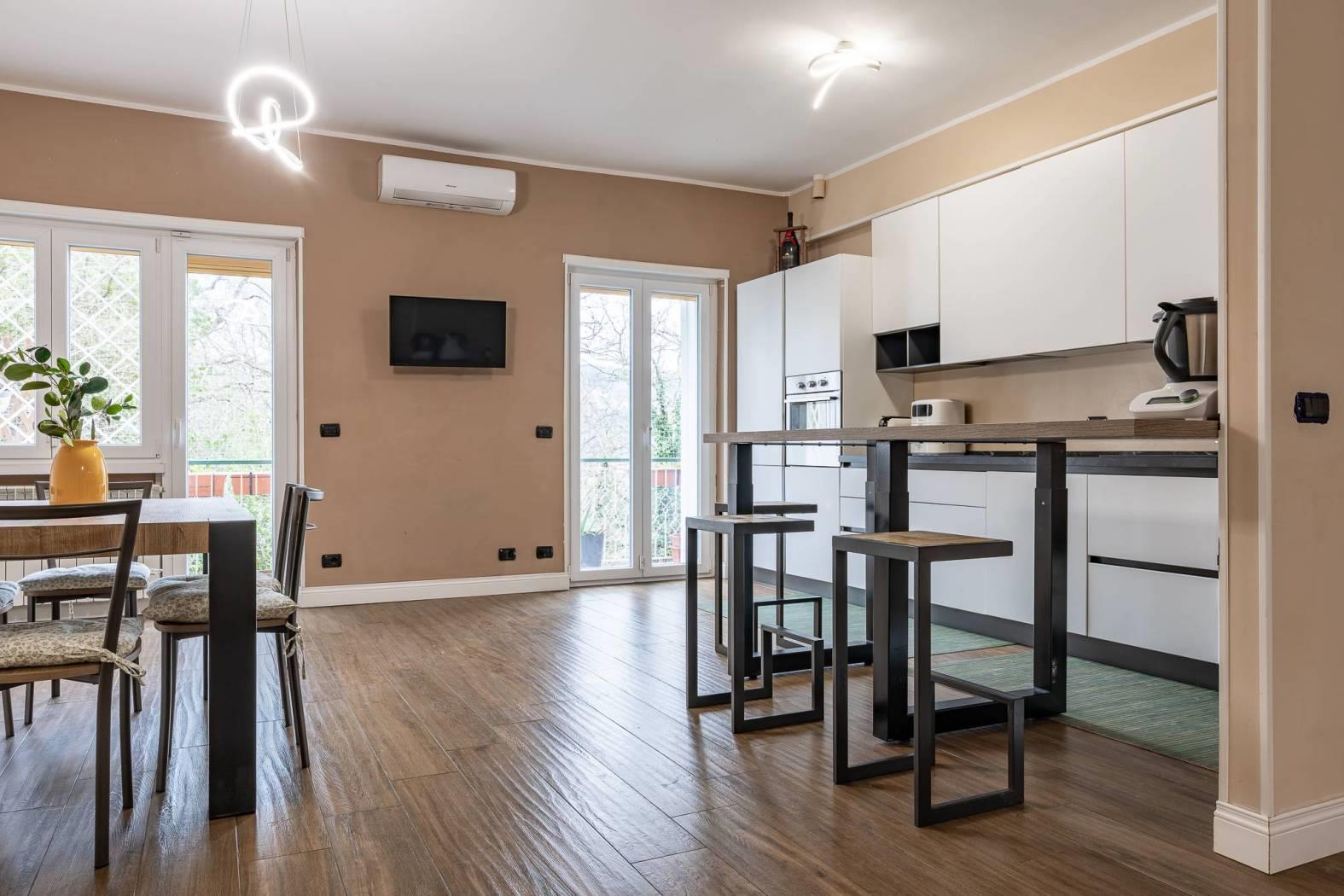 In zona Somaschi nel Comune di Ariccia ma adiacente al centro di Albano Laziale proponiamo rifinito appartamento di ampia metratura di 130 mq su unico livello, composto da salone doppio di 50 mq con angolo cottura con balcone, bagno di servizio con zona lavanderia, ripostiglio, disimpegno, camera matrimoniale, ulteriore camera matrimoniale camera con ampia cabina armadio con balcone panoramico sulla vallata di Vallericcia, bagno finestrato con vasca idromassaggio. L'appartamento si presenta in ottime condizioni ristrutturato sia nelle finiture che negli impianti, finestre in pvc con doppio vetro, portone blindato, grate, aria condizionata, grès porcellanato effetto parquet, essendo una costruzione degli anni 70 si adatta facilmente ad ogni esigenza, e la comoda metratura garantisce una vivibilità di qualità.
