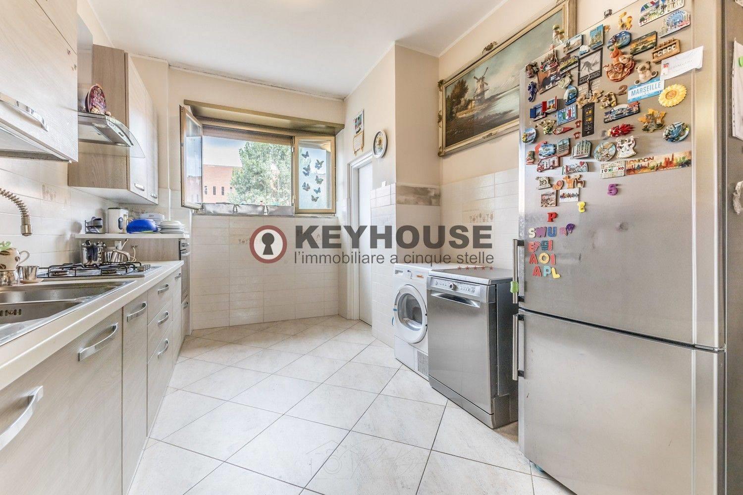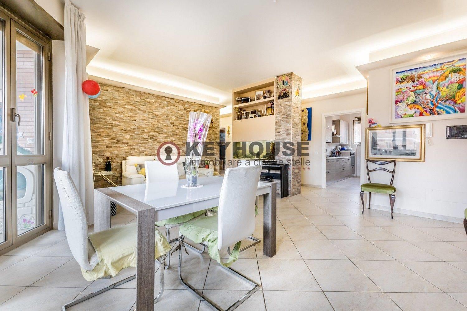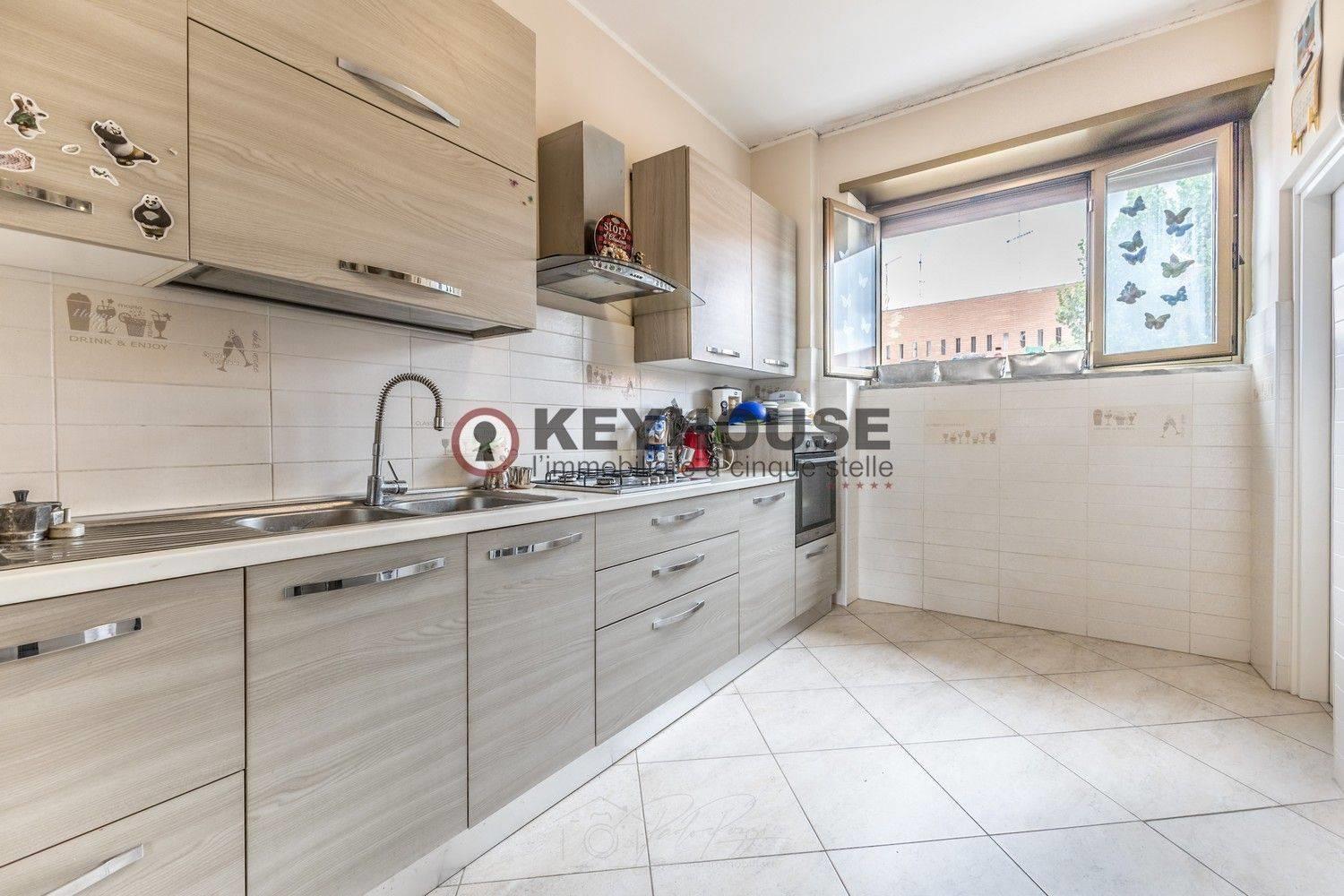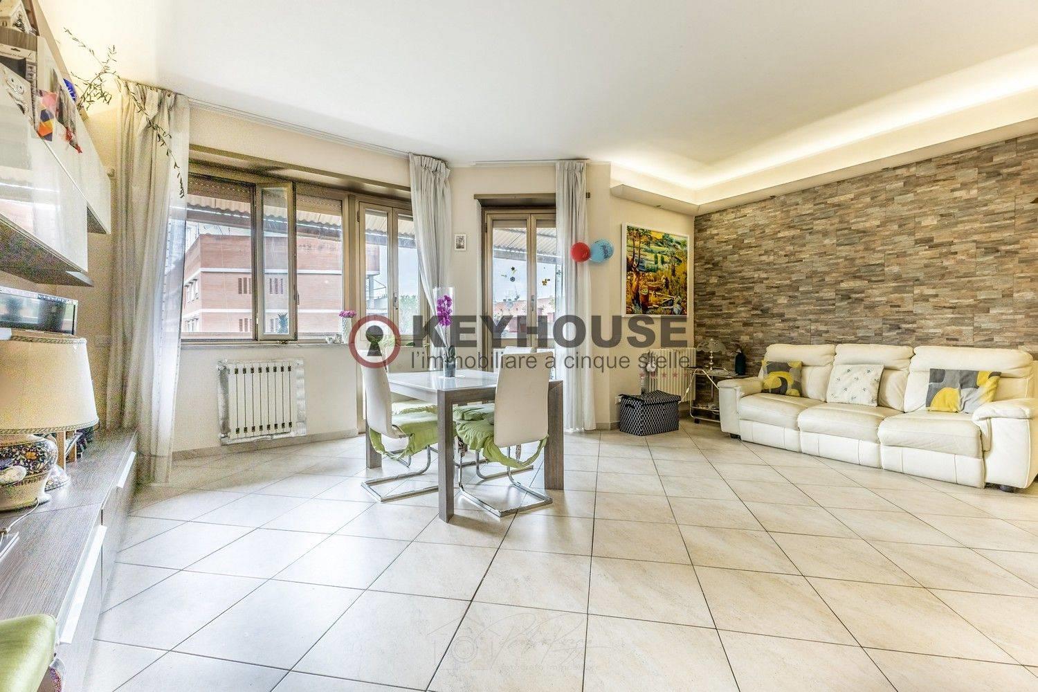 KEYHOUSE ROME - EUR DECIMA: In a 1960s brick building, we offer for sale a fourth-floor apartment, completely renovated in 2018, comprising an entrance hall, living room, three bedrooms, an eat-in kitchen, 2 bathrooms, a storage room, and a spacious balcony. A useful attic completes the property. The area is well-served by both shops and public transportation, and the property is also close to schools, parks, and sports centers. €349,000.00 (Ref. 25/25).